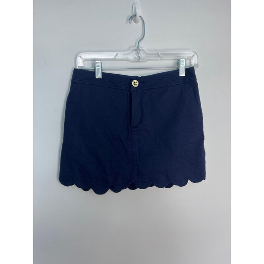 Lilly Pulitzer Scallop Hem Mini Skirt Women 0 Navy Blue Textured Cotton Blend