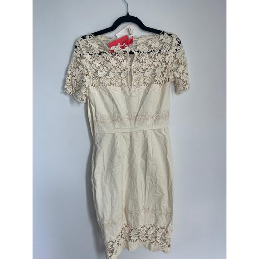 Ivanka Trump Lace Midi Dress Women 4 Cream Floral Overlay Cocktail