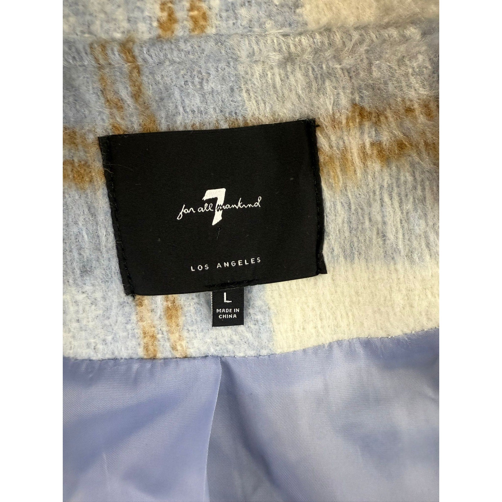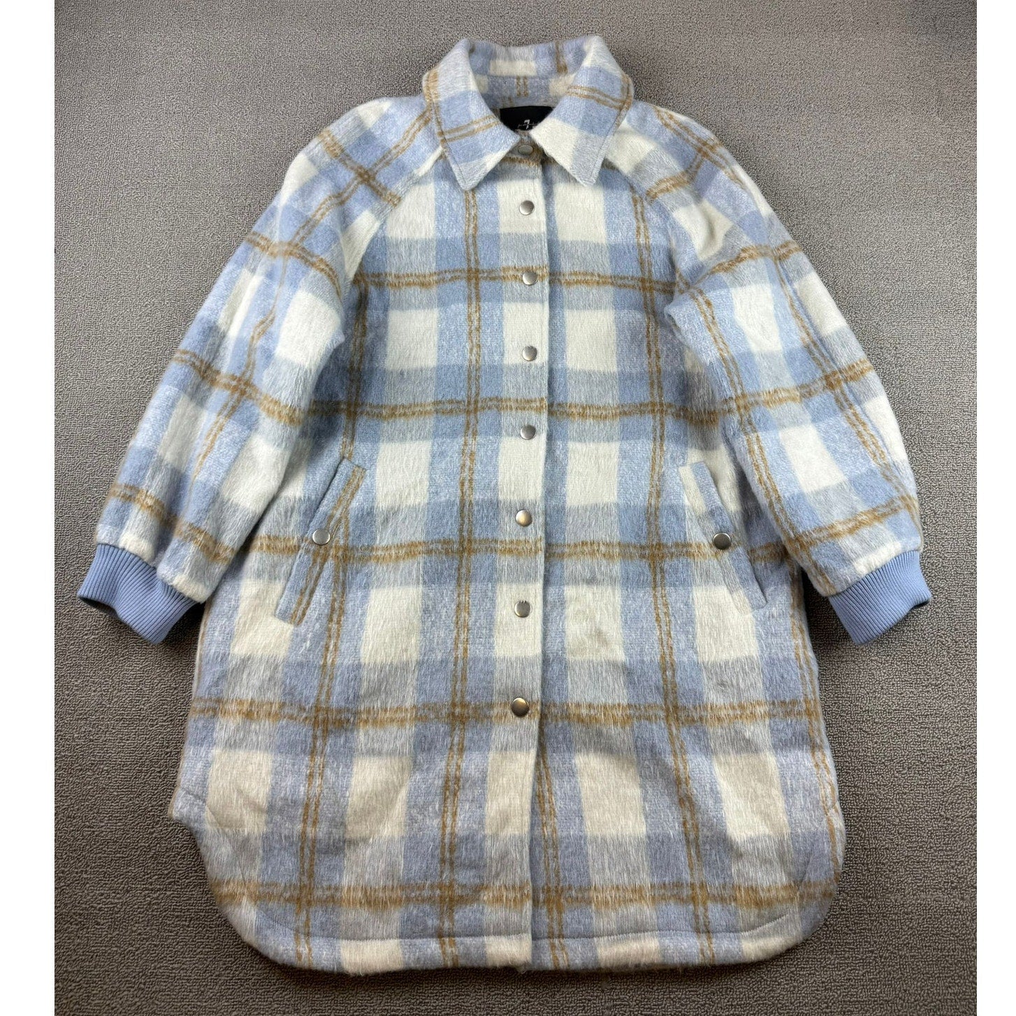 7 for All Mankind Women's Large Longline Brushed Plaid Shacket Coat