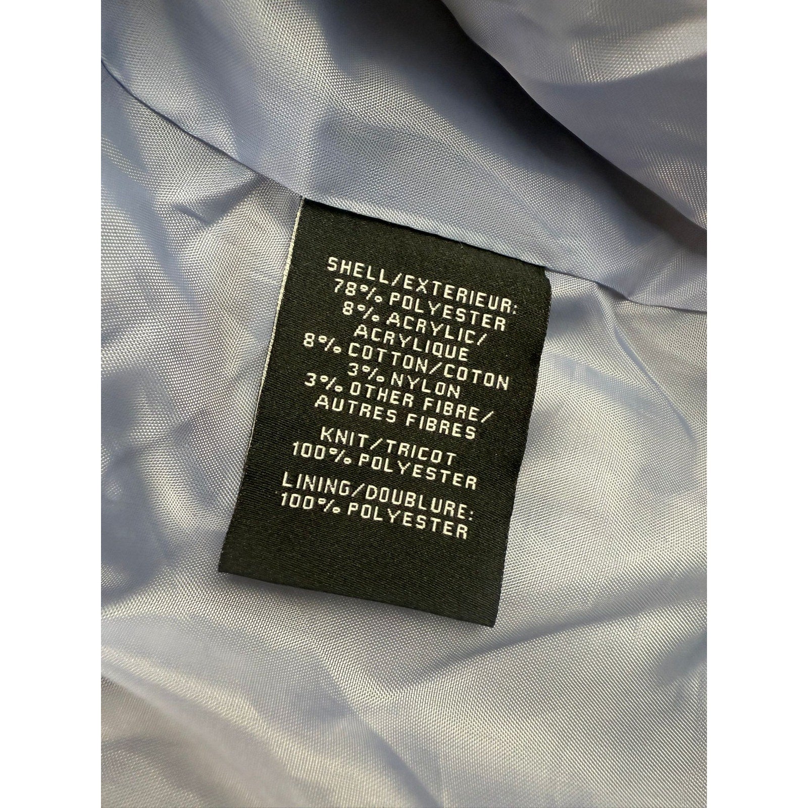 Stylish and cozy women’s plaid coat jacket from 7 For All Mankind. Features a soft blue, white, and brown plaid pattern with button-up front, side pockets, and ribbed cuffs. A versatile outerwear piece perfect for layering in cooler weather.