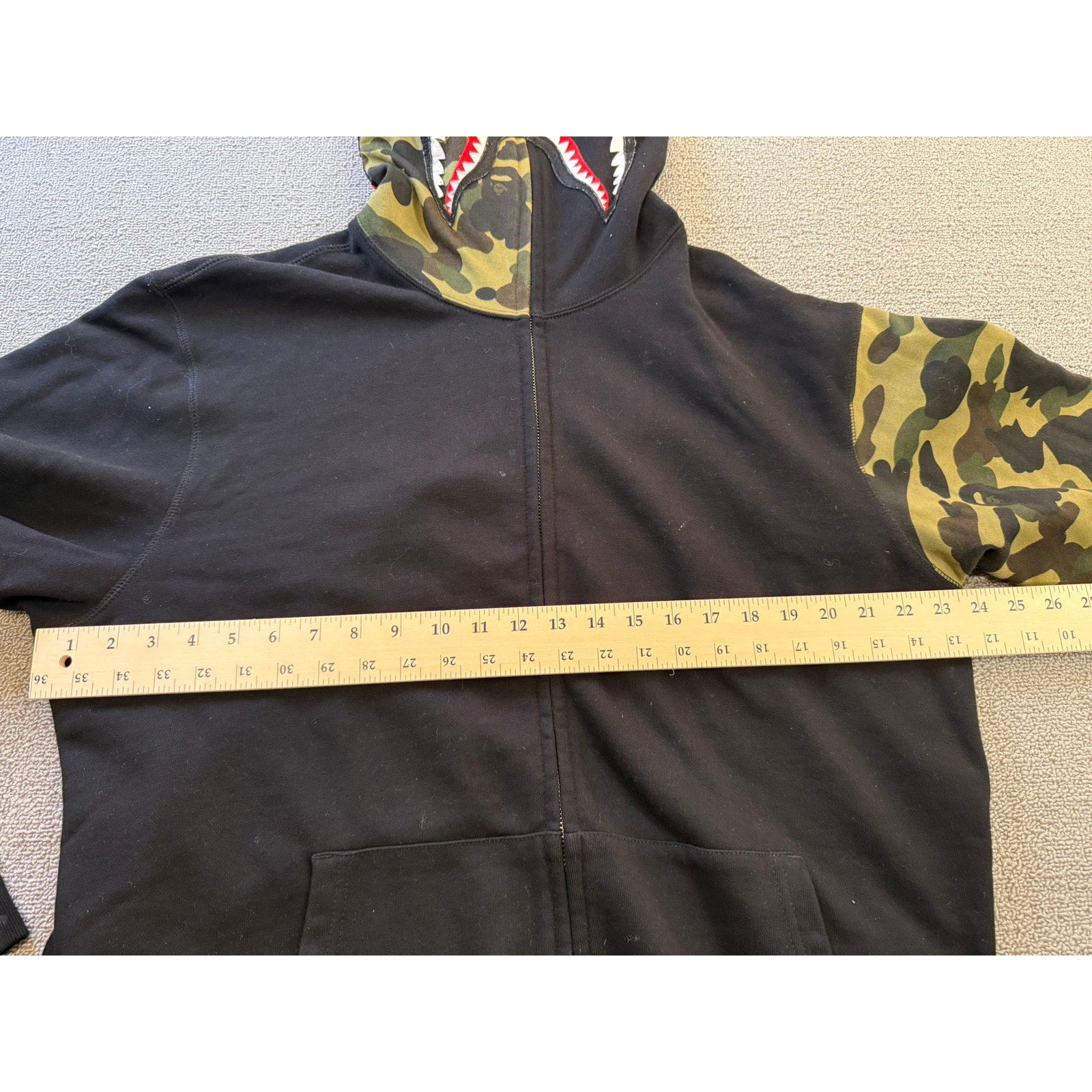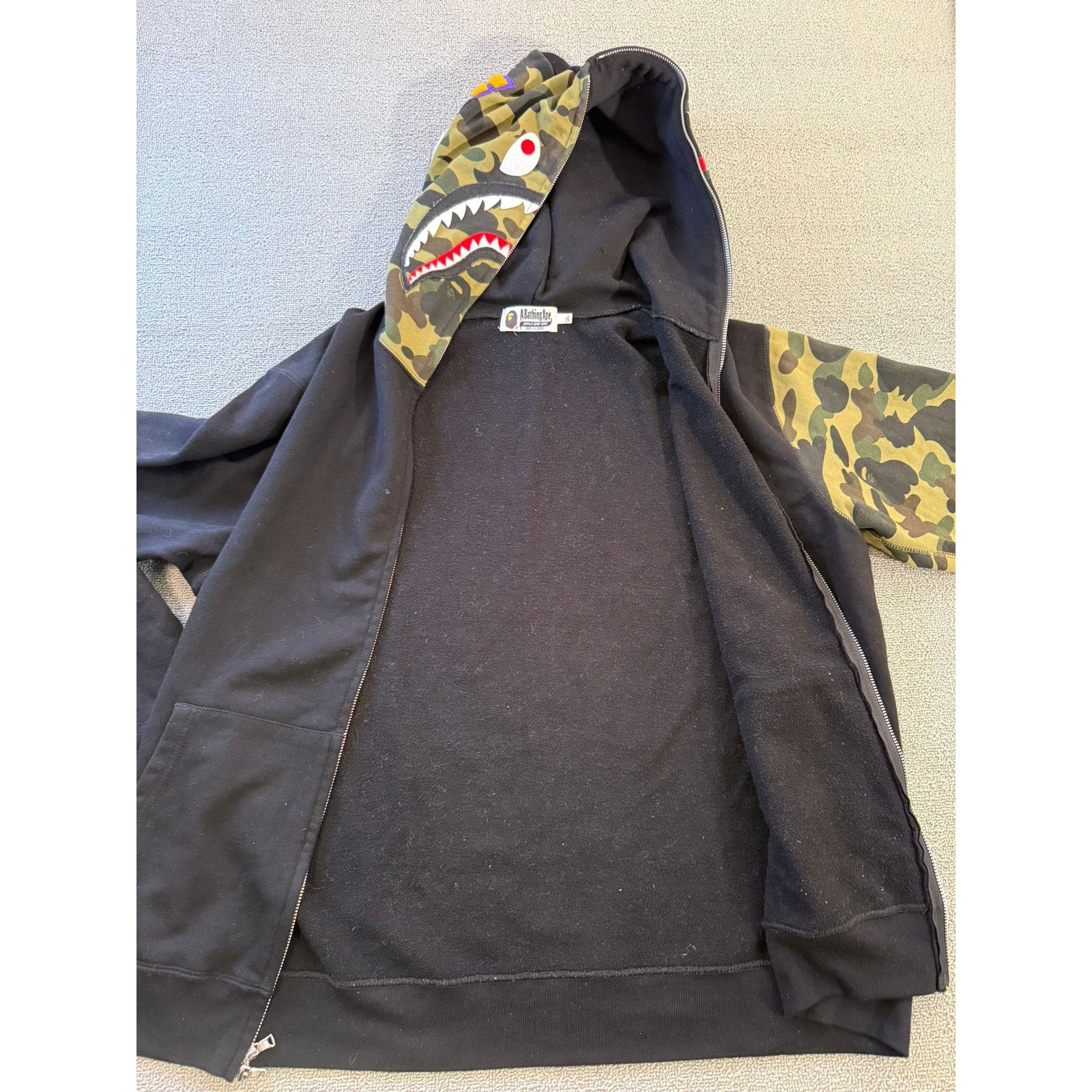 A Bathing Ape BAPE Mens Shark Hoodie 2XL Black Camo Full Zip Jacket