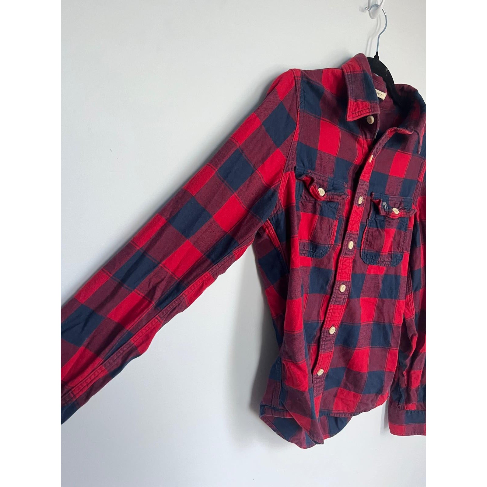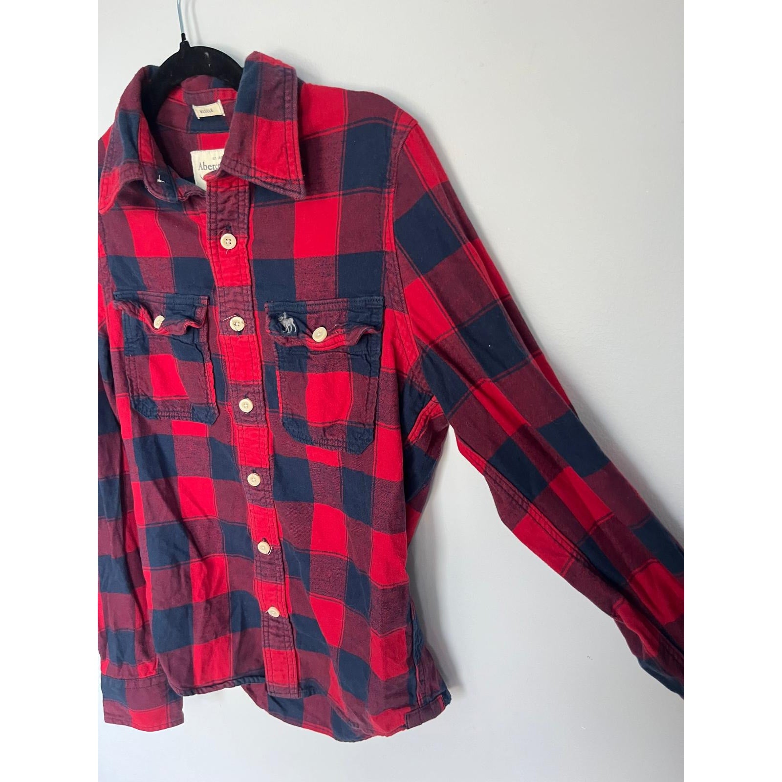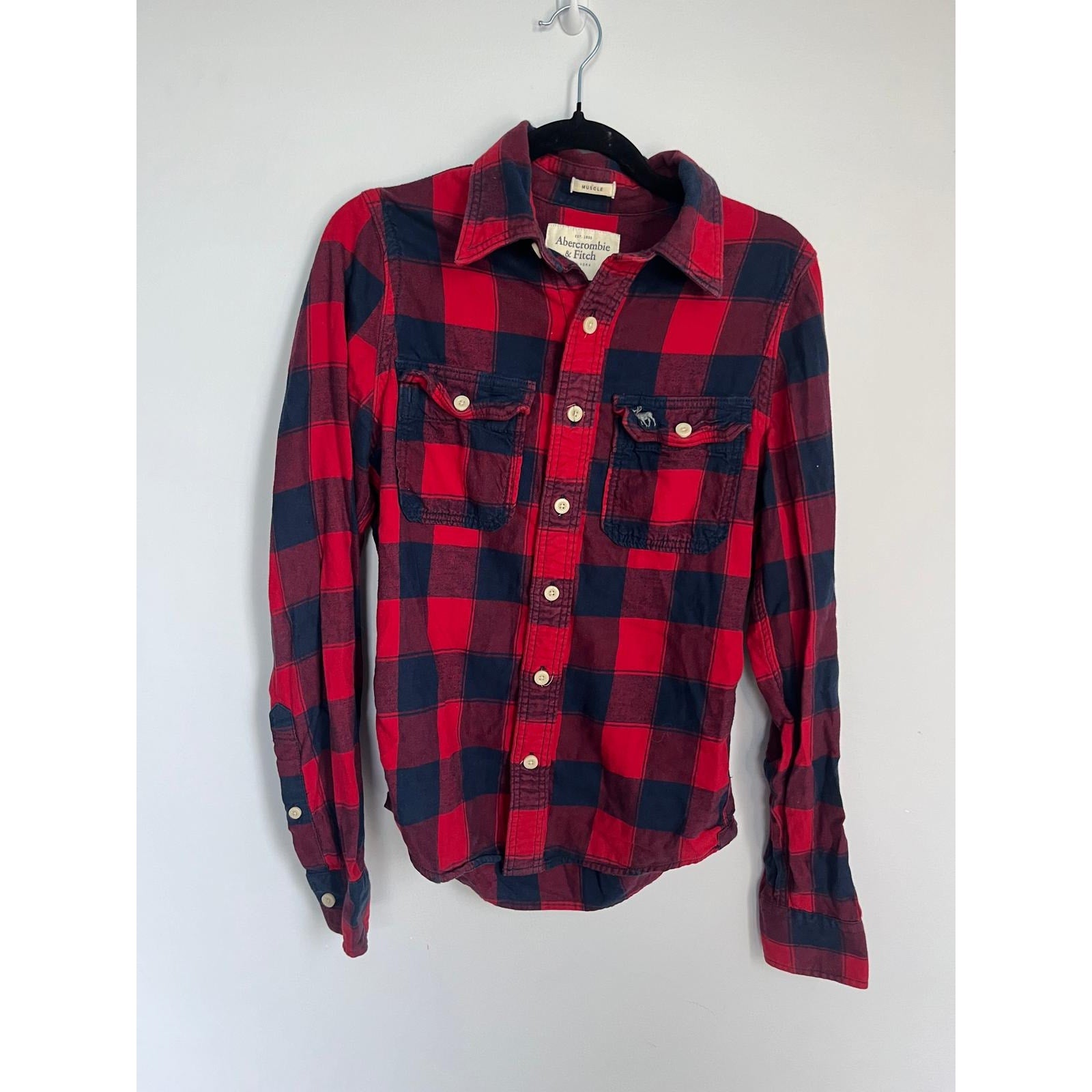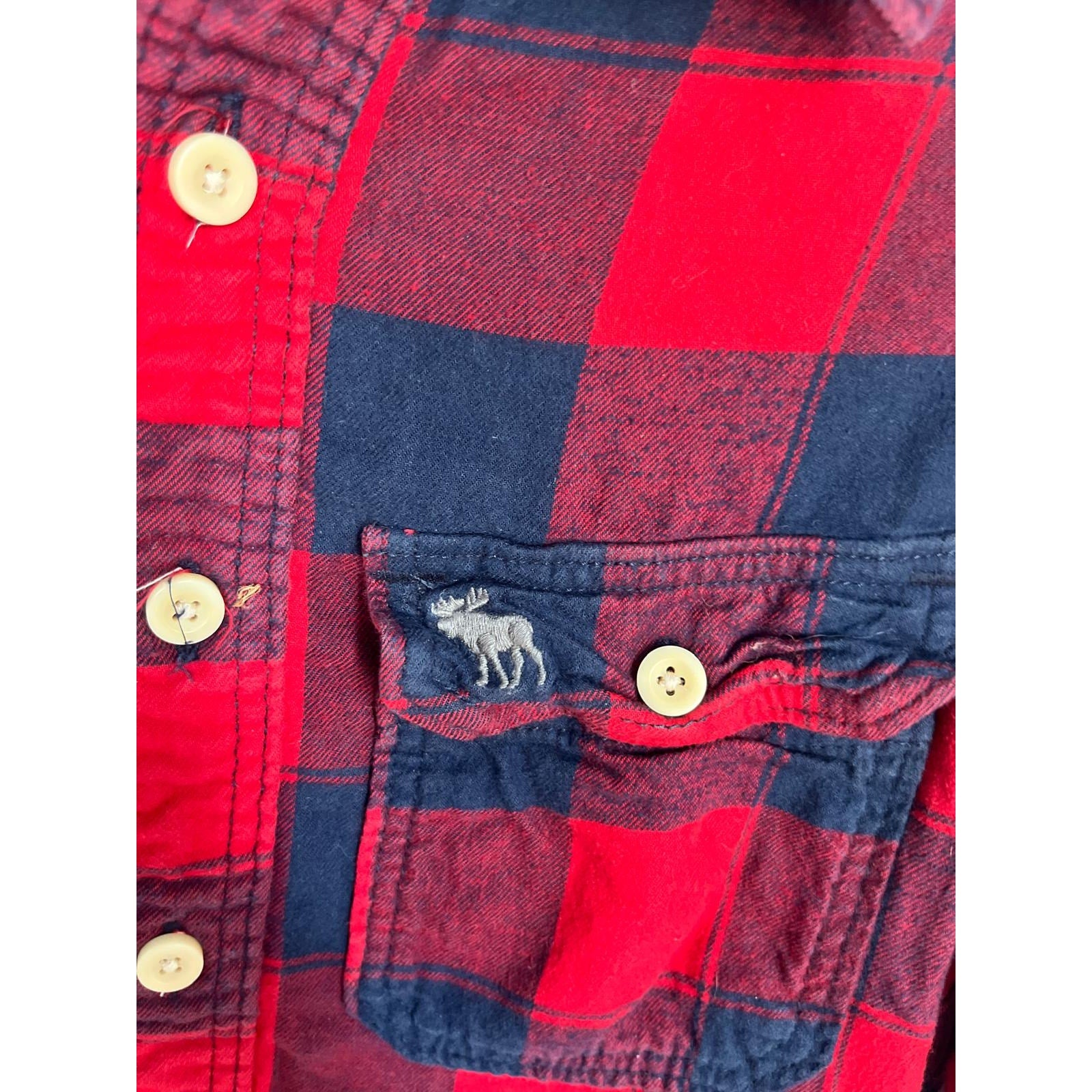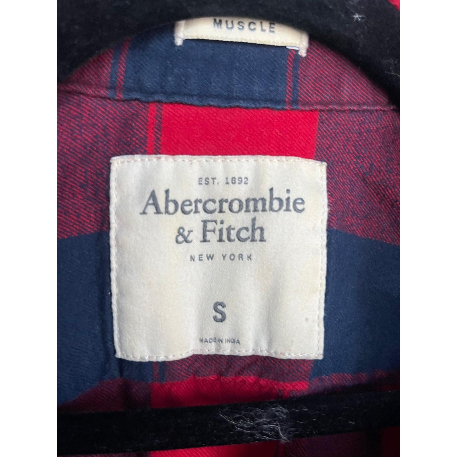 Abercrombie & Fitch Flannel Shirt Men S Red Black Plaid Long Sleeve Muscle Fit