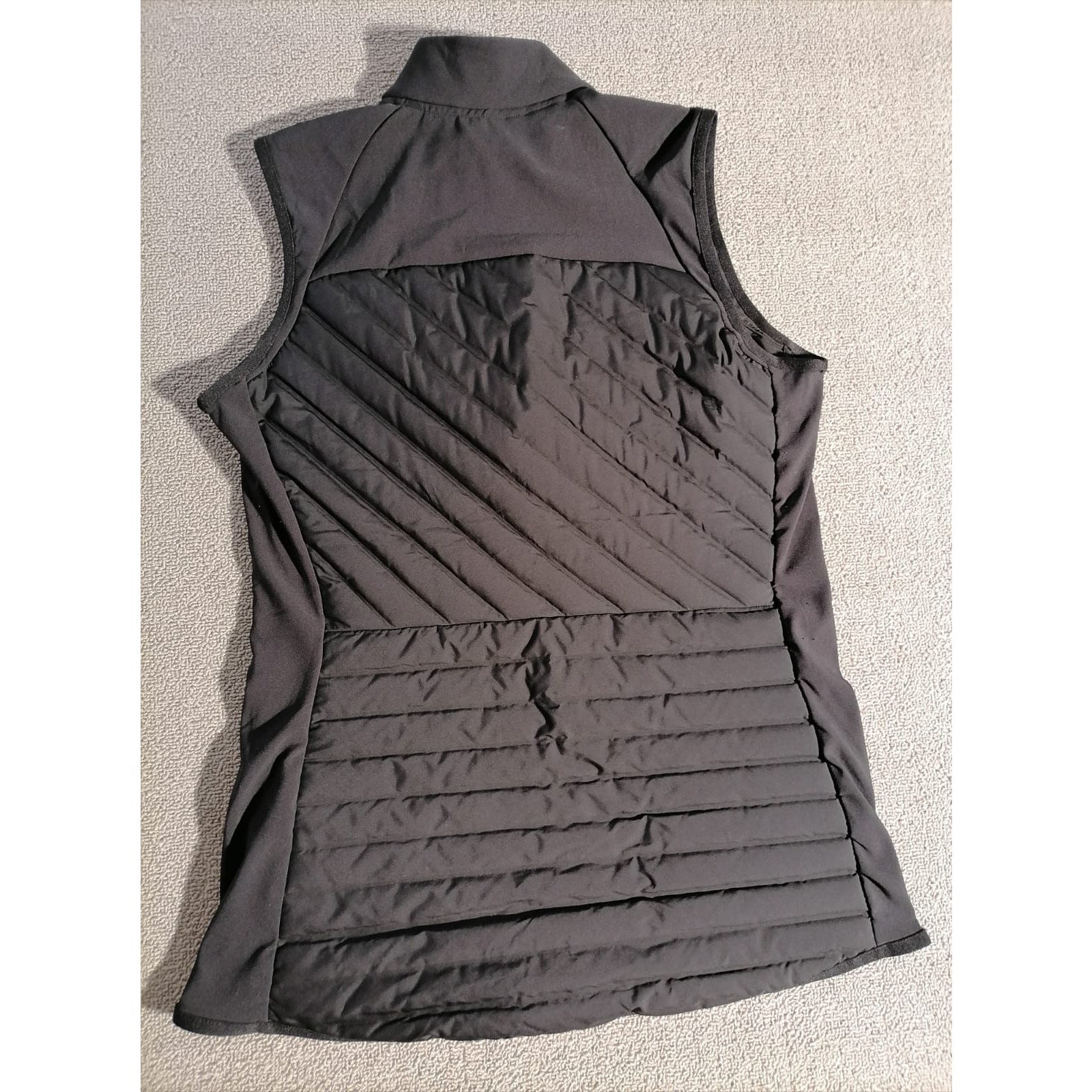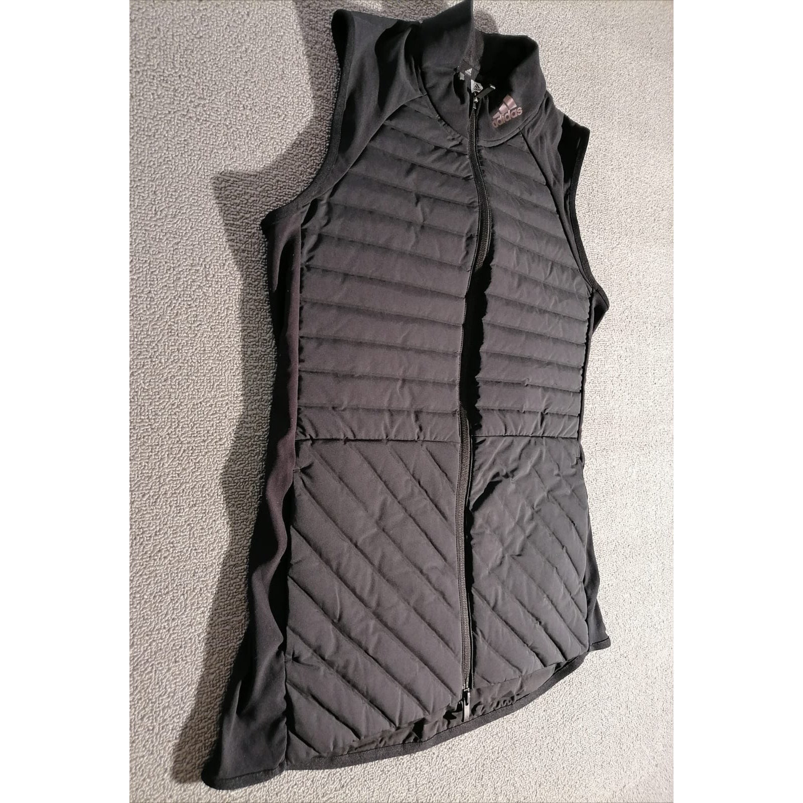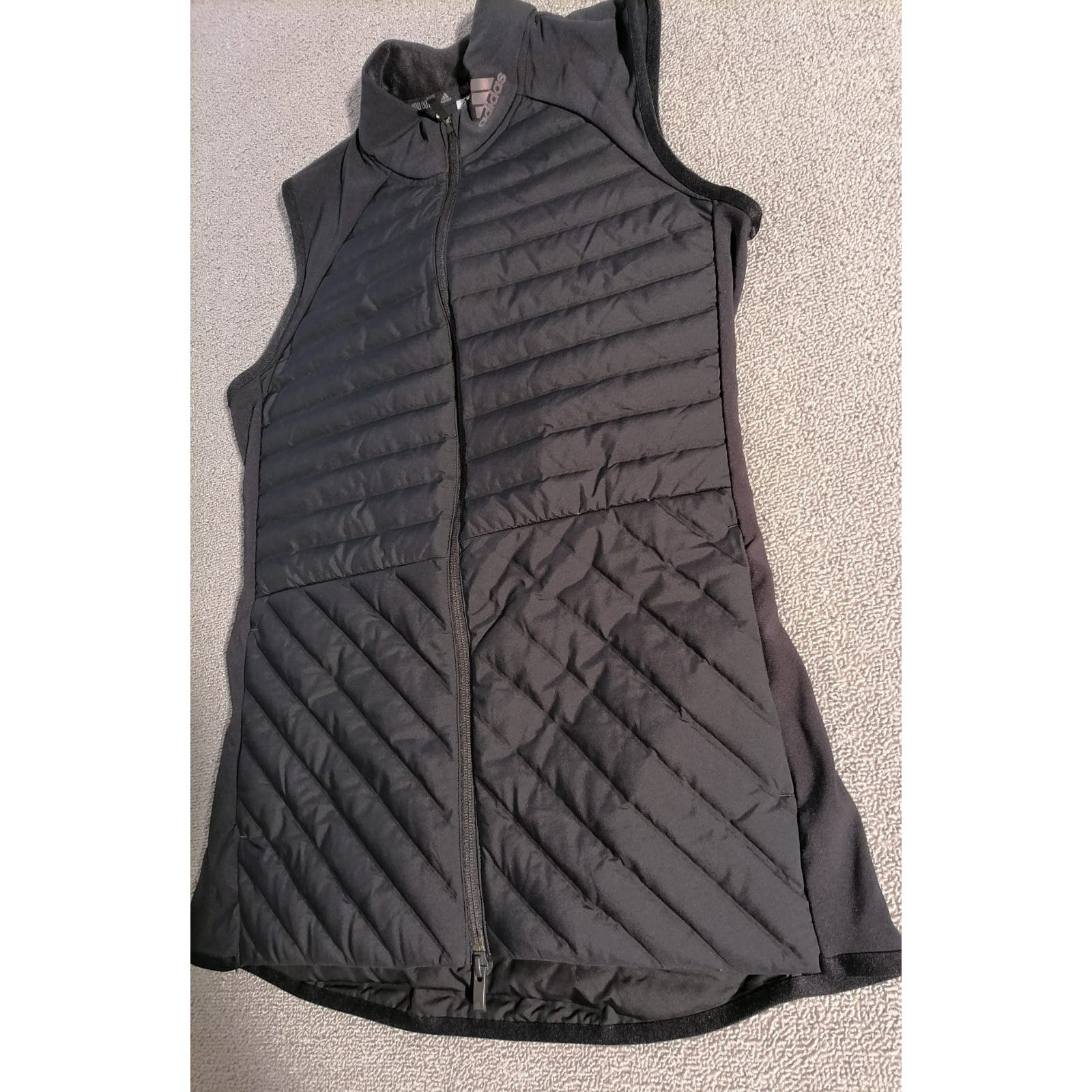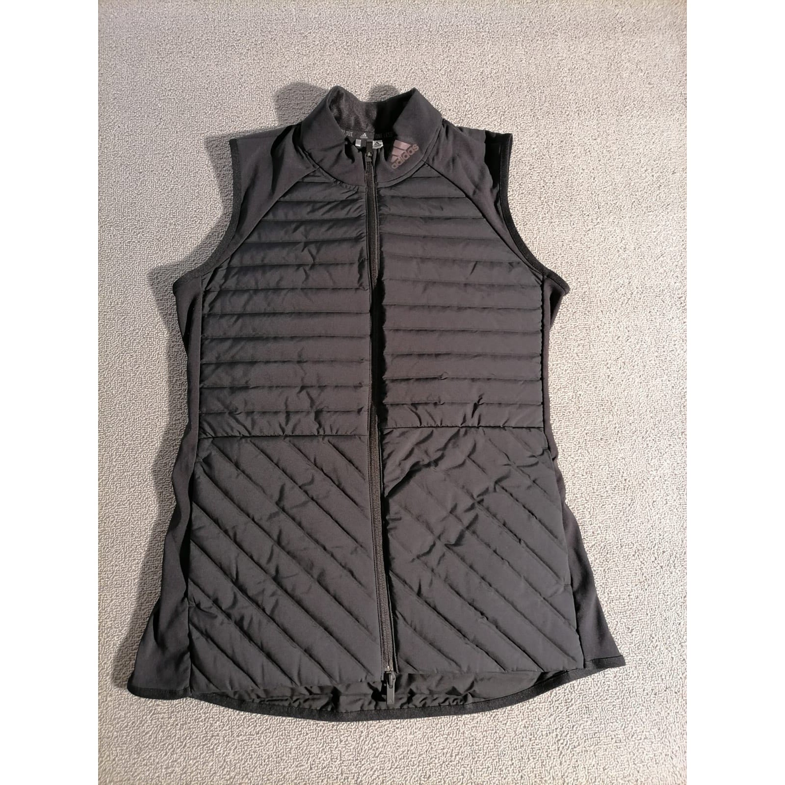 A sporty sleeveless hybrid vest by Adidas in women’s size M, featuring quilted front panels for warmth and stretchy side panels for ease of movement. It has a full-length front zipper and a streamlined athletic silhouette—ideal for layering during outdoor workouts or casual days.