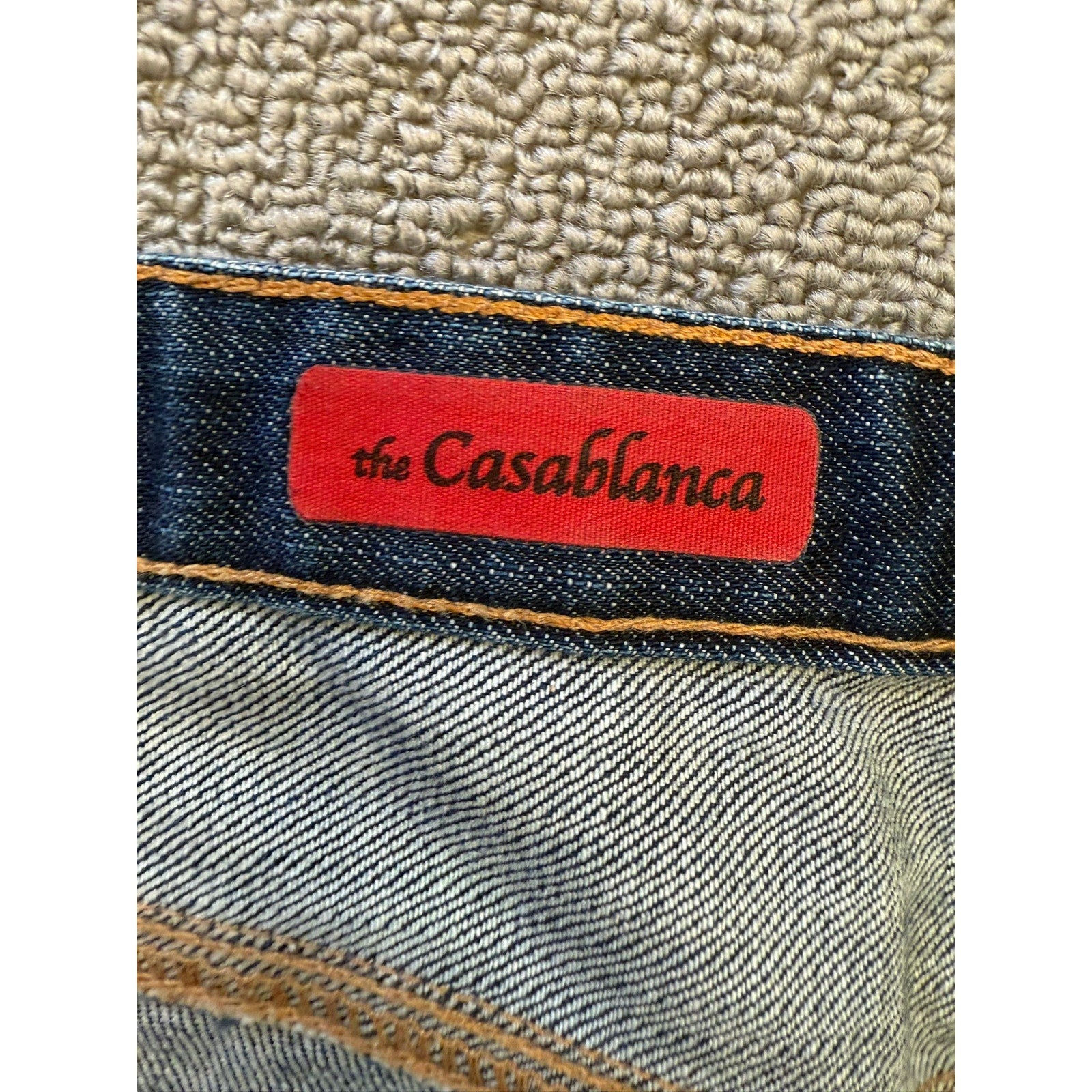 Premium Adriano Goldschmied (AG) straight-leg jeans in a classic mid-blue wash. Made in the USA, offering a flattering straight cut and durable cotton-poly fabric blend, perfect for everyday style with superior craftsmanship.
