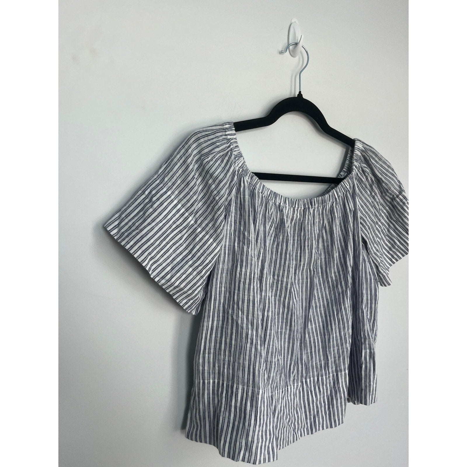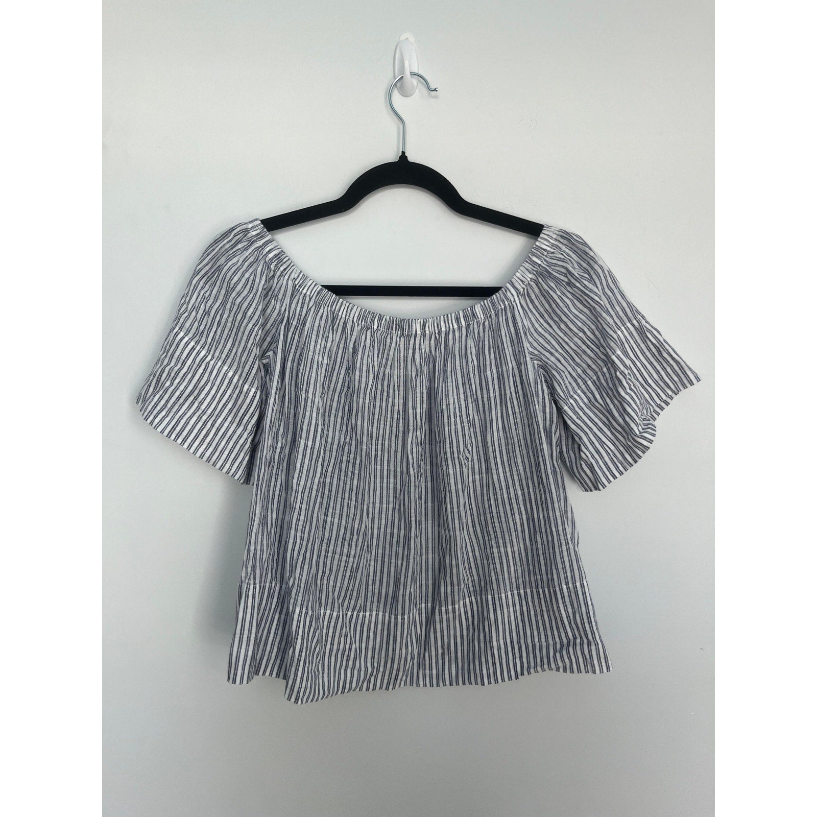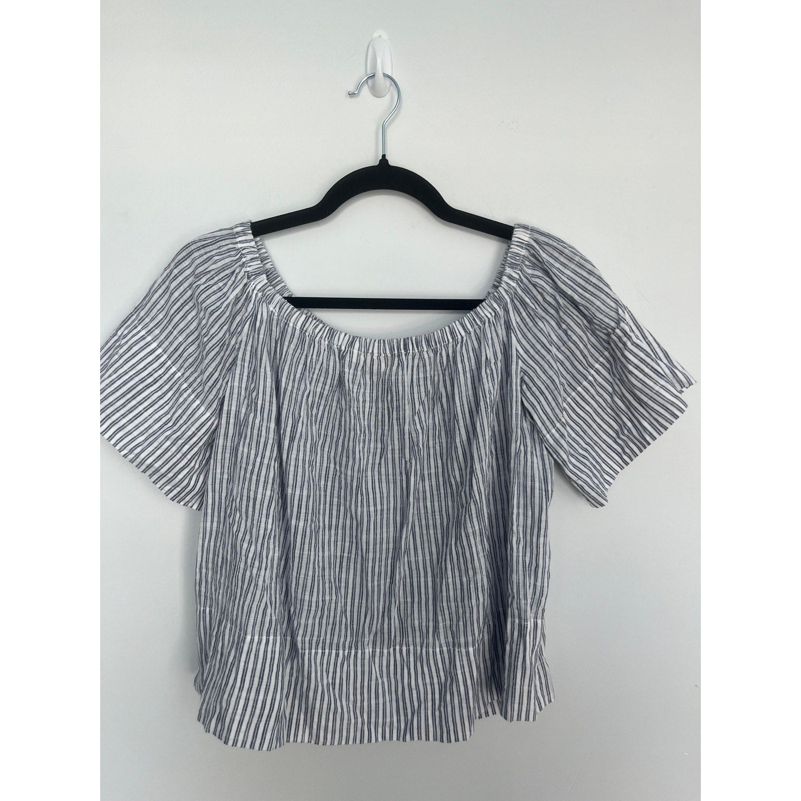 AG Adriano Goldschmied Striped Linen Blouse Women M Off Shoulder Summer Top