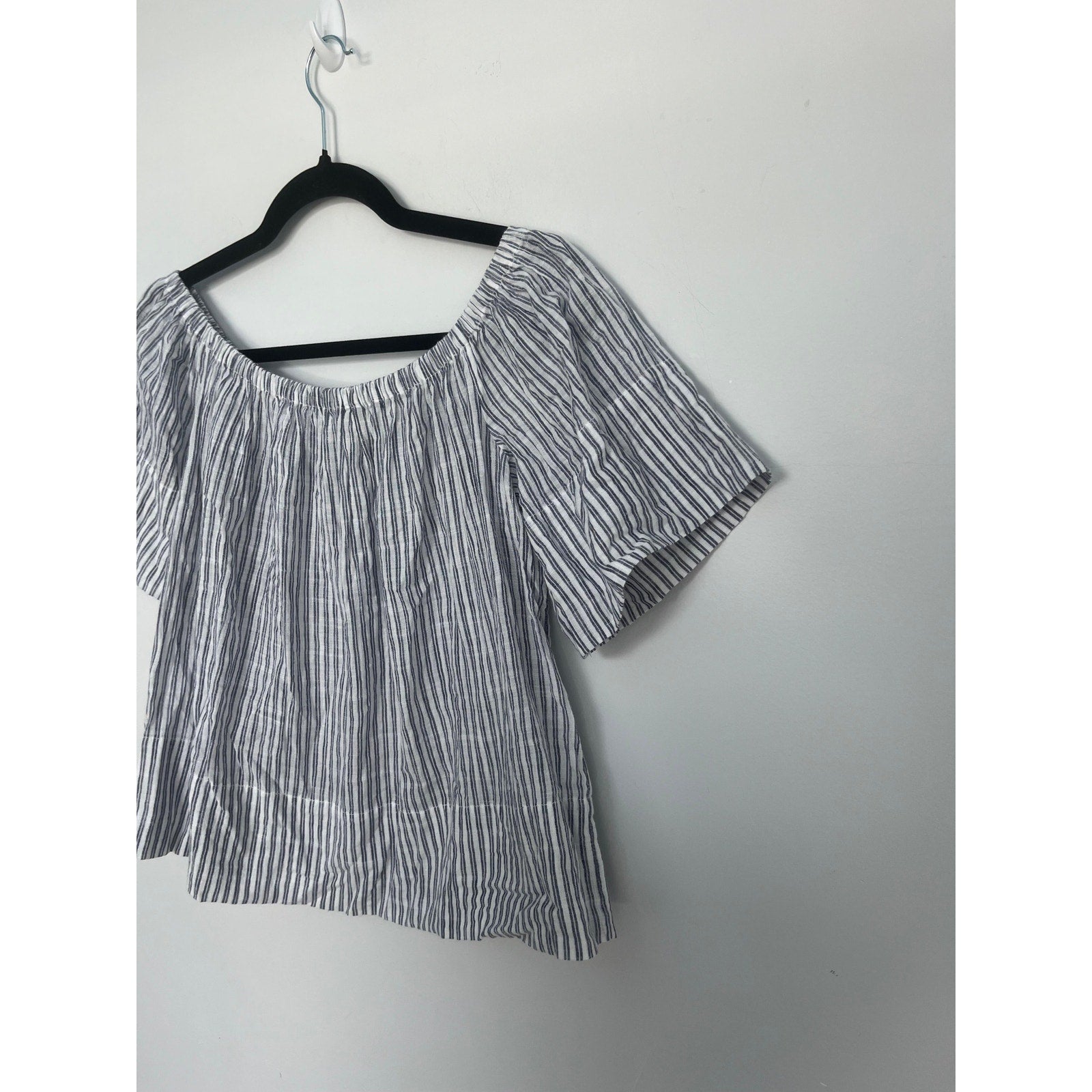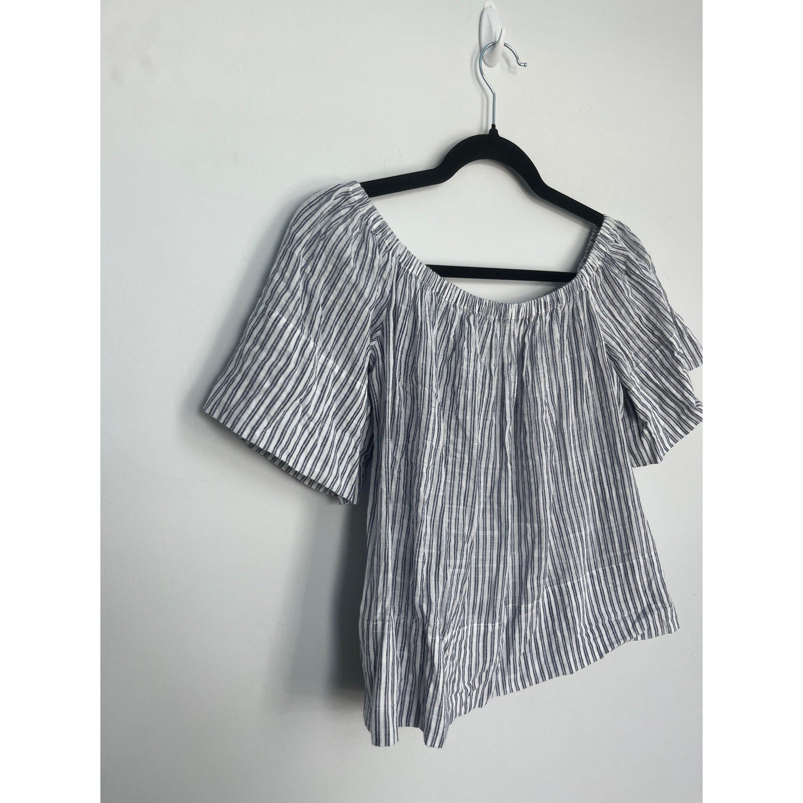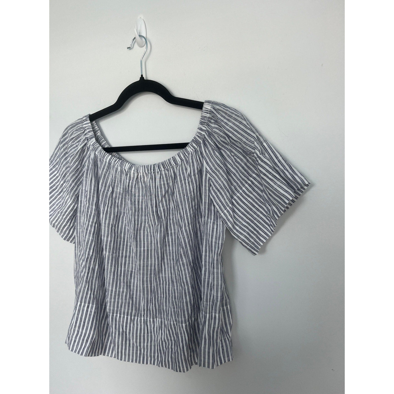 AG Adriano Goldschmied Striped Linen Blouse Women M Off Shoulder Summer Top