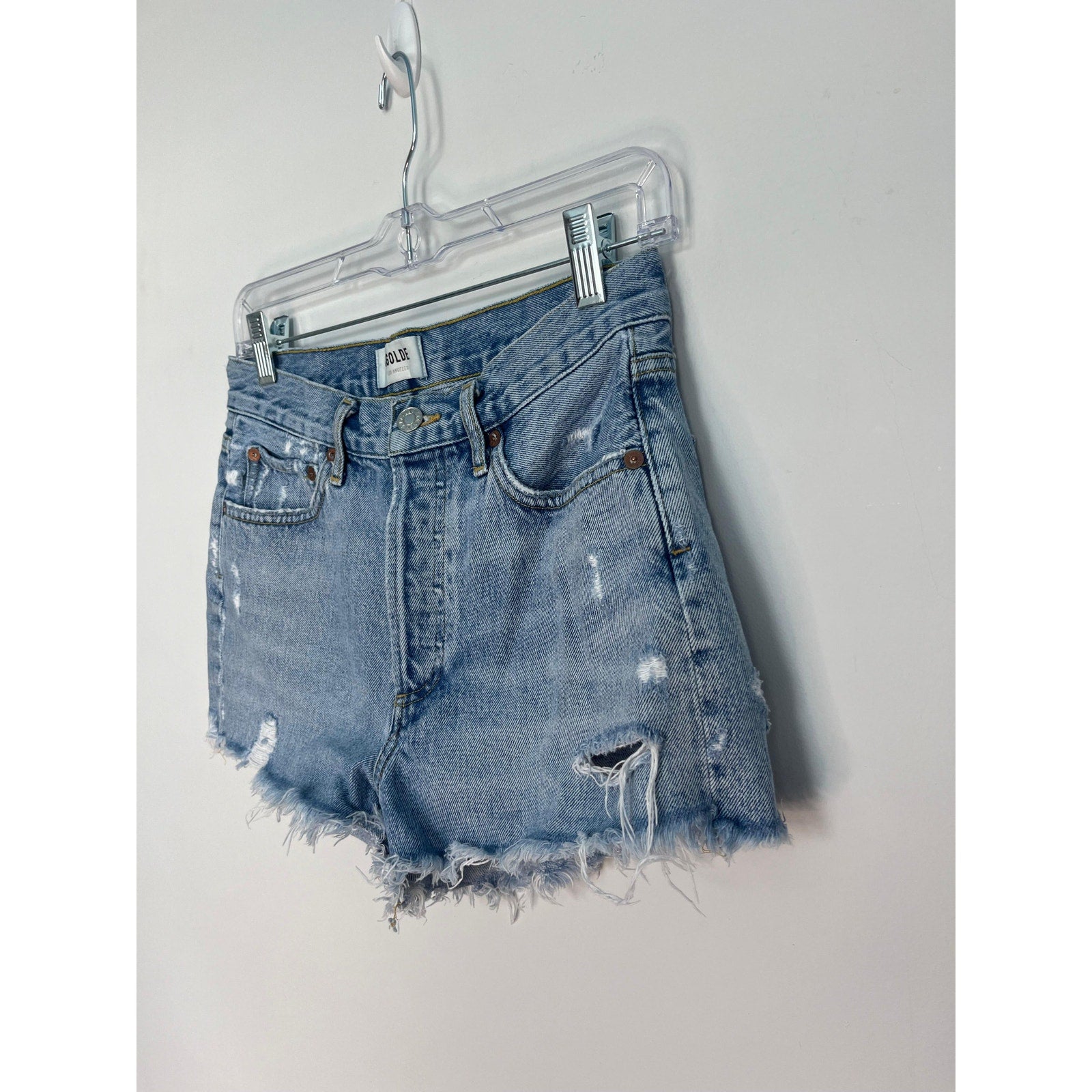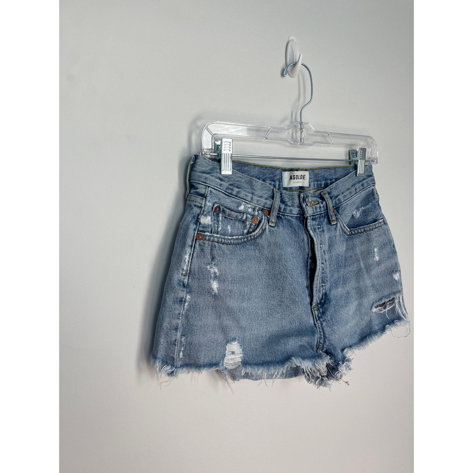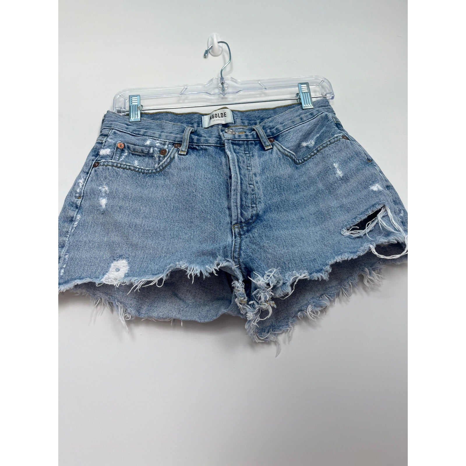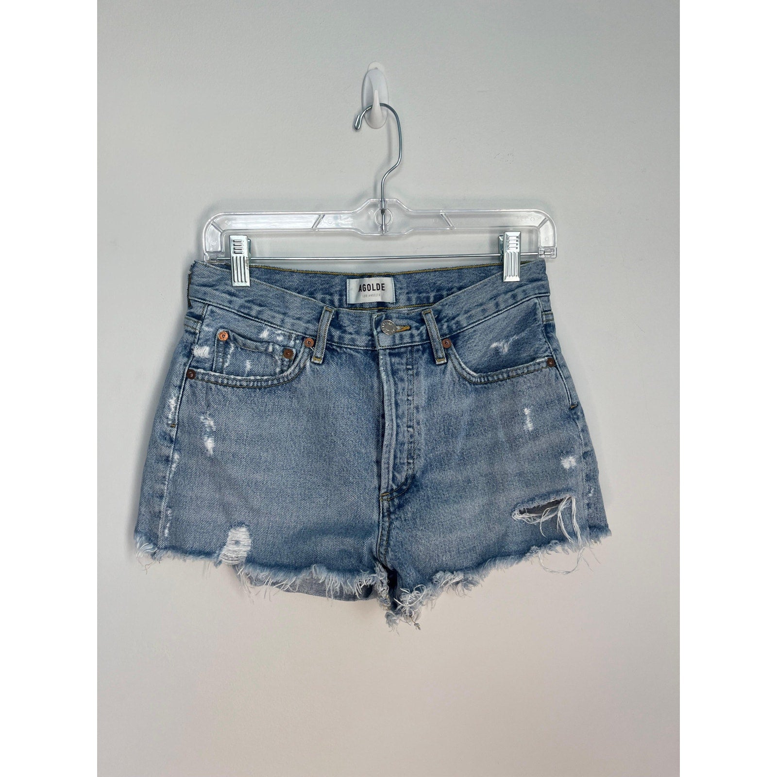 AGOLDE Parker Vintage Shorts Women 25 Blue Distressed Frayed Hem High Rise