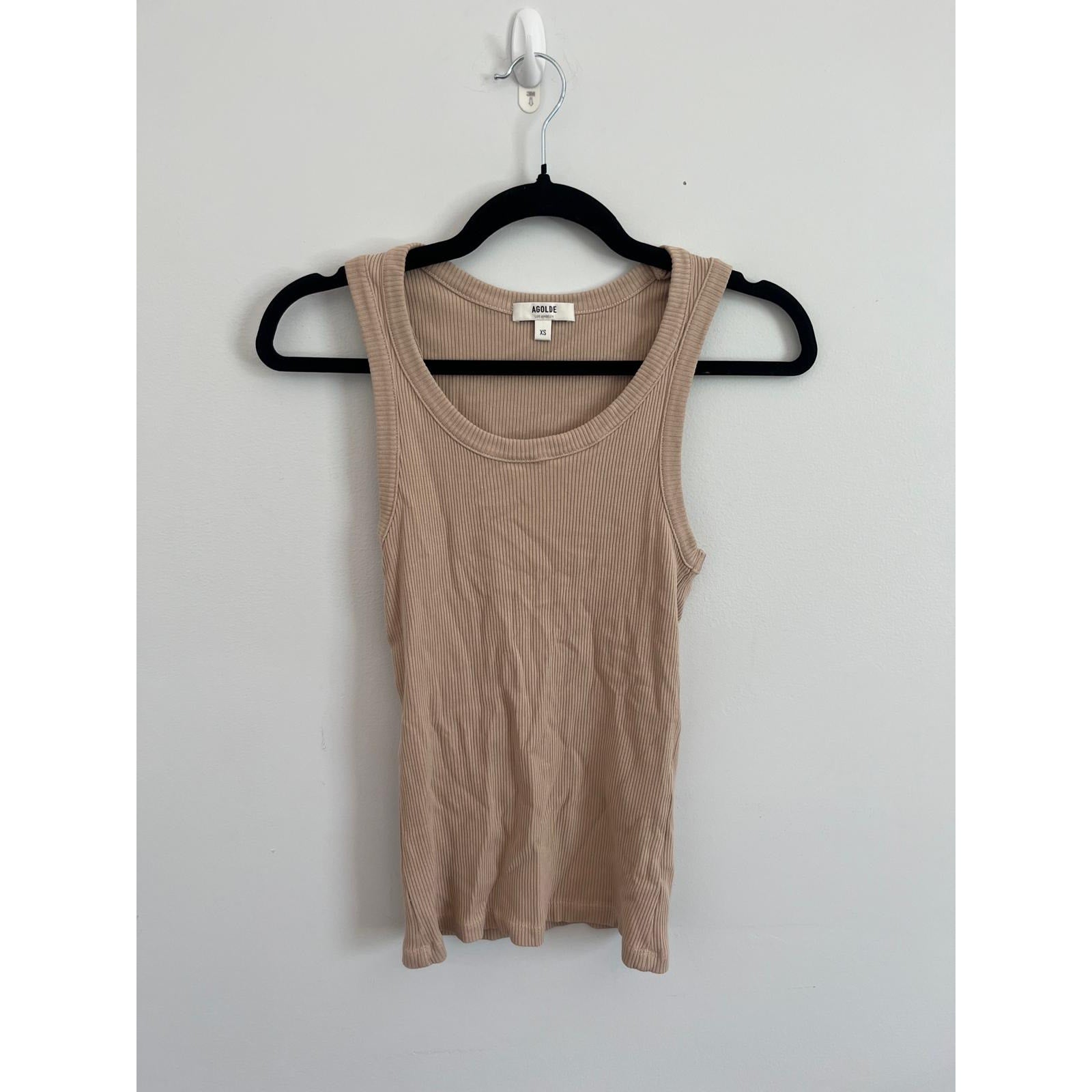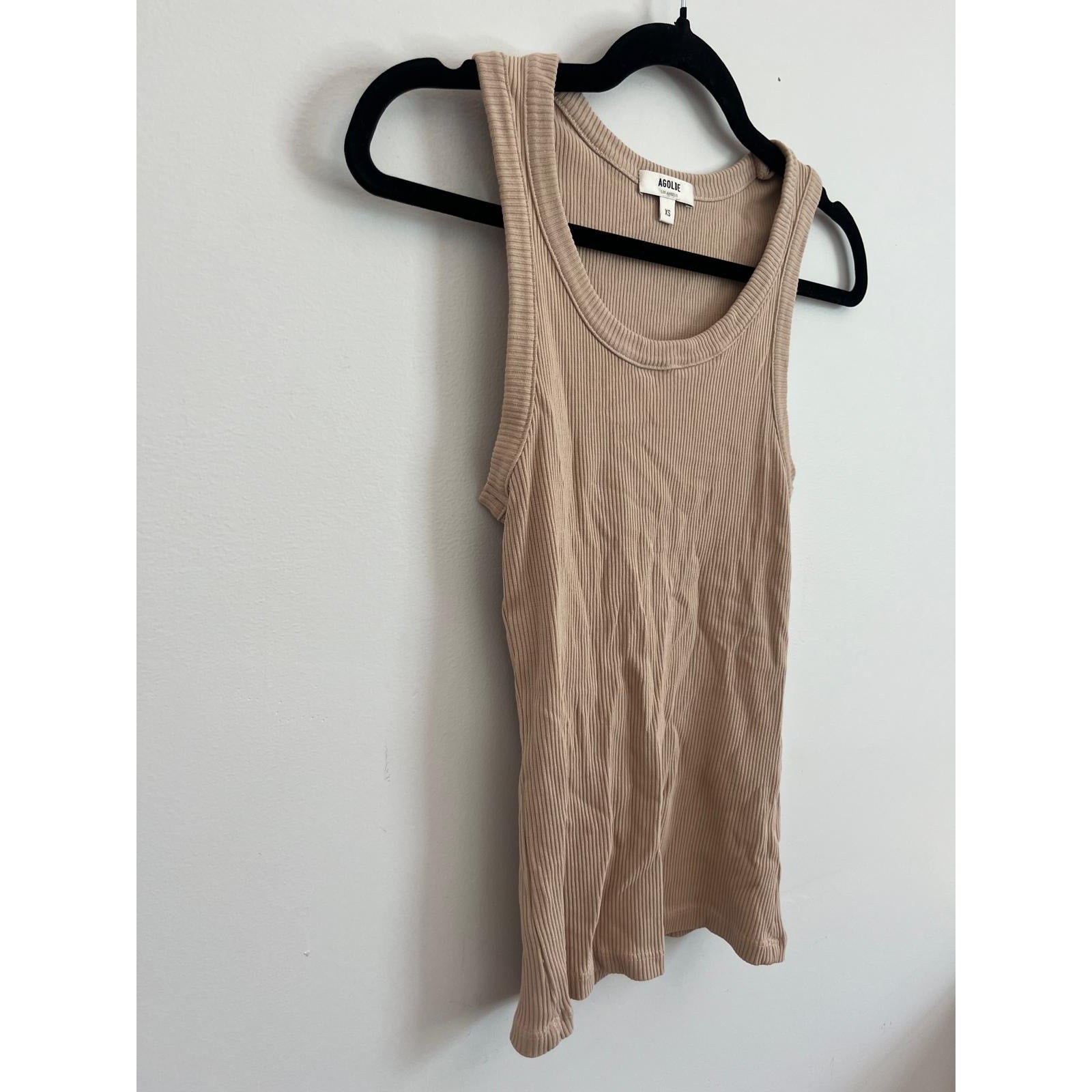Agolde Ribbed Tank Top Women XS Beige Sleeveless Basic Stretchy Knit