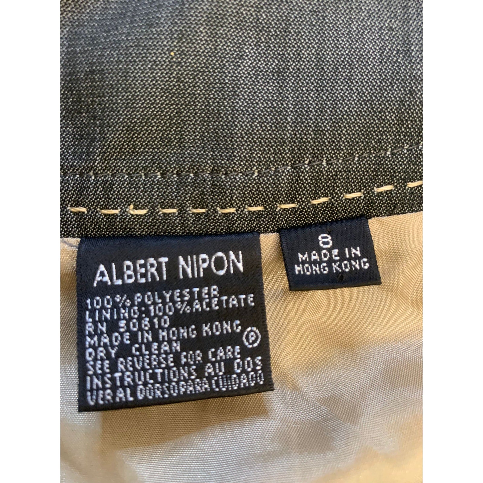 Albert Nipon Gray Pleated A-Line Skirt Women 8 White Stiching