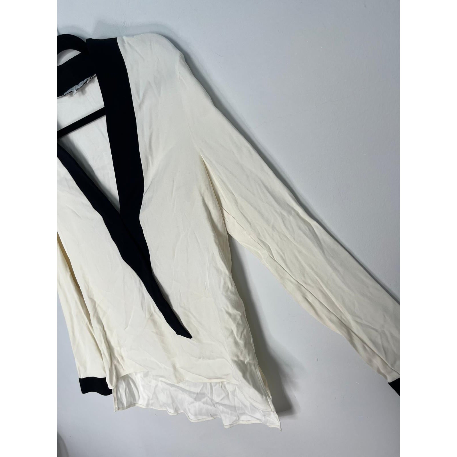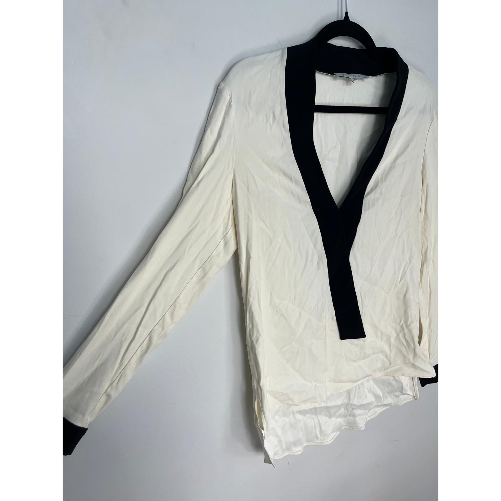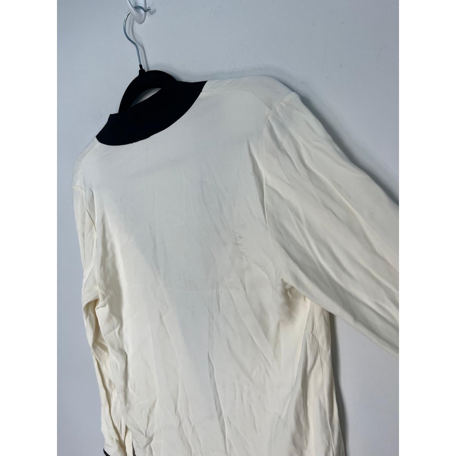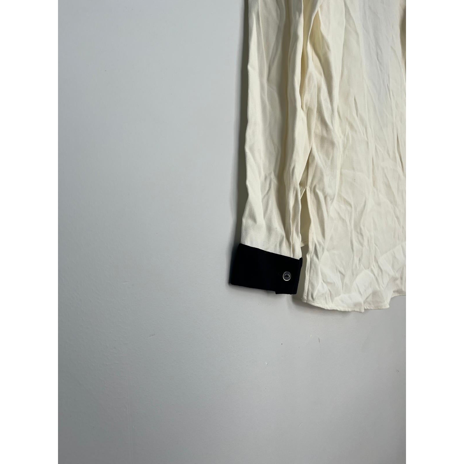 Alexis Contrast Trim Blouse Women XS Cream Black Long Sleeve Minimalist