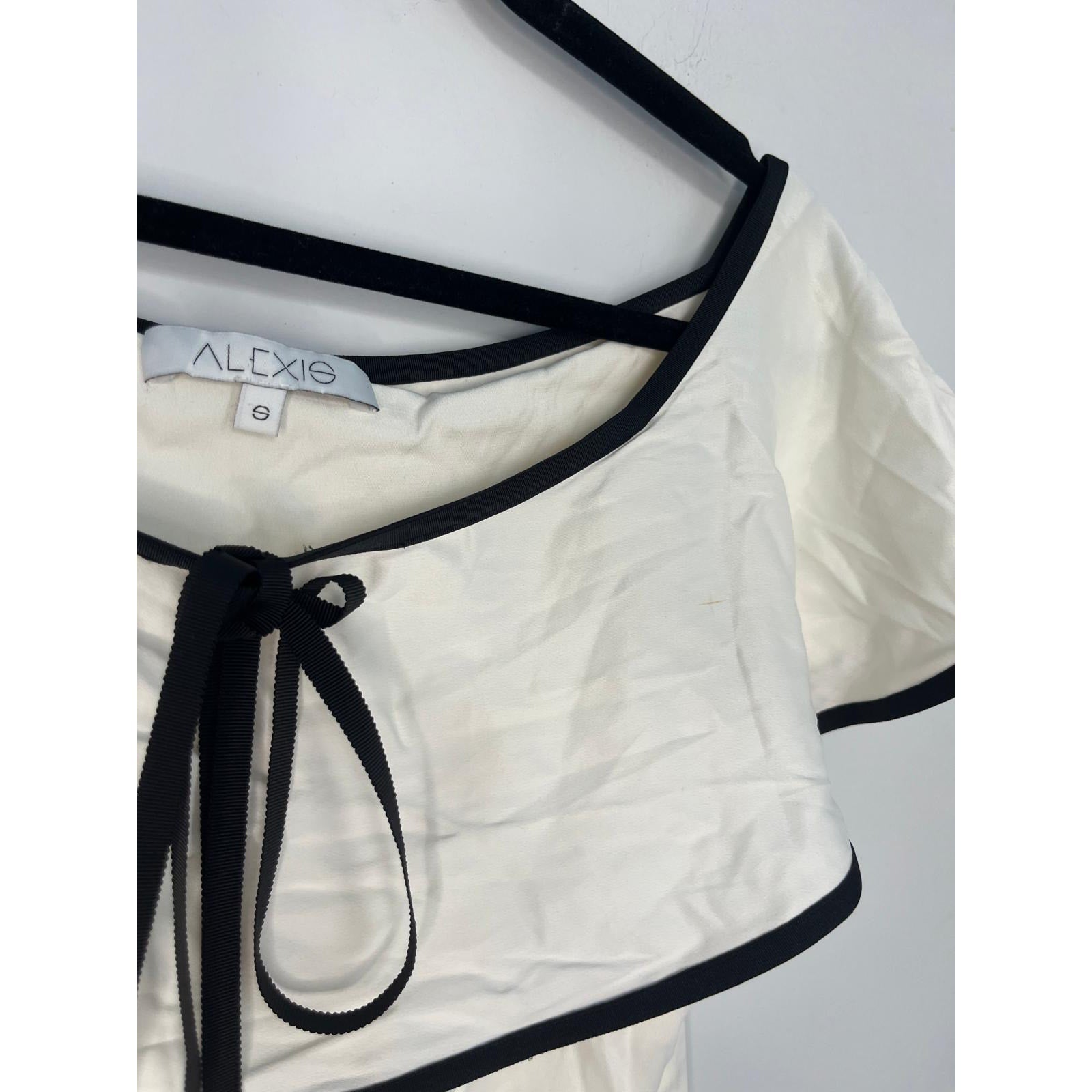Alexis Ruffle Trim Blouse Women S Contrast Tie Bow Short Sleeve
