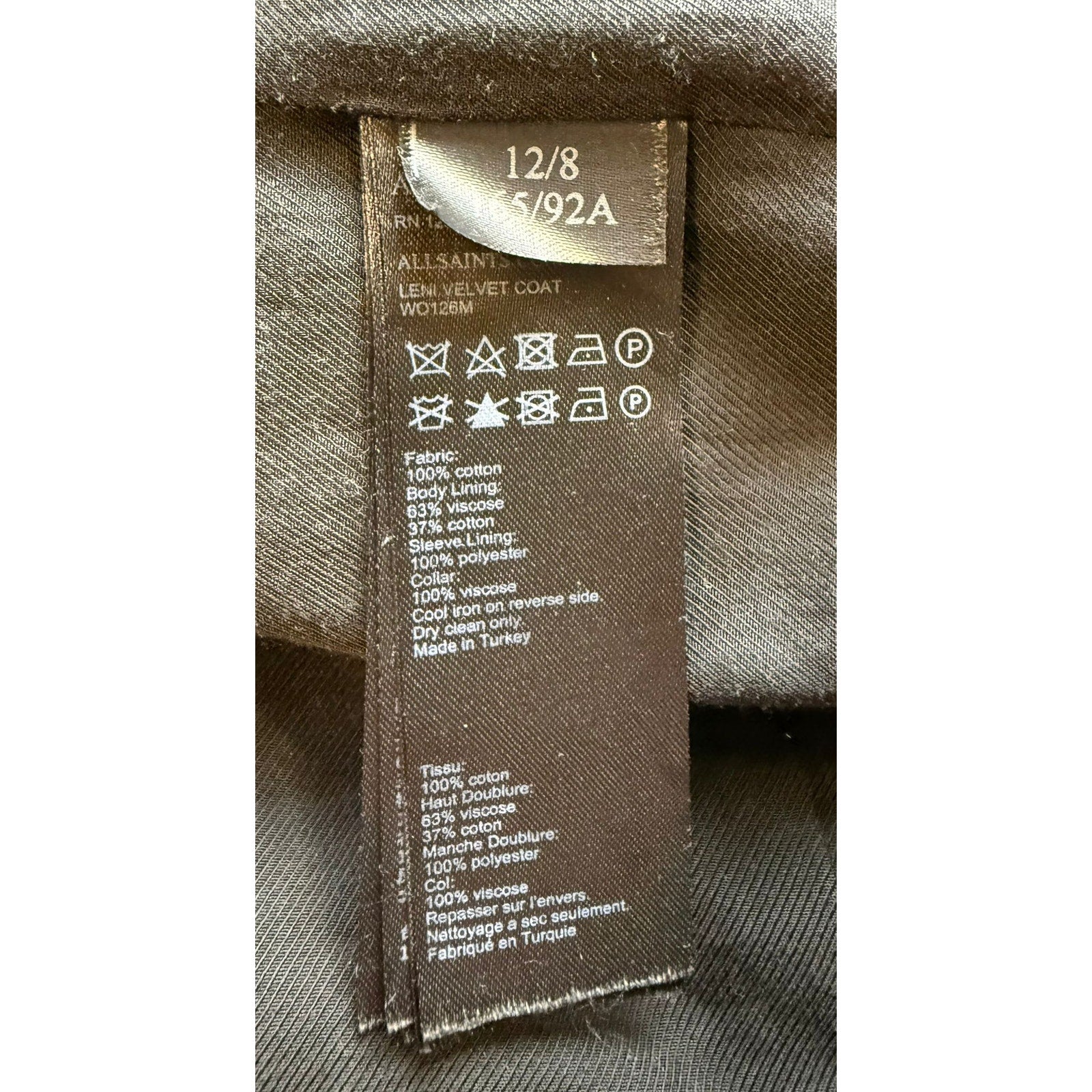 AllSaints Size 8 Black Leni Velvet Coat Button Up Long Cotton
