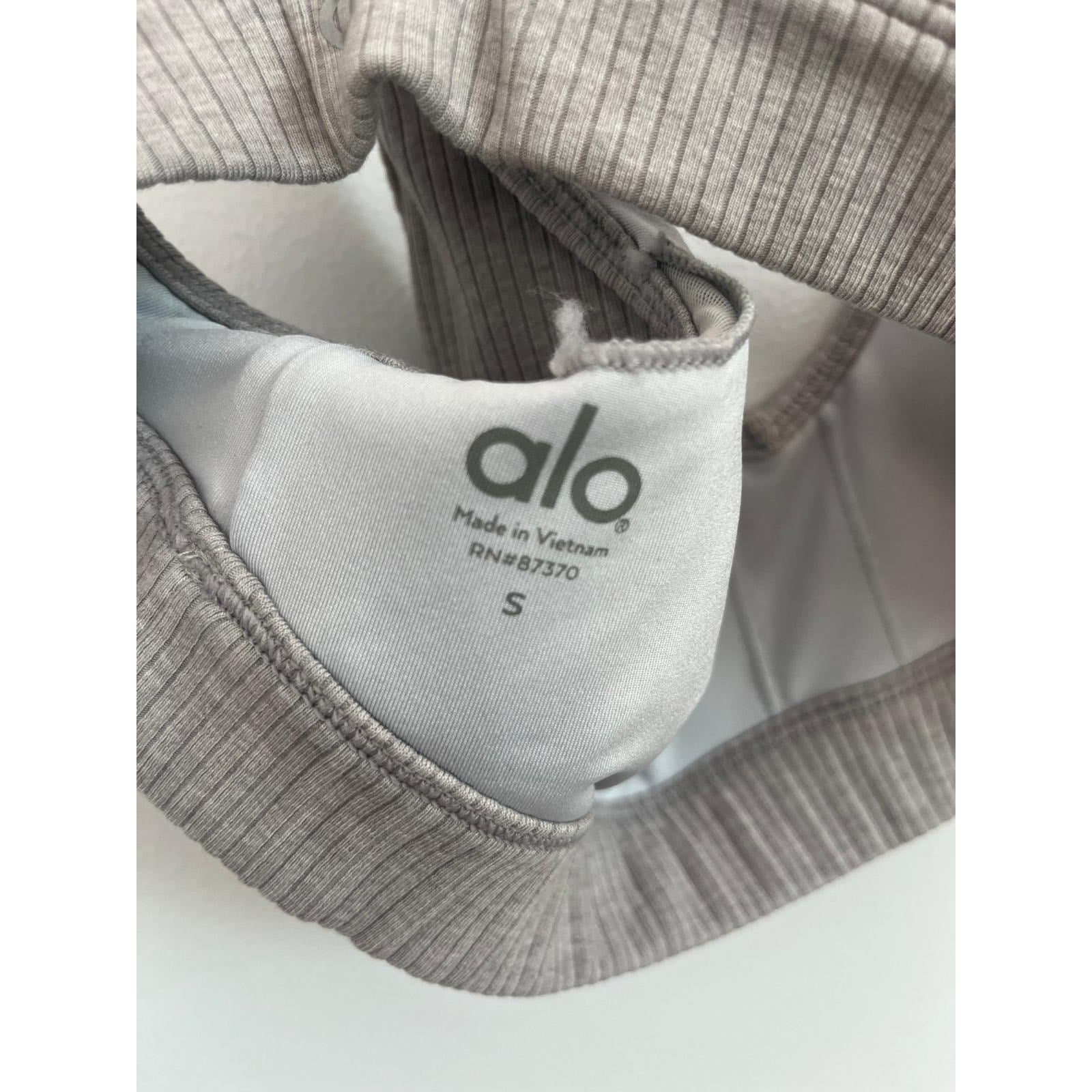 Soft ribbed Alo Yoga bralette with a scoop neckline and minimalist Y-back straps. Light support ideal for lounging, yoga, or layering. Features built-in shelf bra for added comfort.