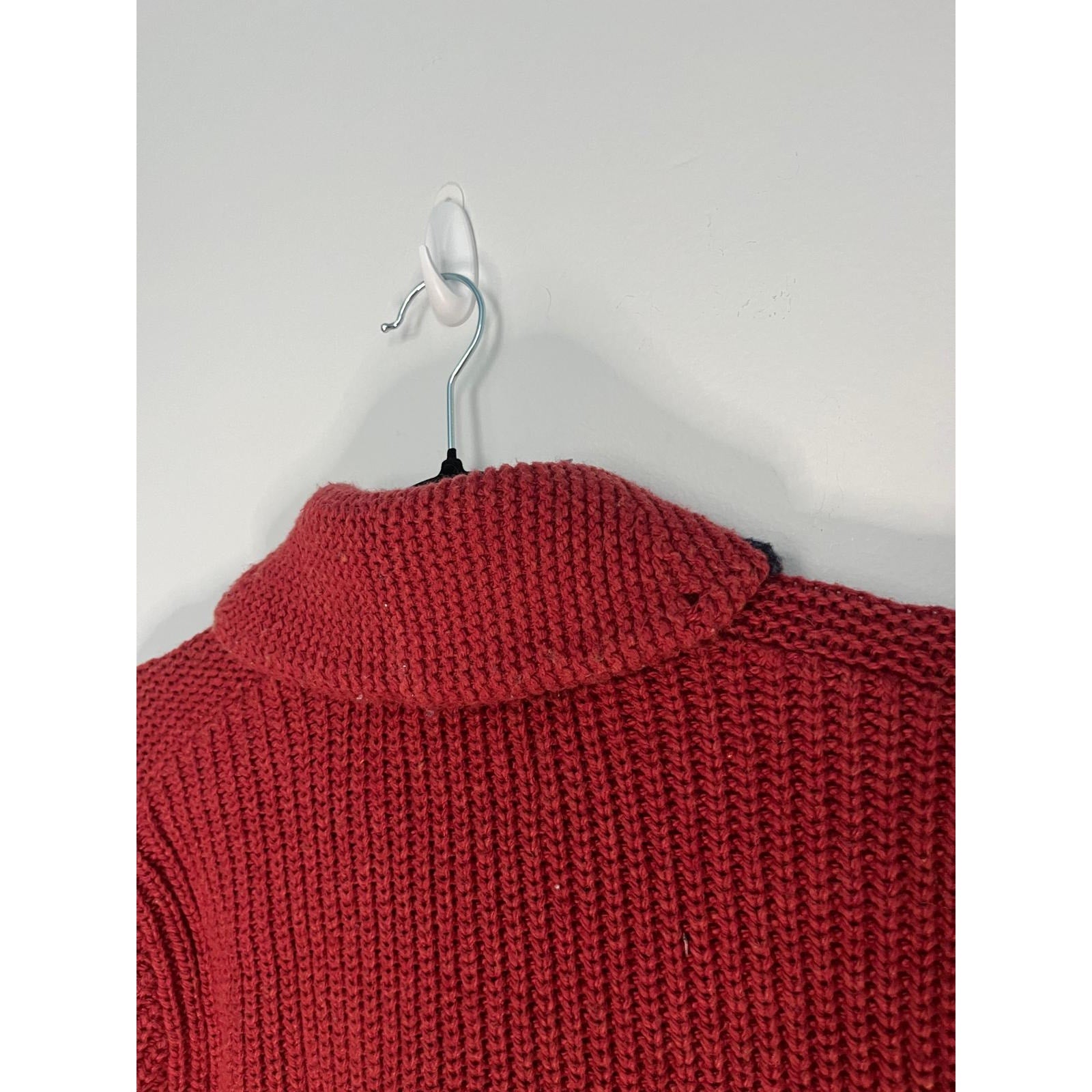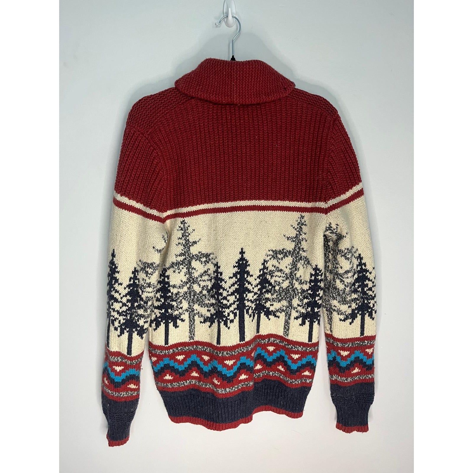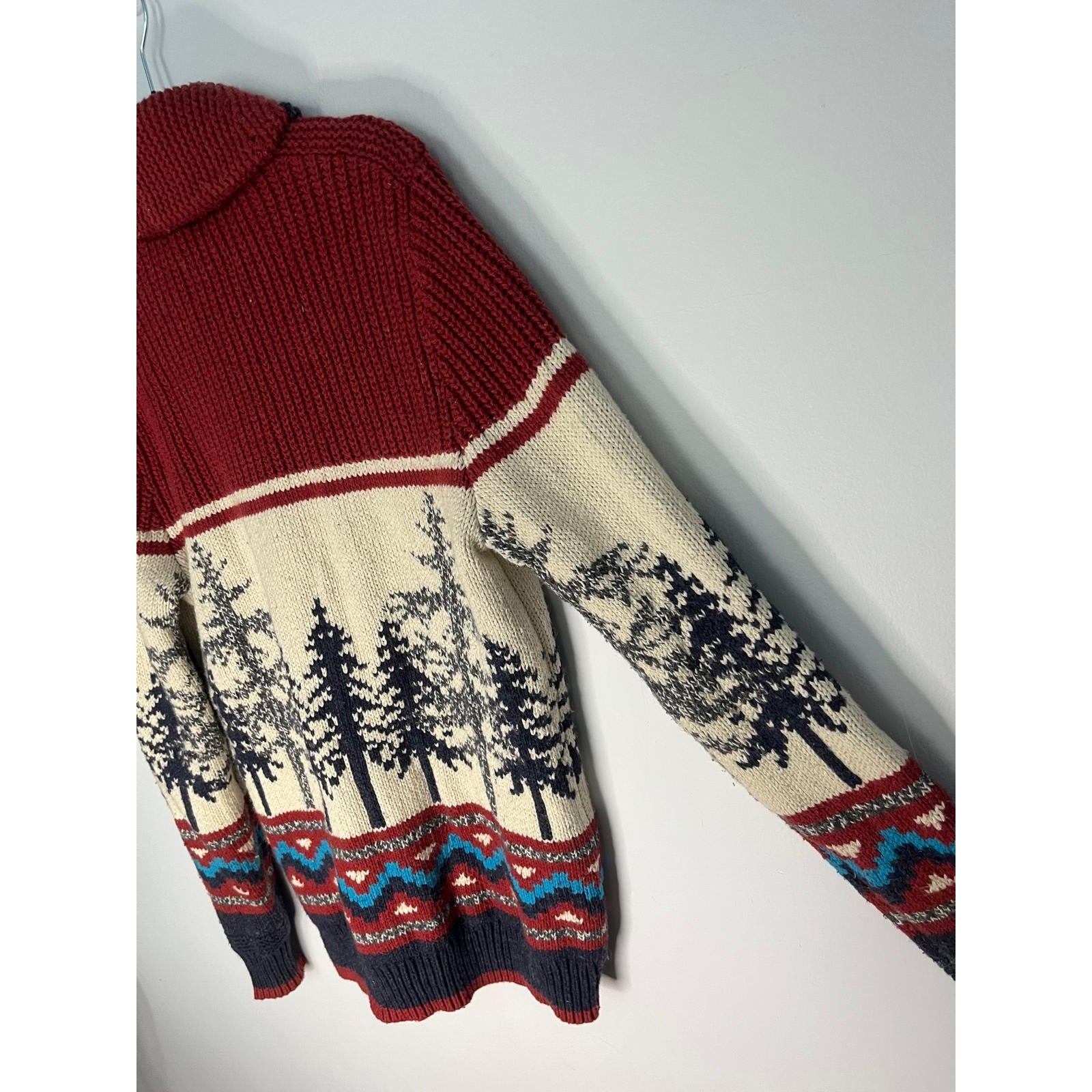 American Eagle Cardigan Women XS Knit Sweater Red Winter Fair Isle Zip Trees