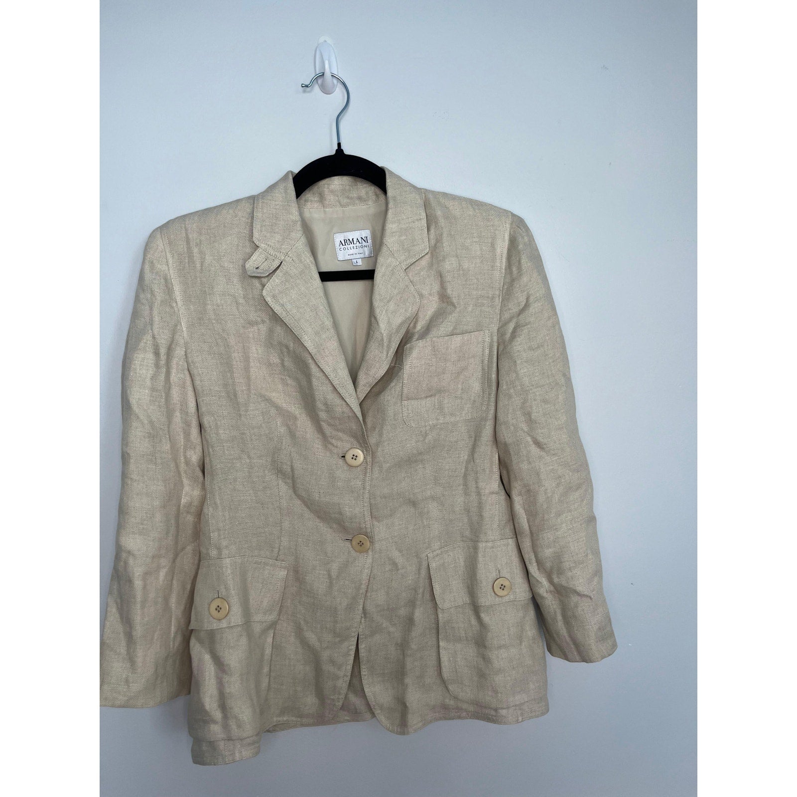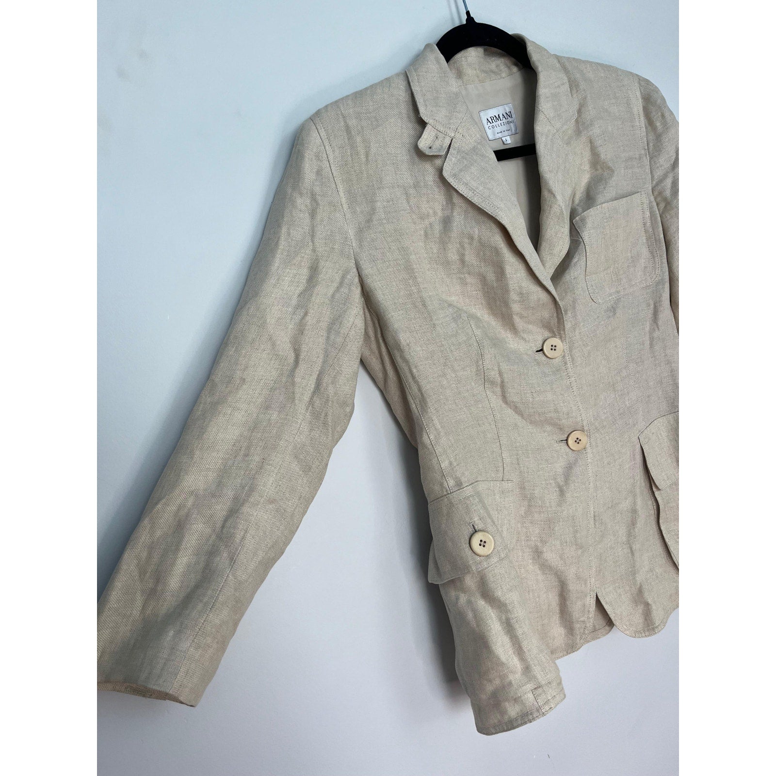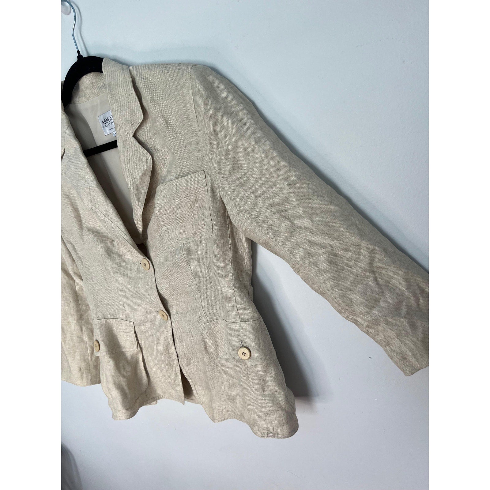 Armani Collezioni Blazer Women 6 Beige Linen Button Front Italy