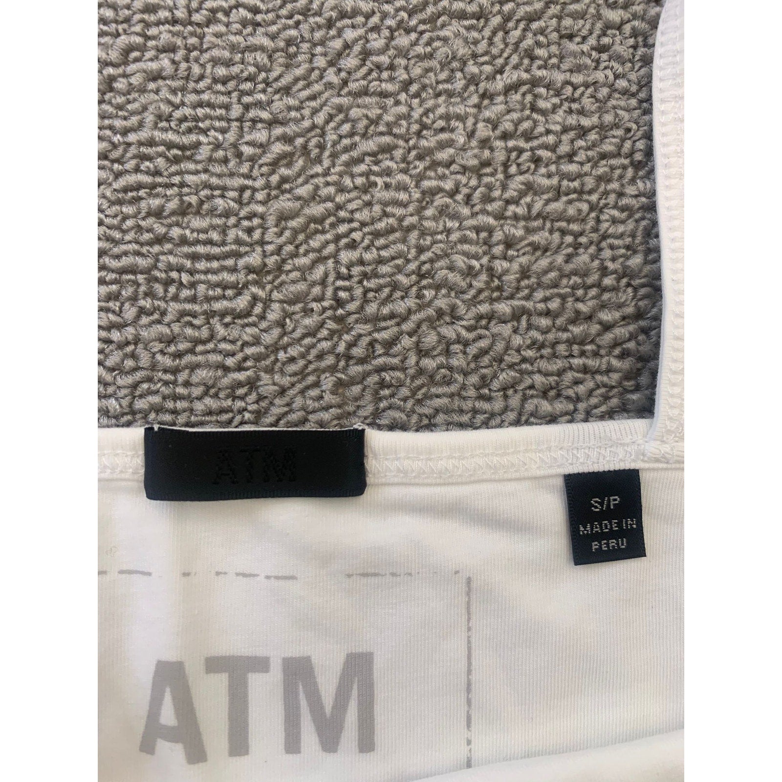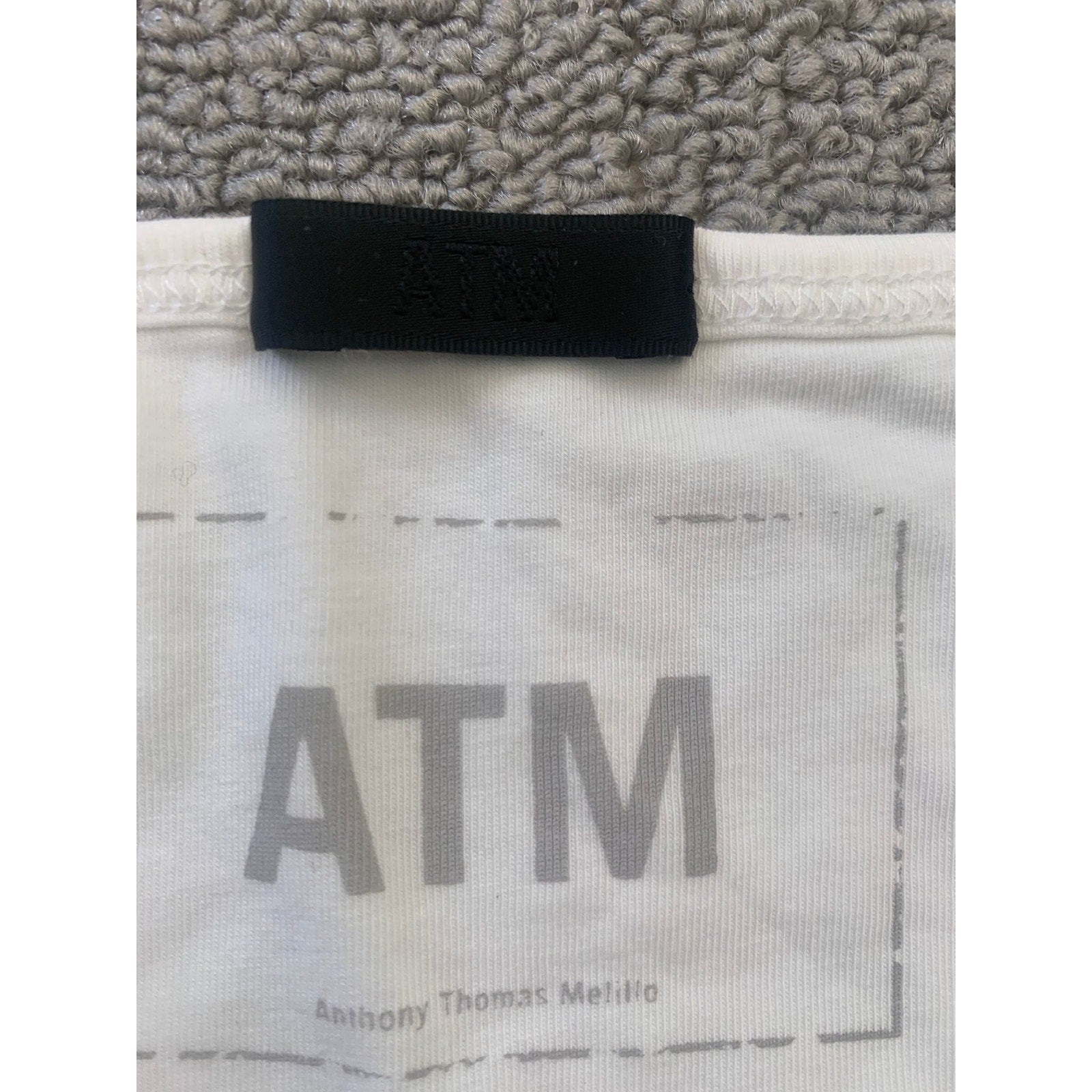 Simplistic and sleek ATM Anthony Thomas Melillo camisole-style bodysuit in clean white, featuring thin spaghetti straps and a square neckline with a three‑snap gusset closure. Crafted from soft stretch-knit likely in cotton or modal blend, offering a streamlined, second-skin fit perfect for layering or standalone wear.