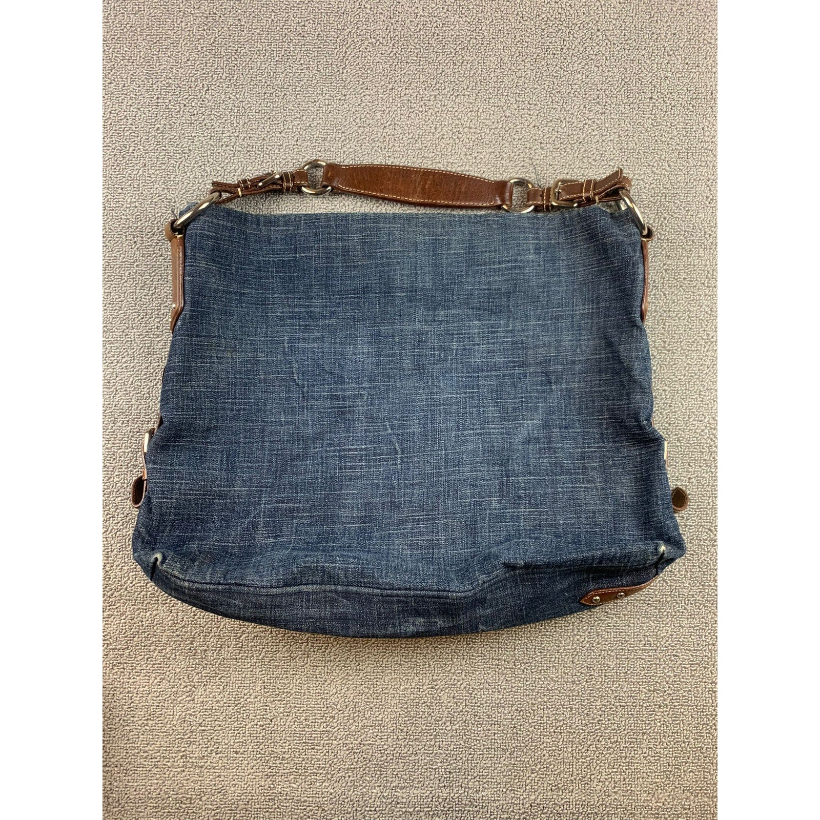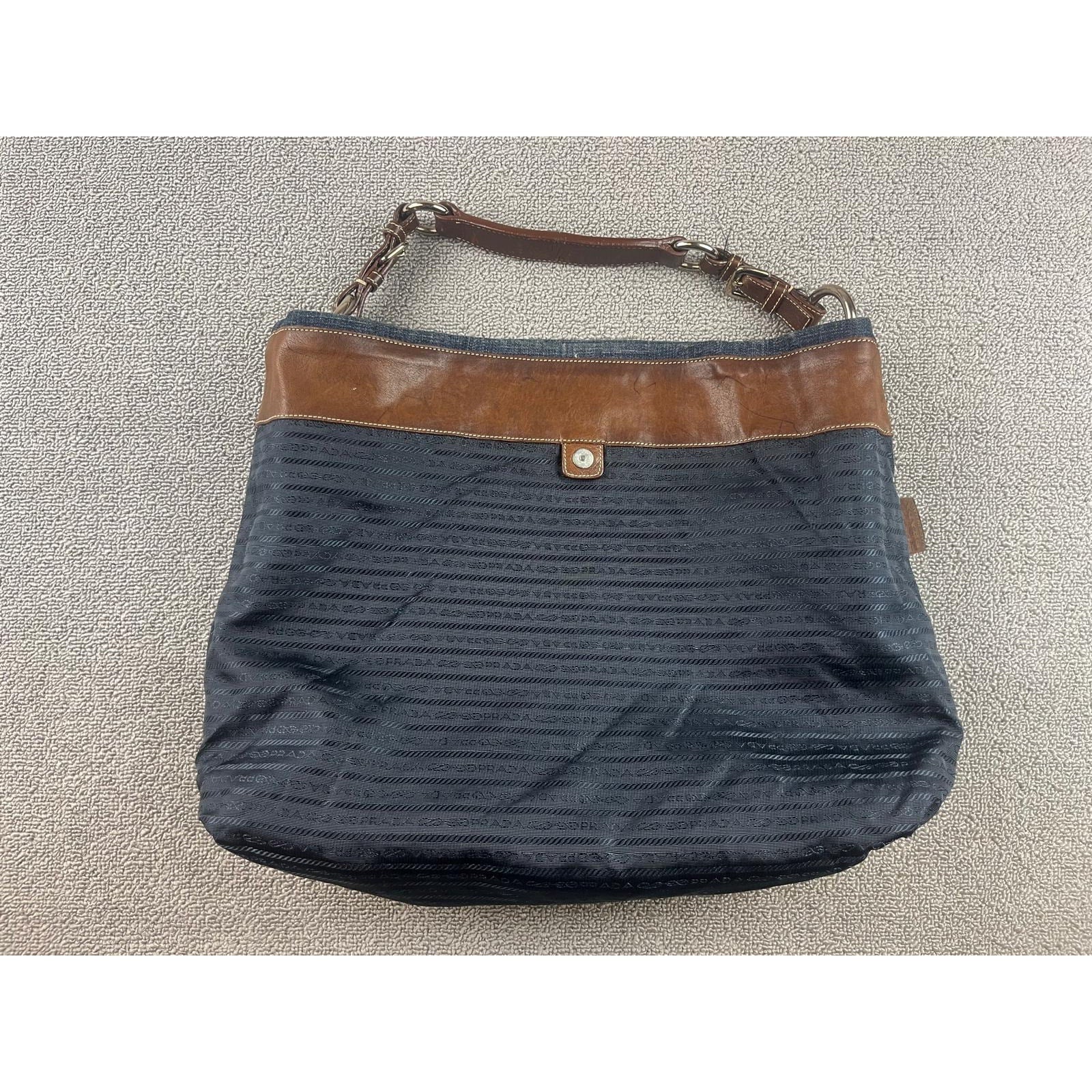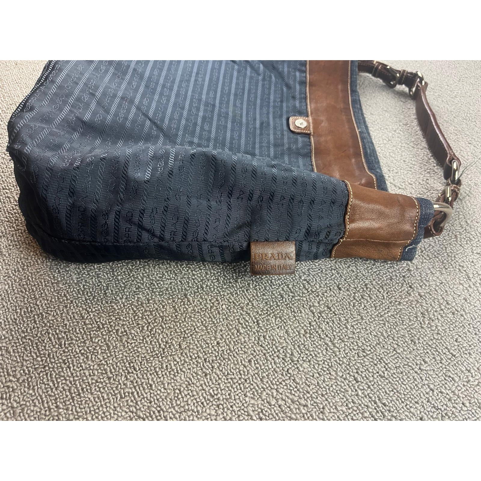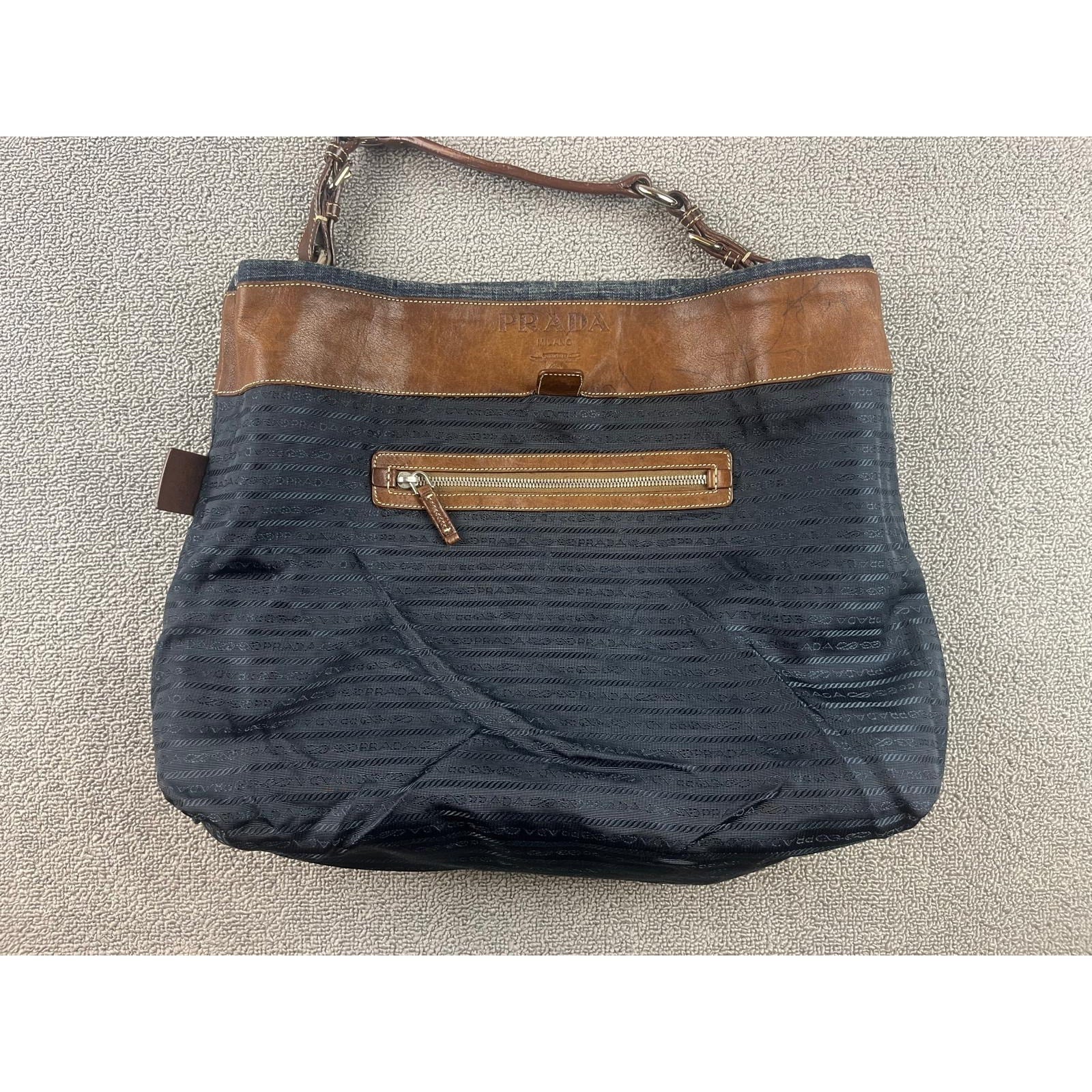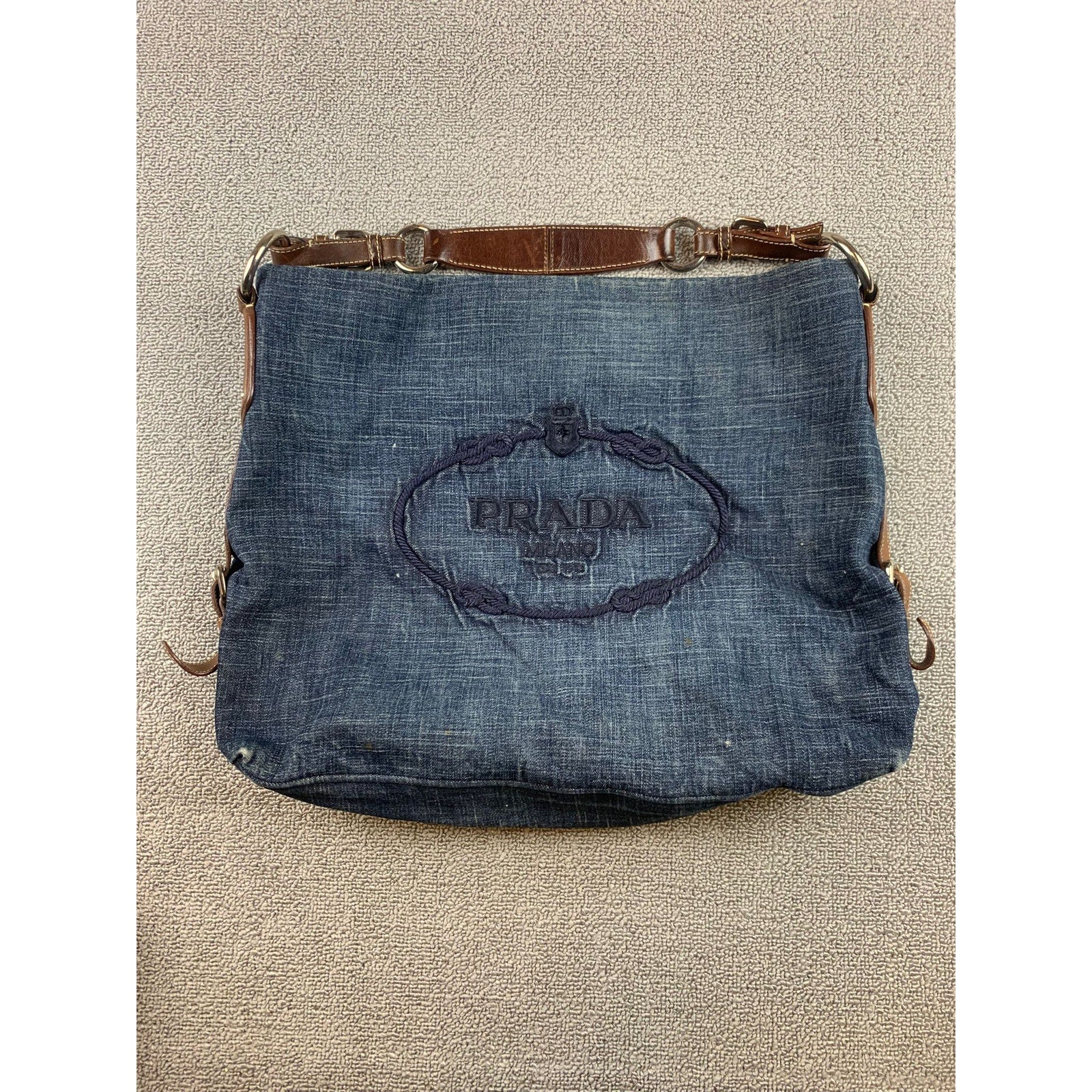 Authentic Prada Milano Blue Women's Washed Denim Logo Hobo Handbag