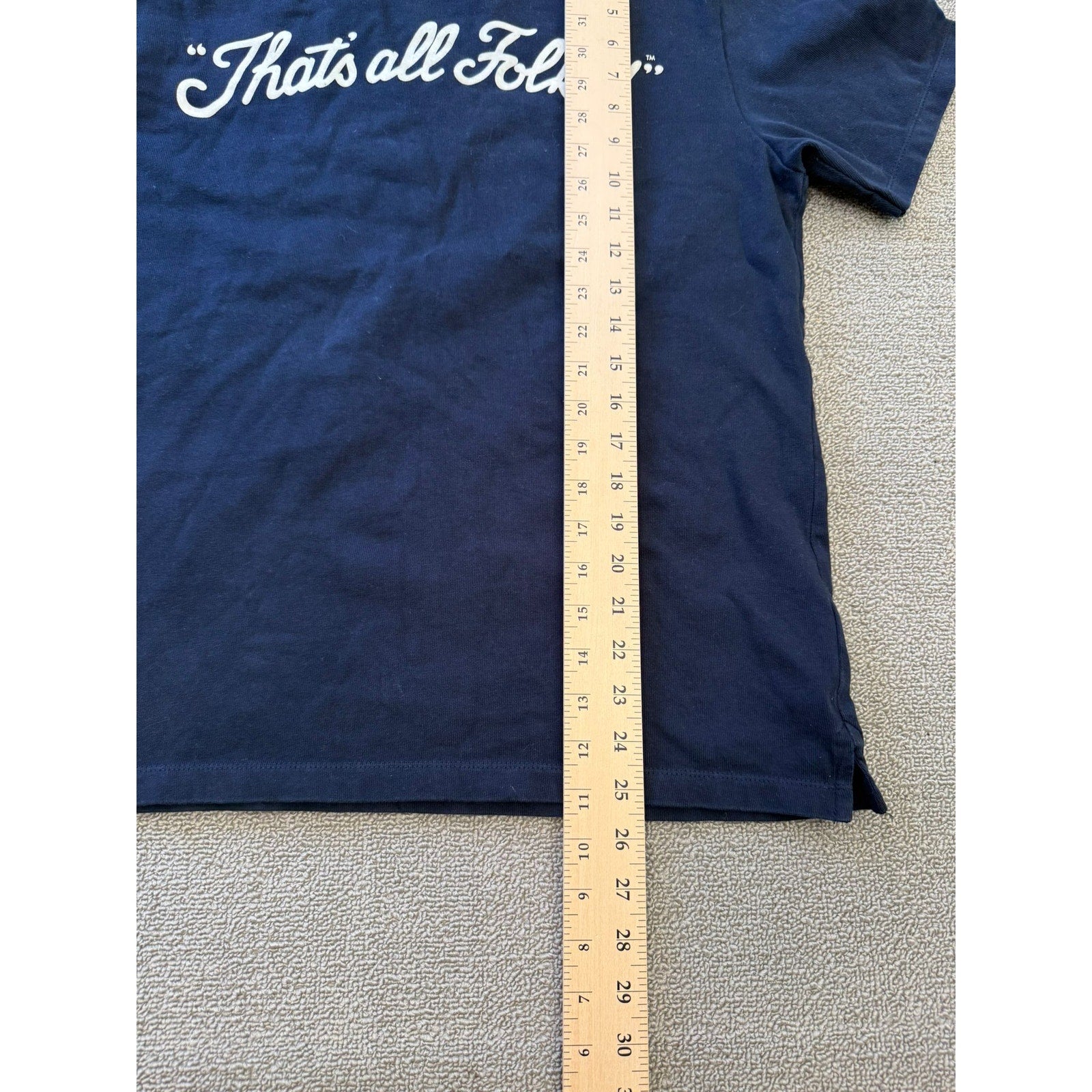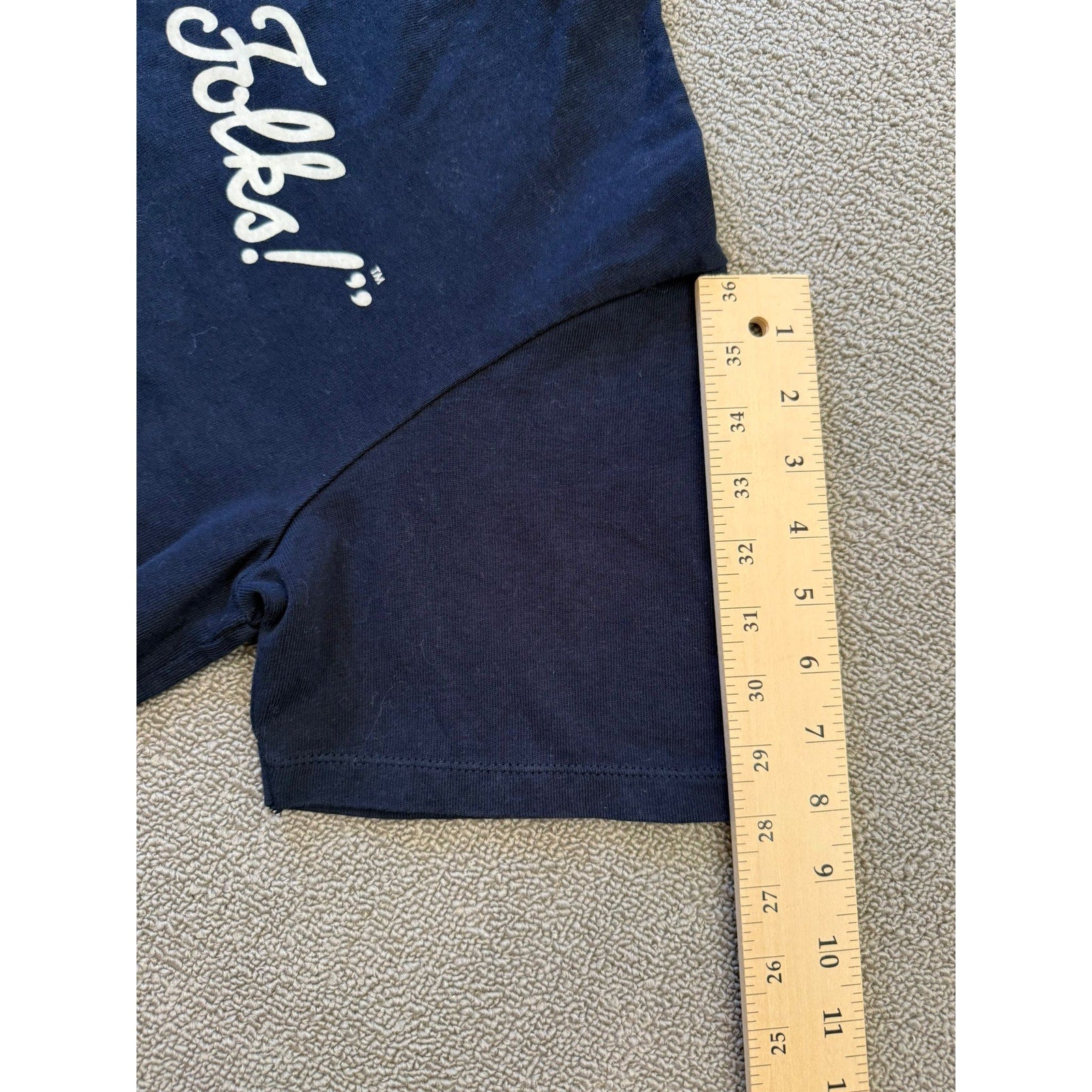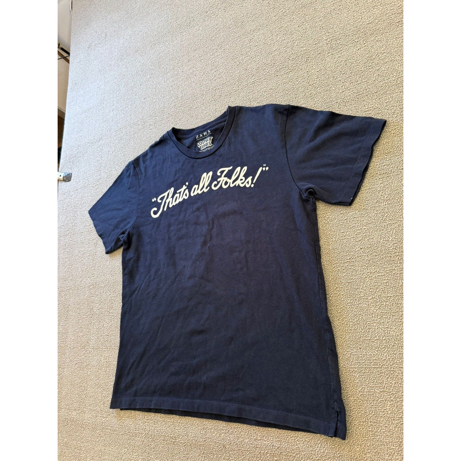 Casual Zara graphic tee featuring heavyweight cotton with white “That’s All Folks!” script—clean, minimalist retro Looney Tunes aesthetic. Fits true to size, classic boyfriend cut; primary color navy blue, lettering contrast white.