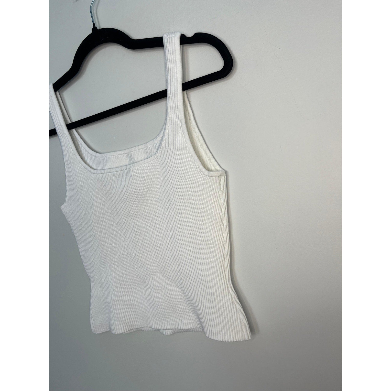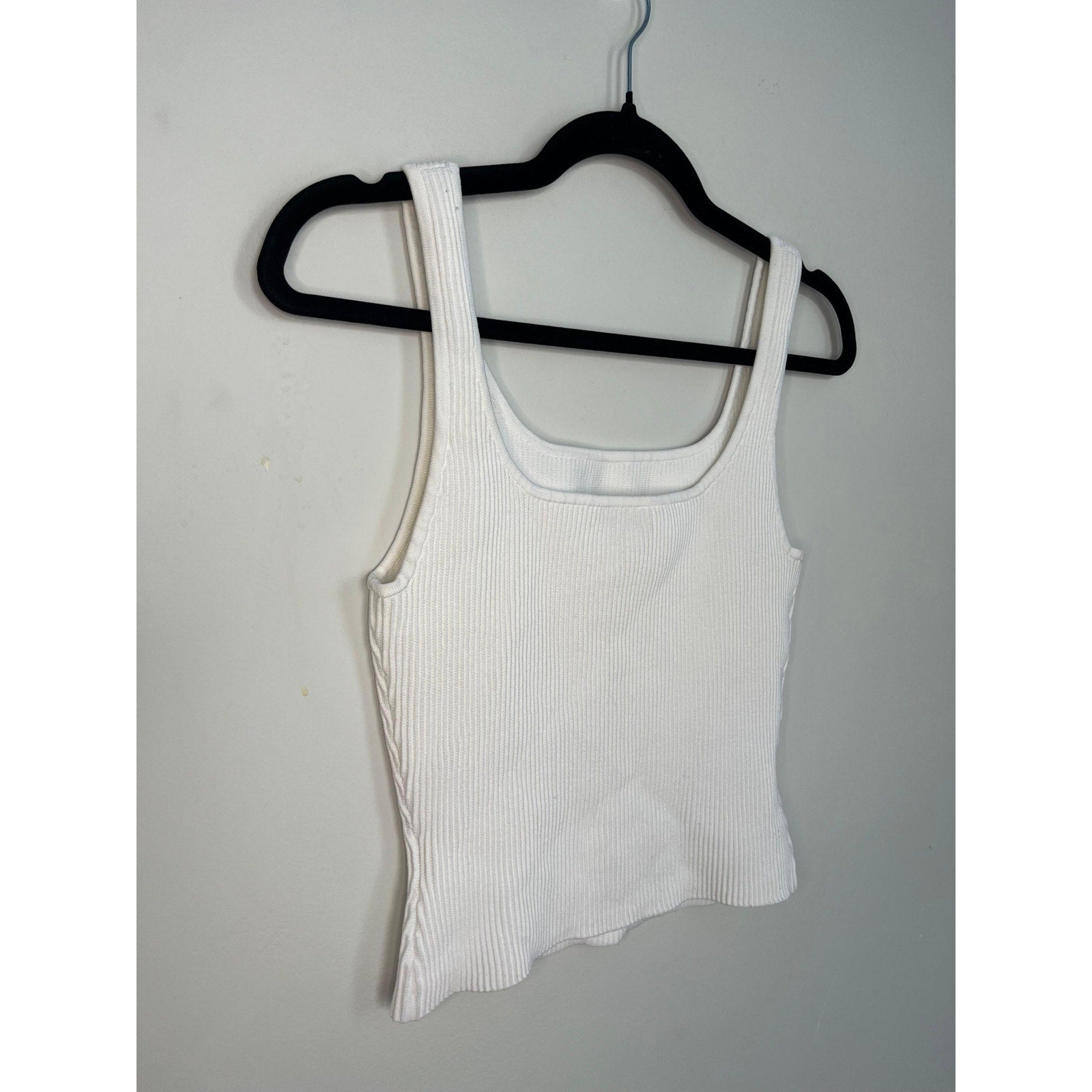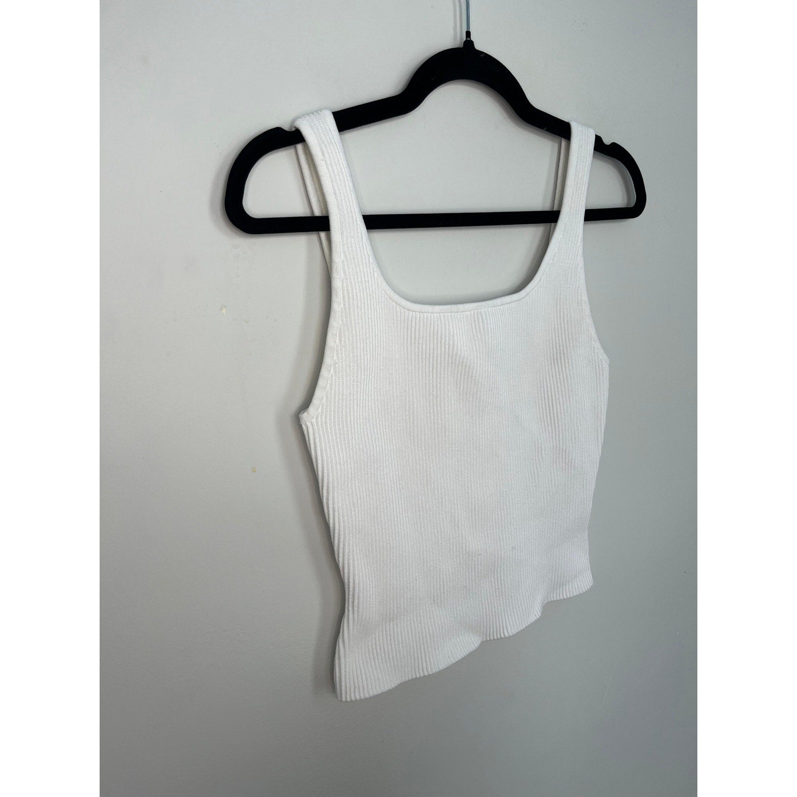 Babaton Ribbed Tank Top Women M White Square Neck Minimalist Stretch