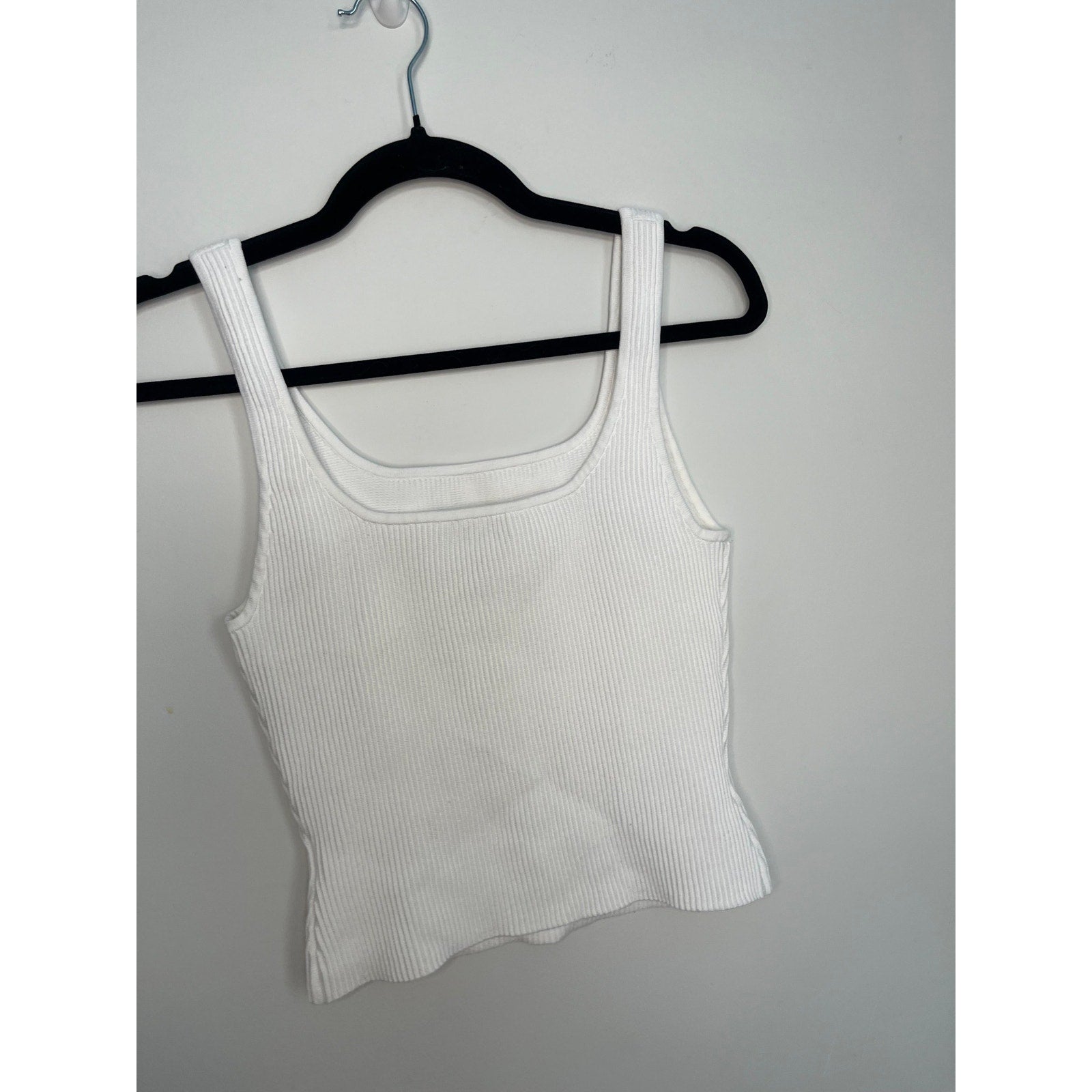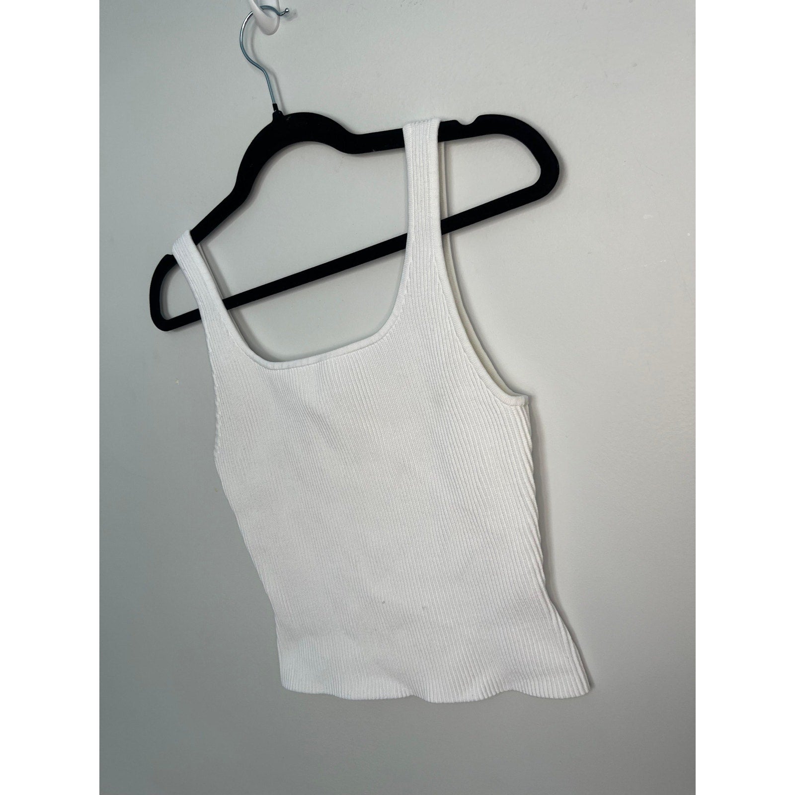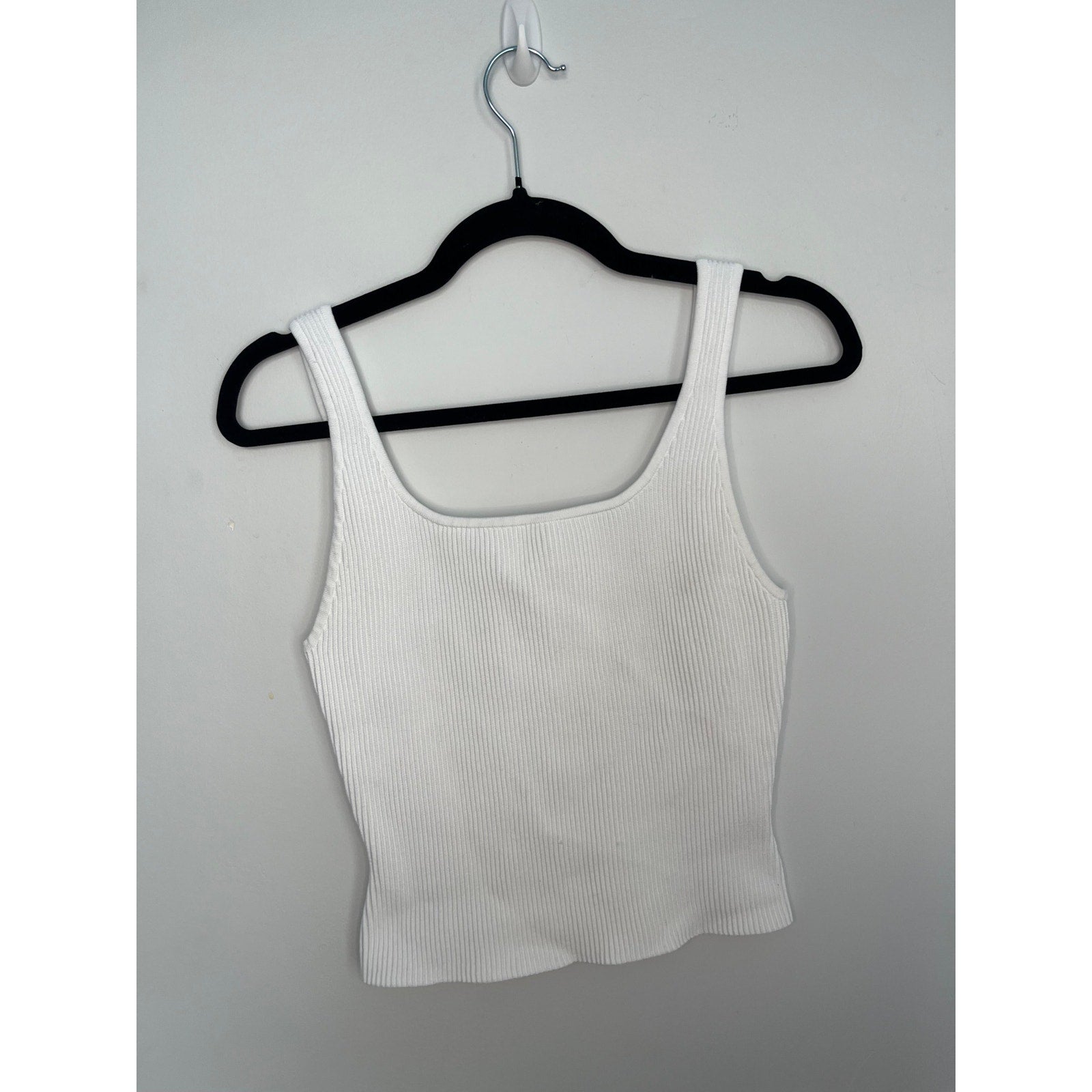 Babaton Ribbed Tank Top Women M White Square Neck Minimalist Stretch