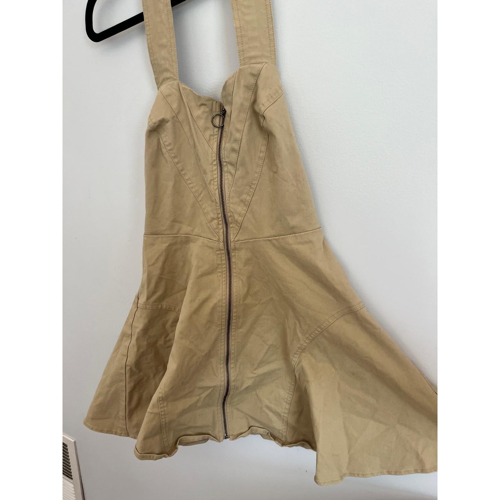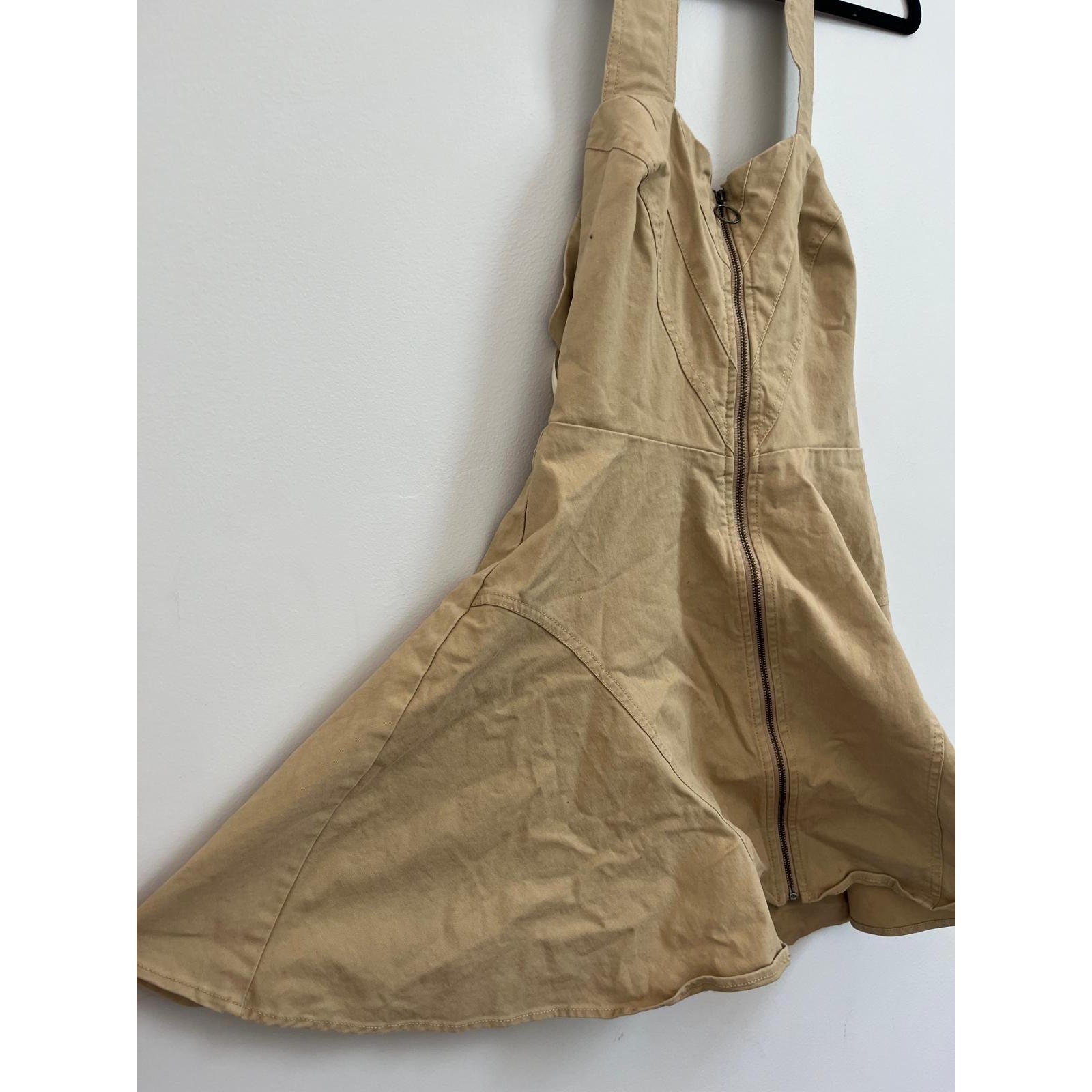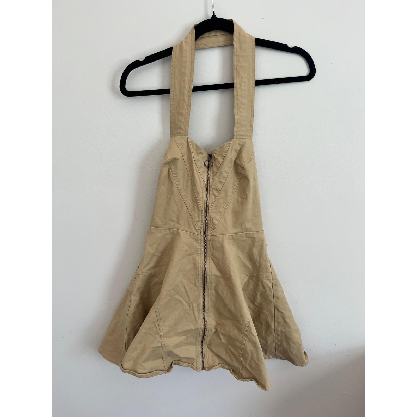 Bardot Halter Mini Dress Women XS Beige Zip Front Flared Cotton