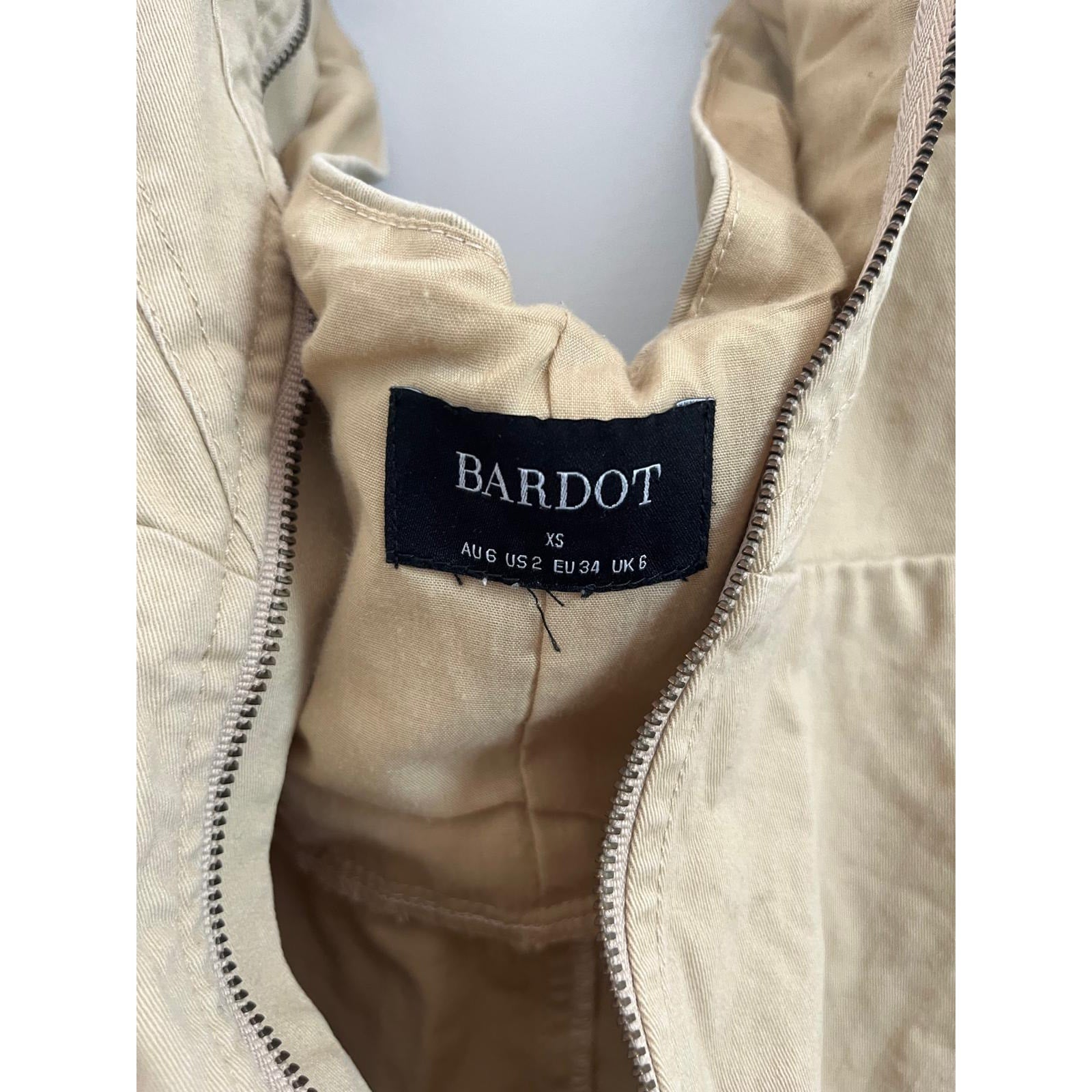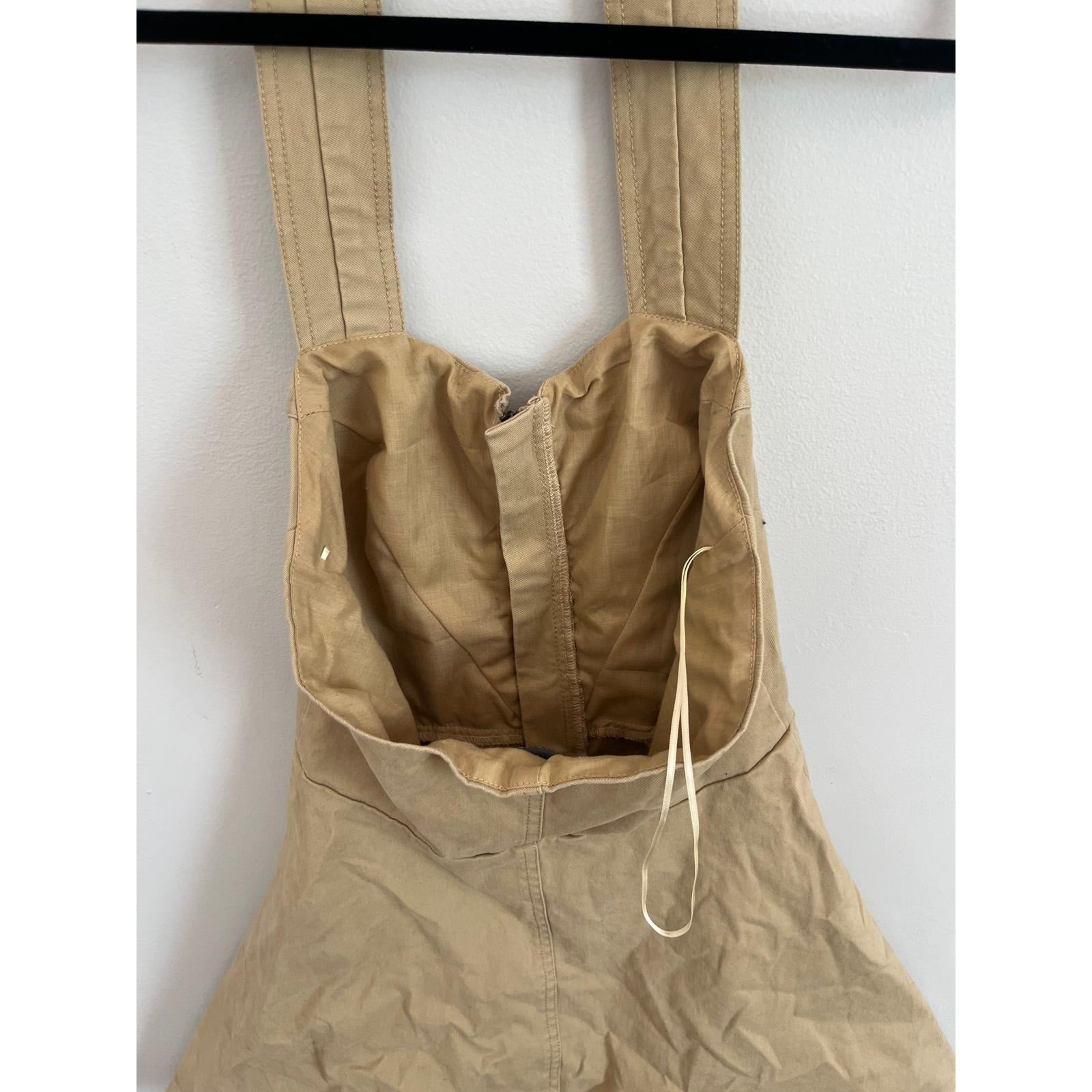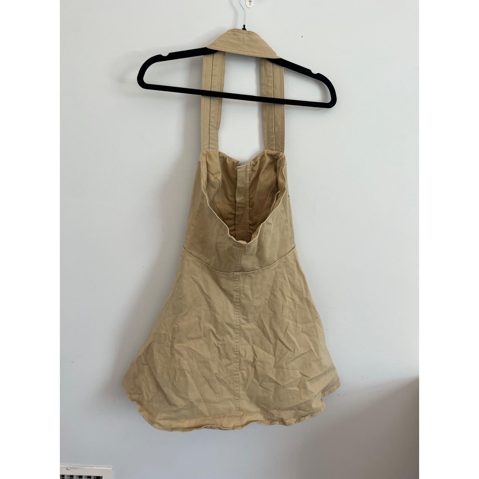 Bardot Halter Mini Dress Women XS Beige Zip Front Flared Cotton