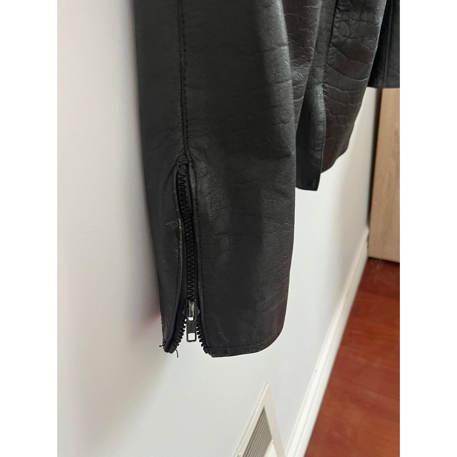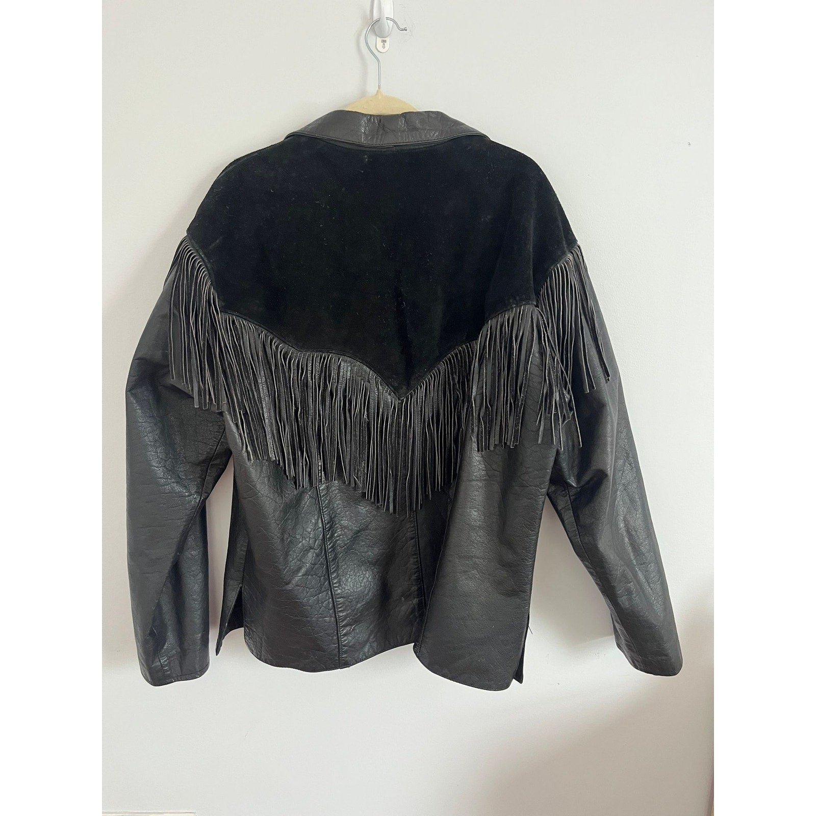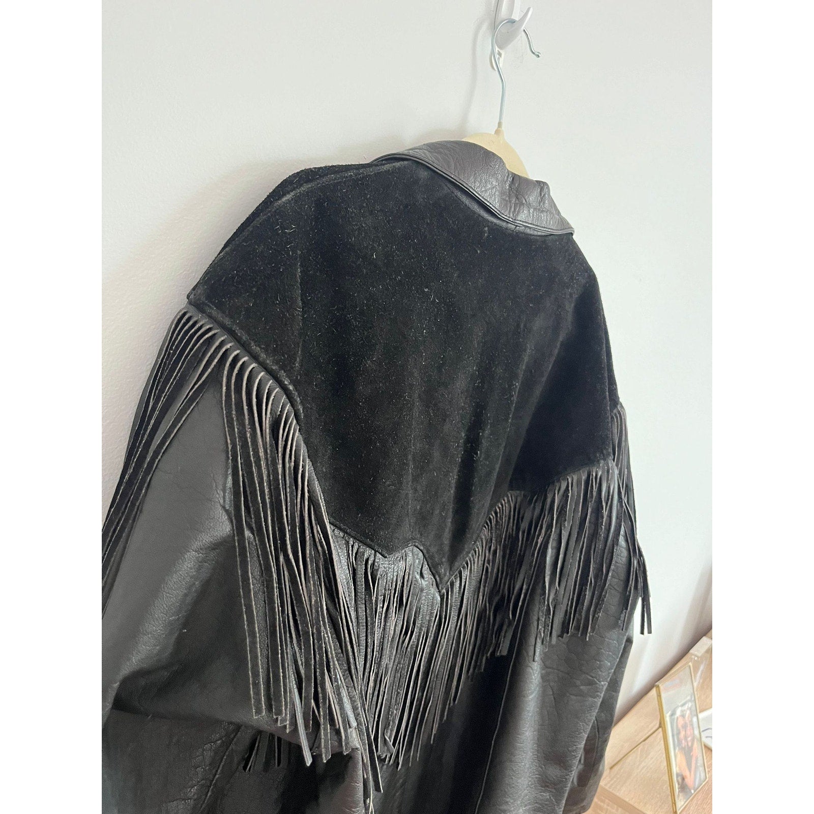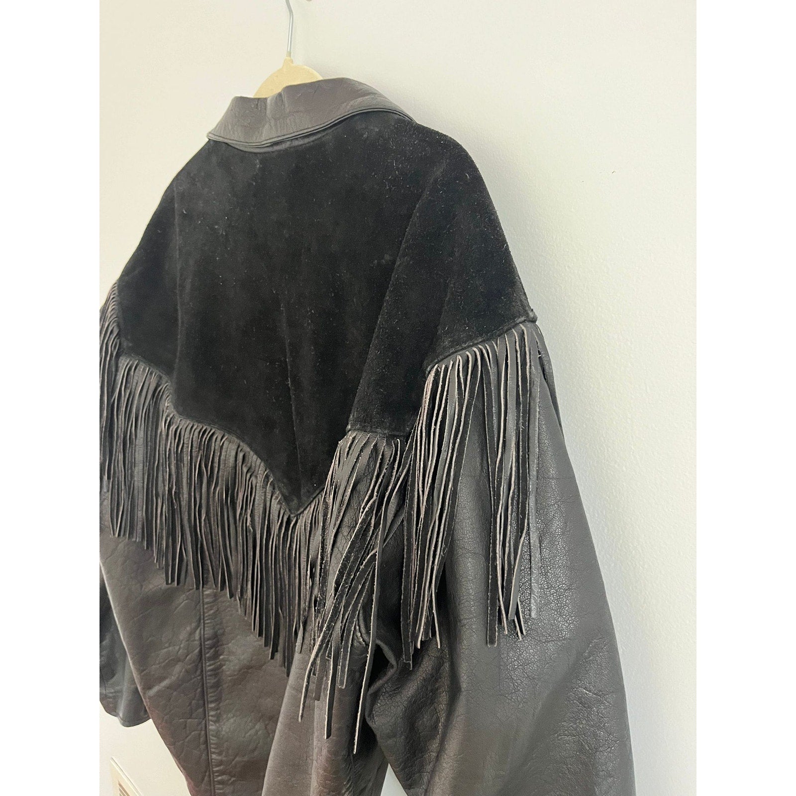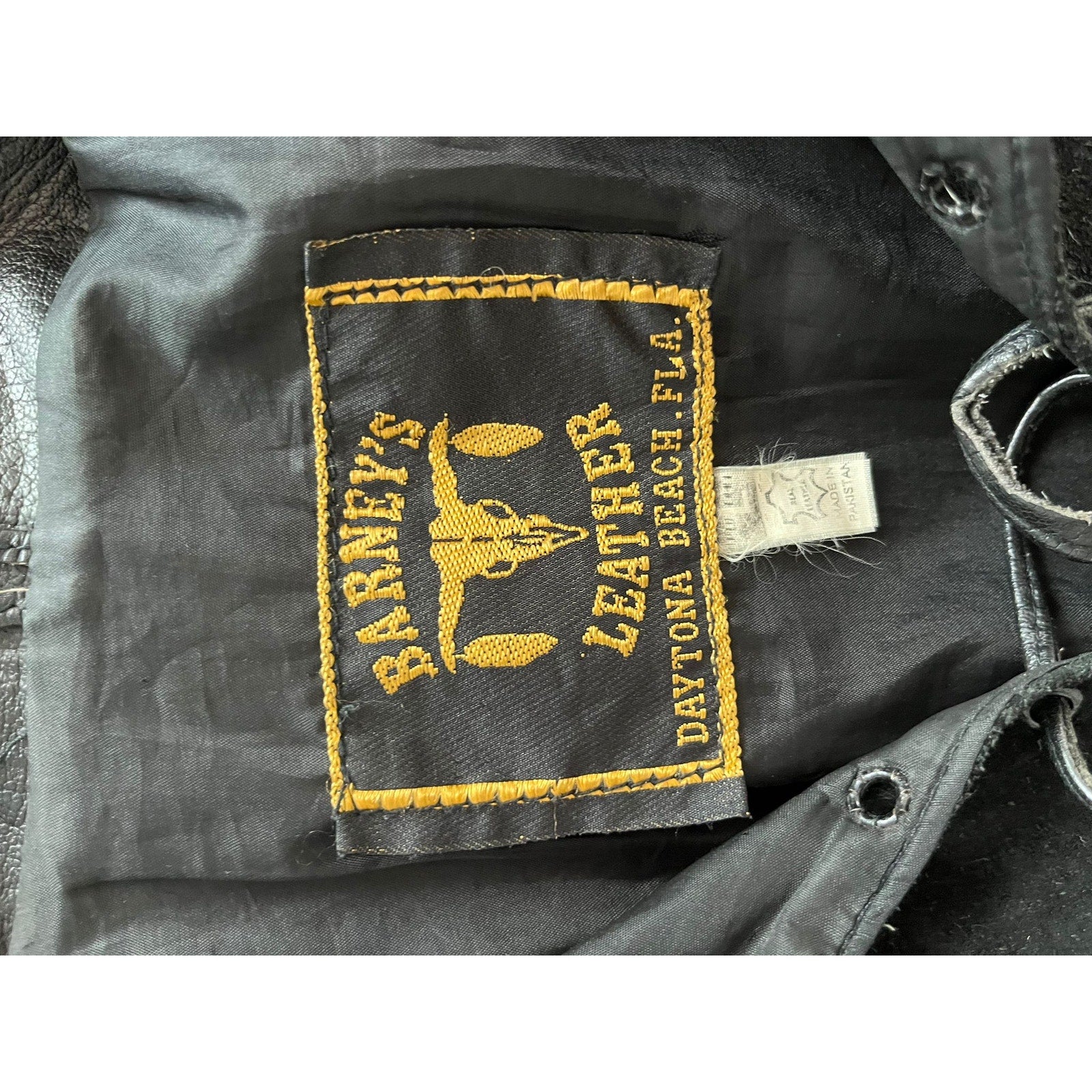 Barney’s Leather Jacket Women Large Black Fringe Western Lace Up USA Made Suede