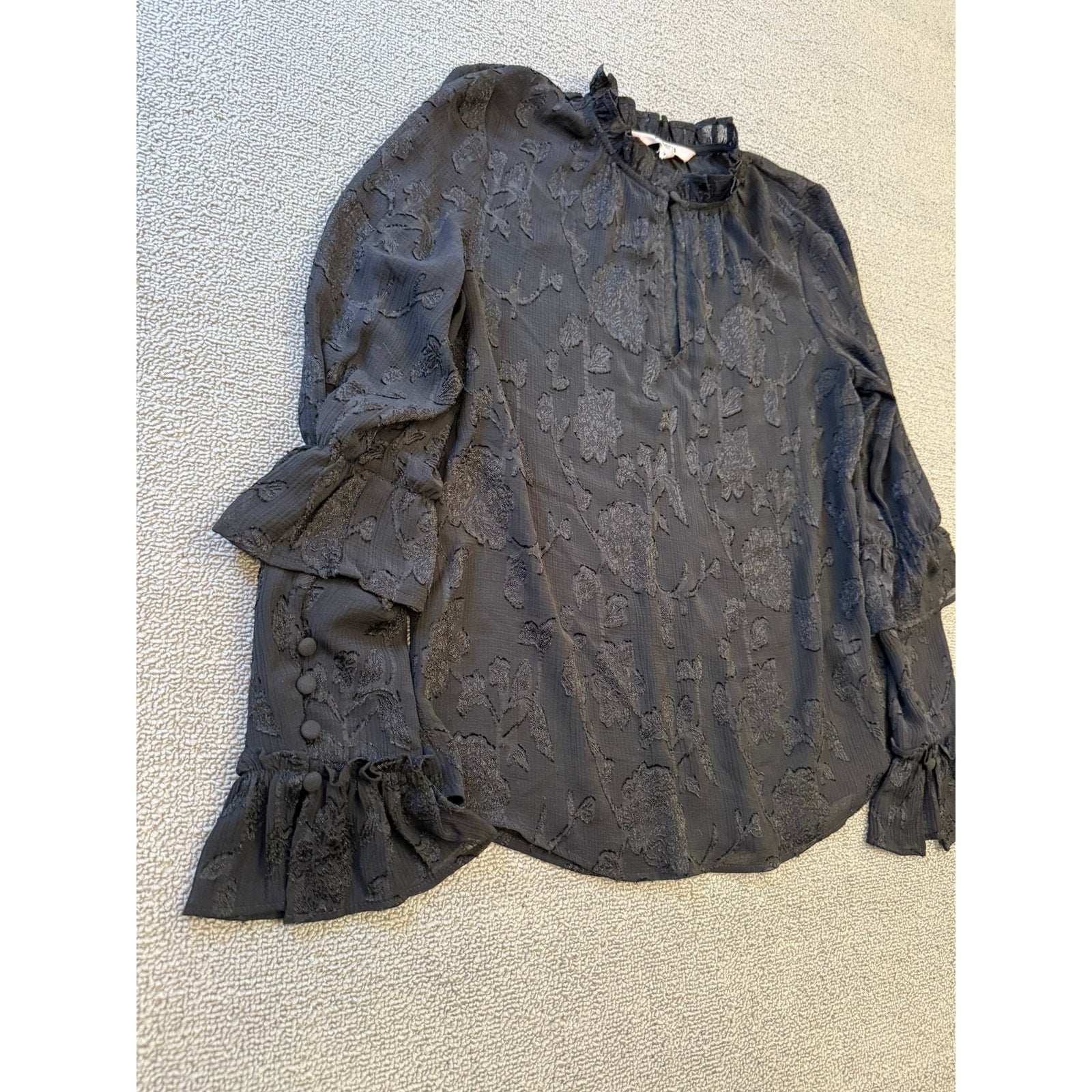 BB Dakota Women Extra Small Black Floral Ruffle Sleeve Blouse