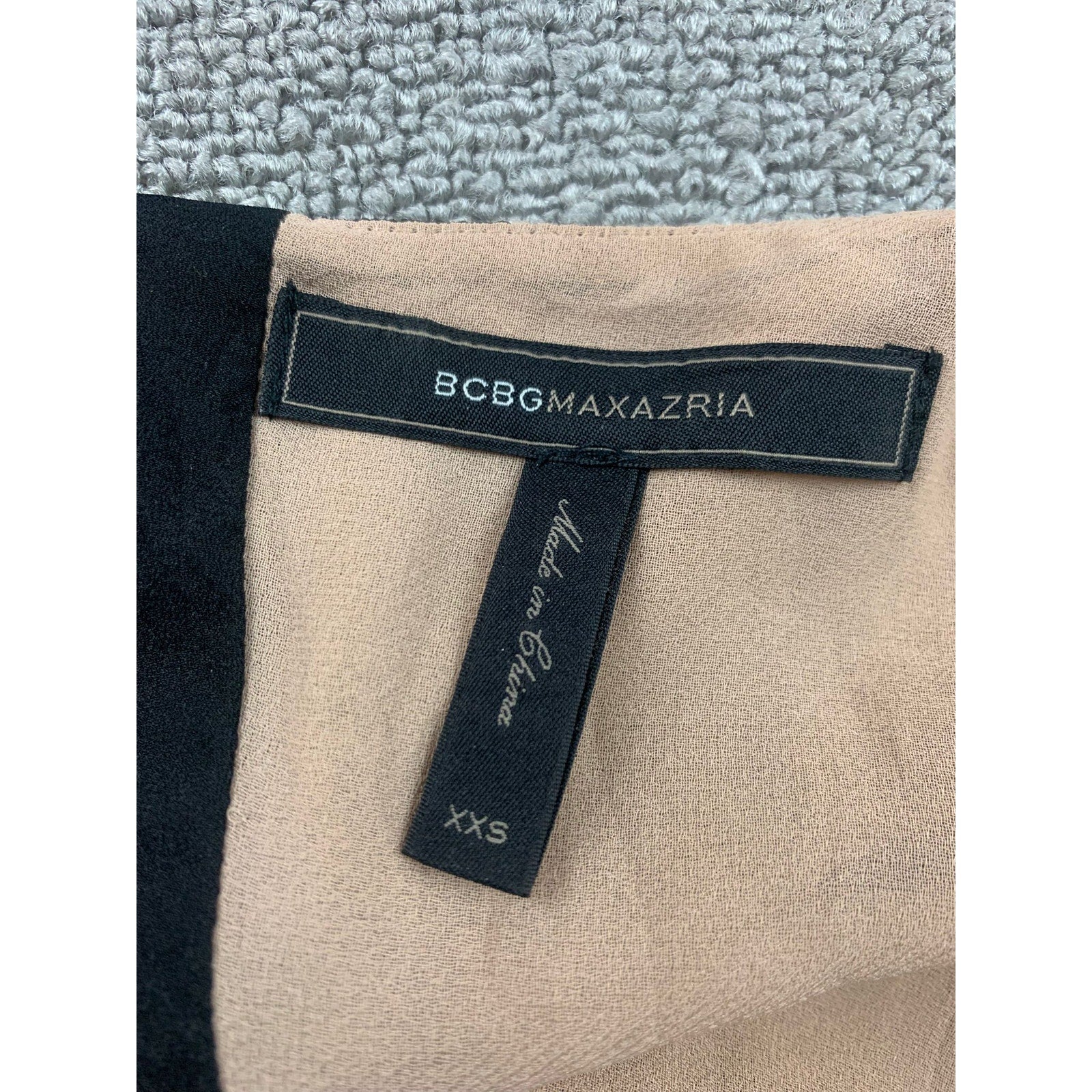 Chic and edgy BCBGMAXAZRIA sleeveless top featuring black faux leather panels, sheer lace detailing, and nude mesh contrast. With a back zip closure and fitted silhouette, this piece combines elegance with a modern twist. Perfect for a night out or layered under a blazer.