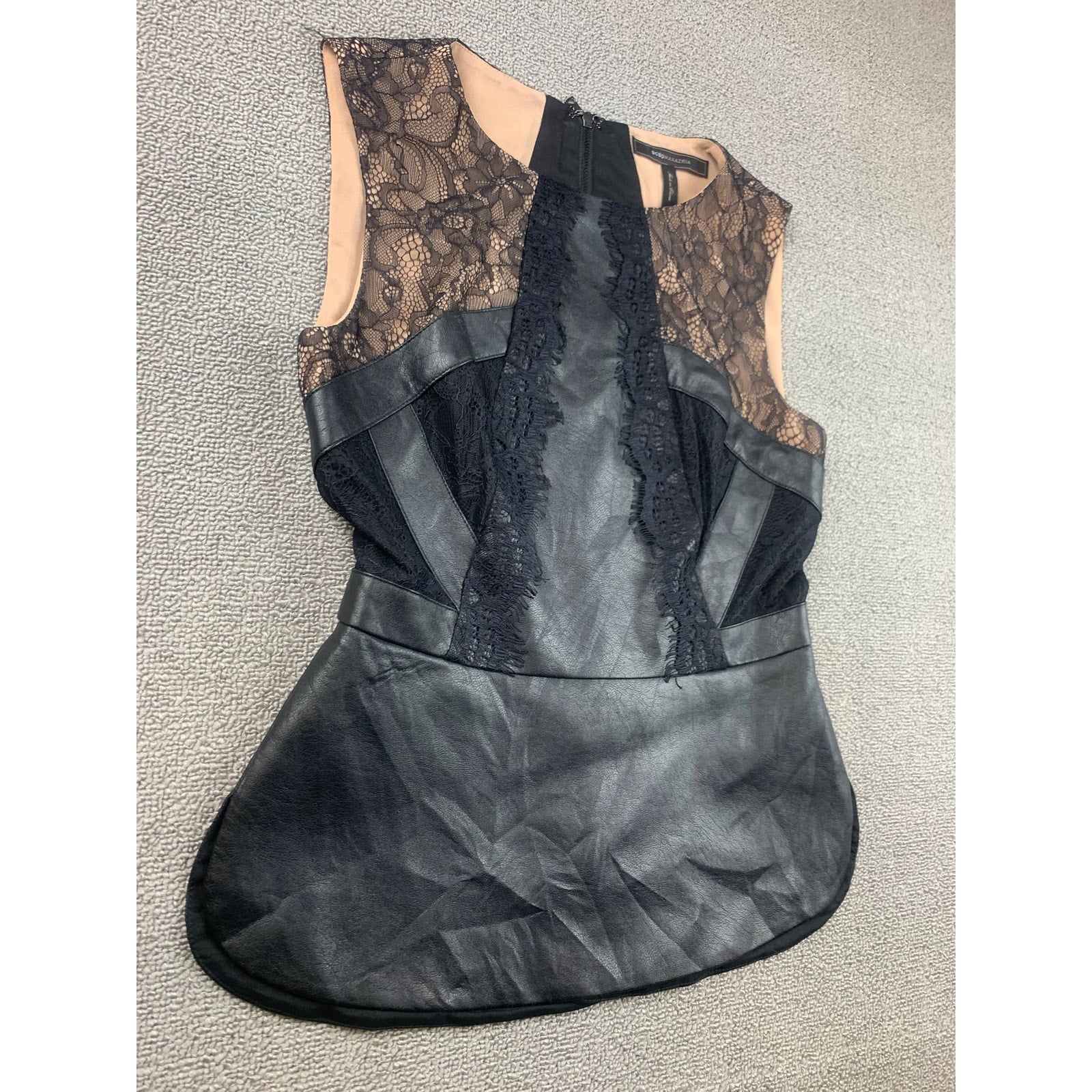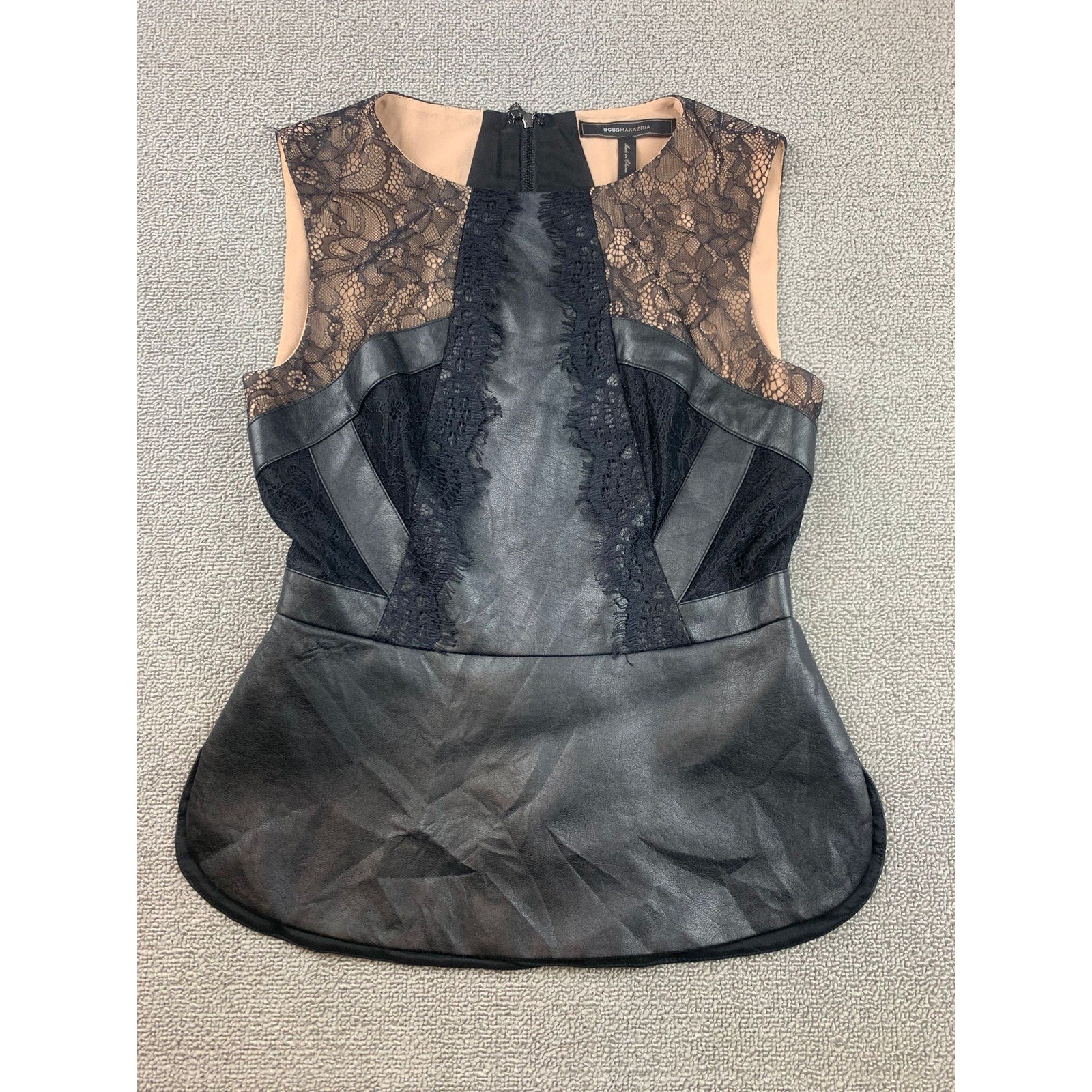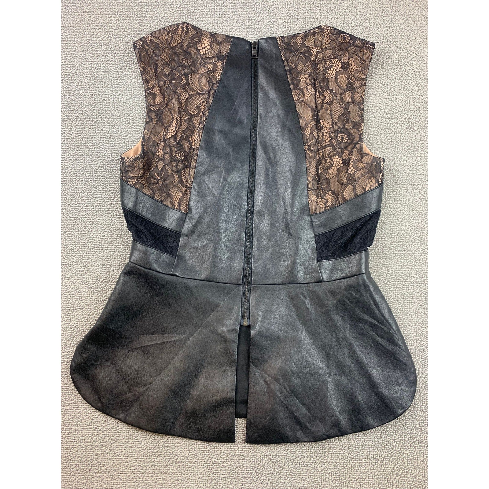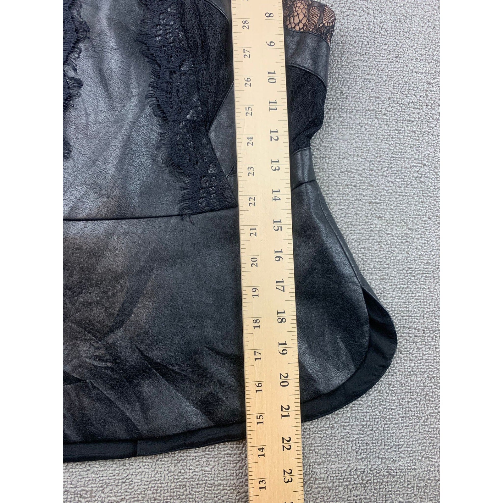 BCBGMAXAZRIA Women XXS Faux Leather Black Lace Peplum Top