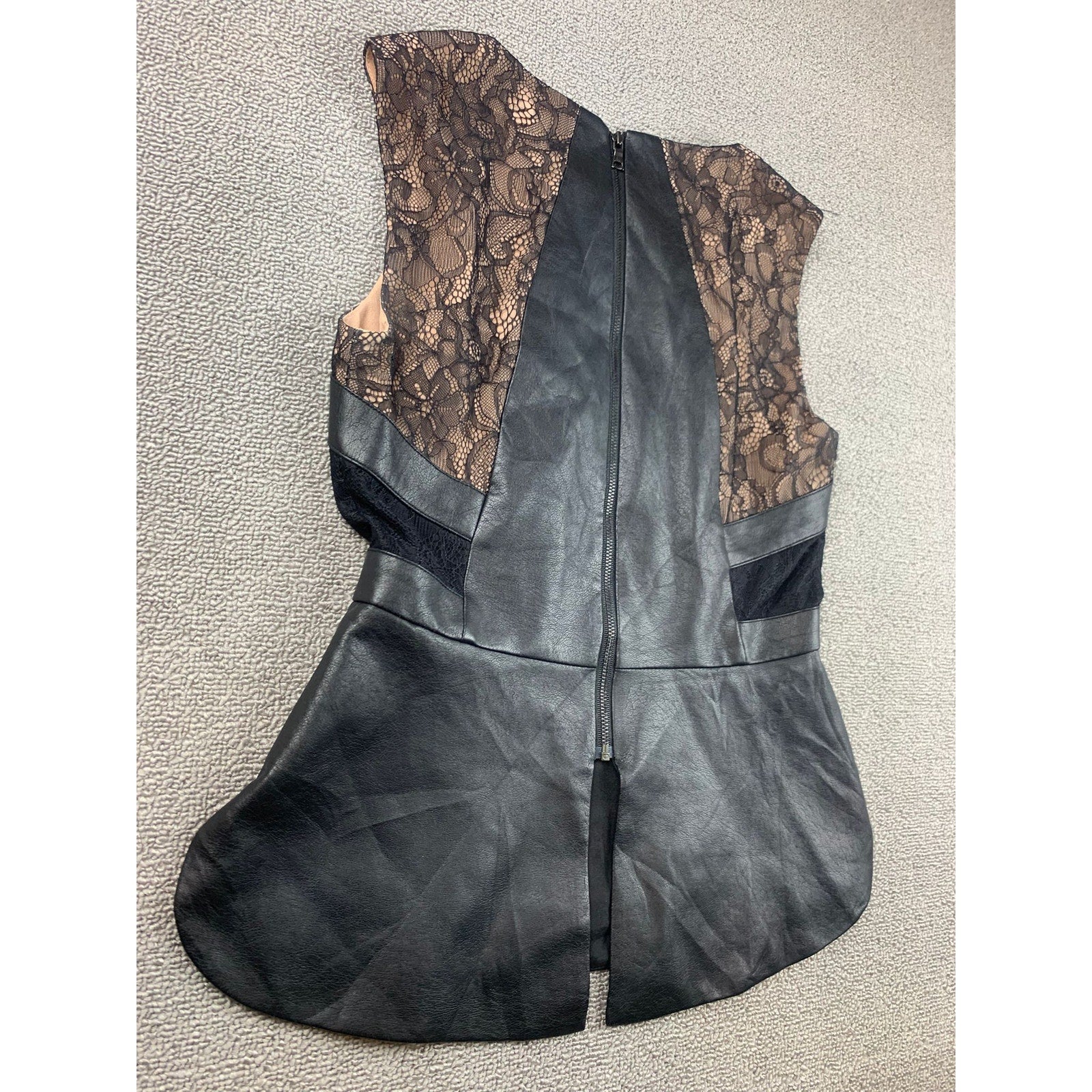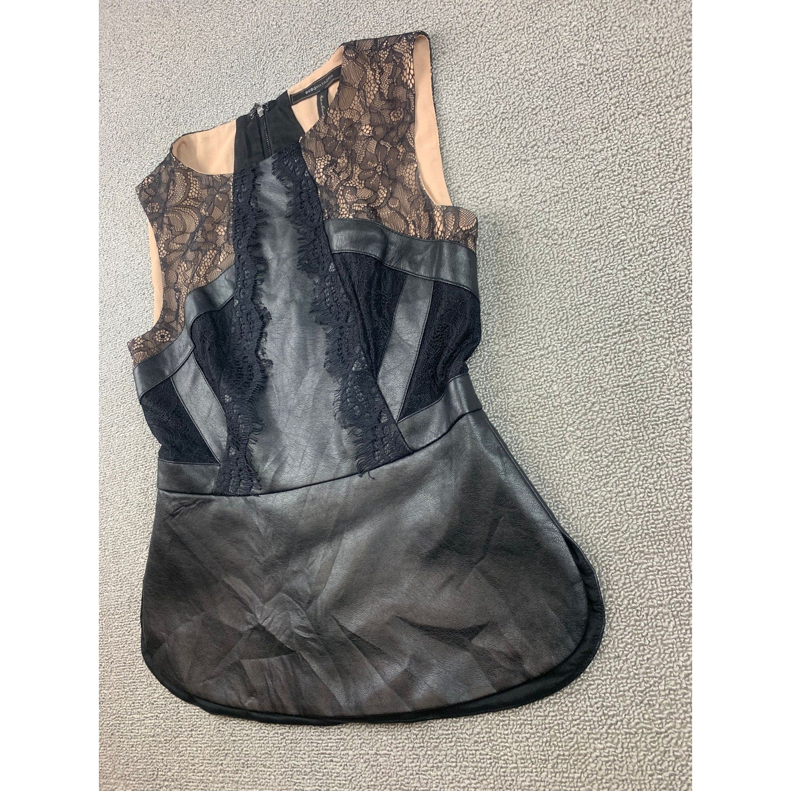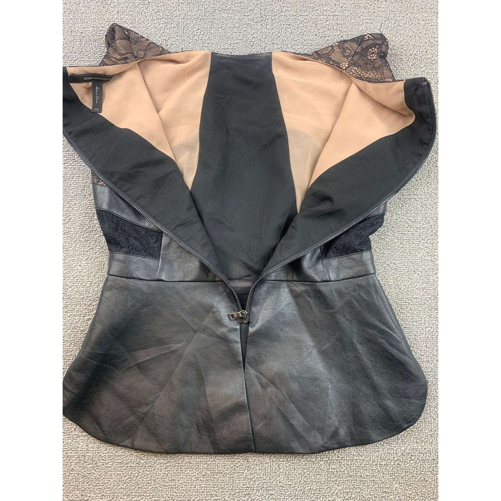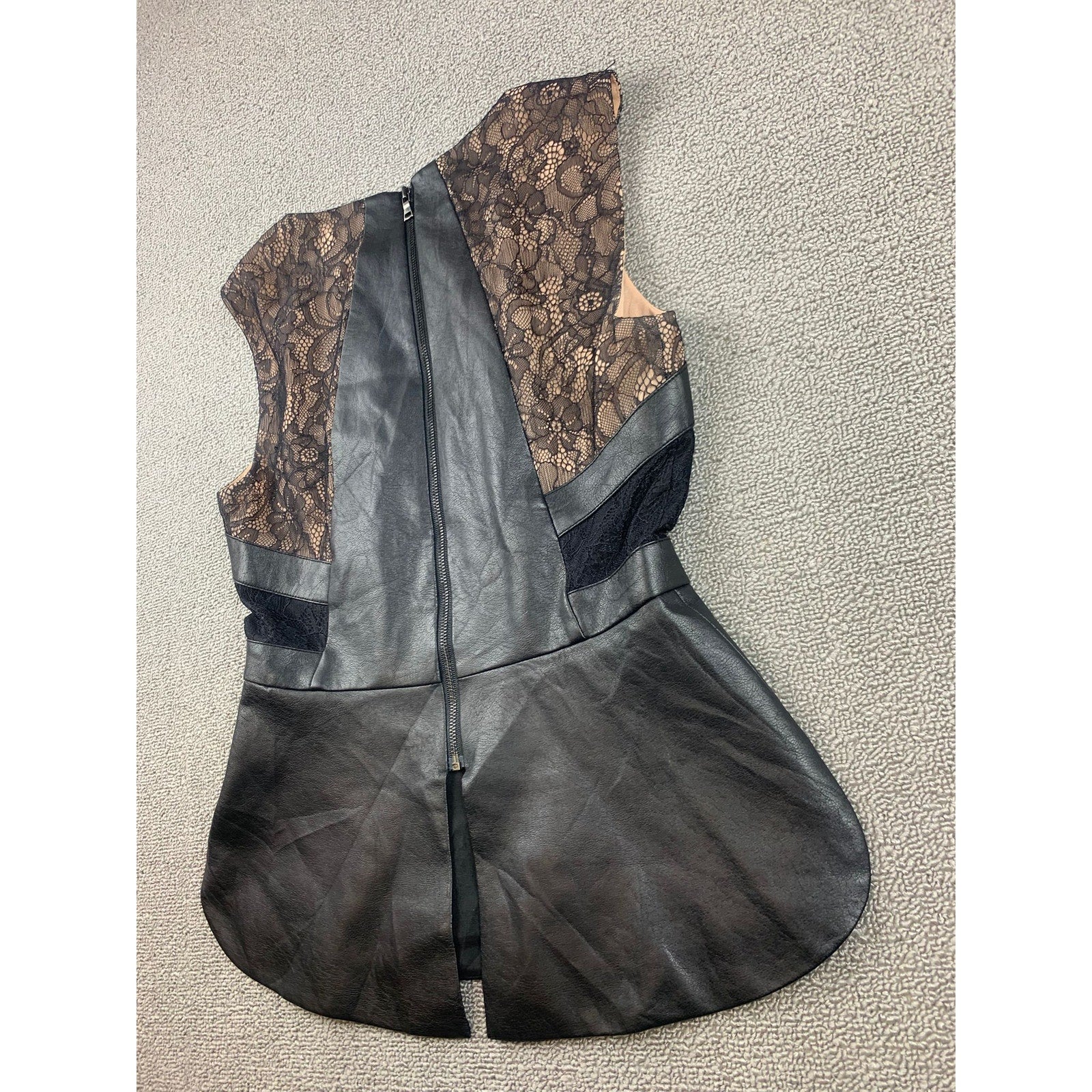 BCBGMAXAZRIA Women XXS Faux Leather Black Lace Peplum Top