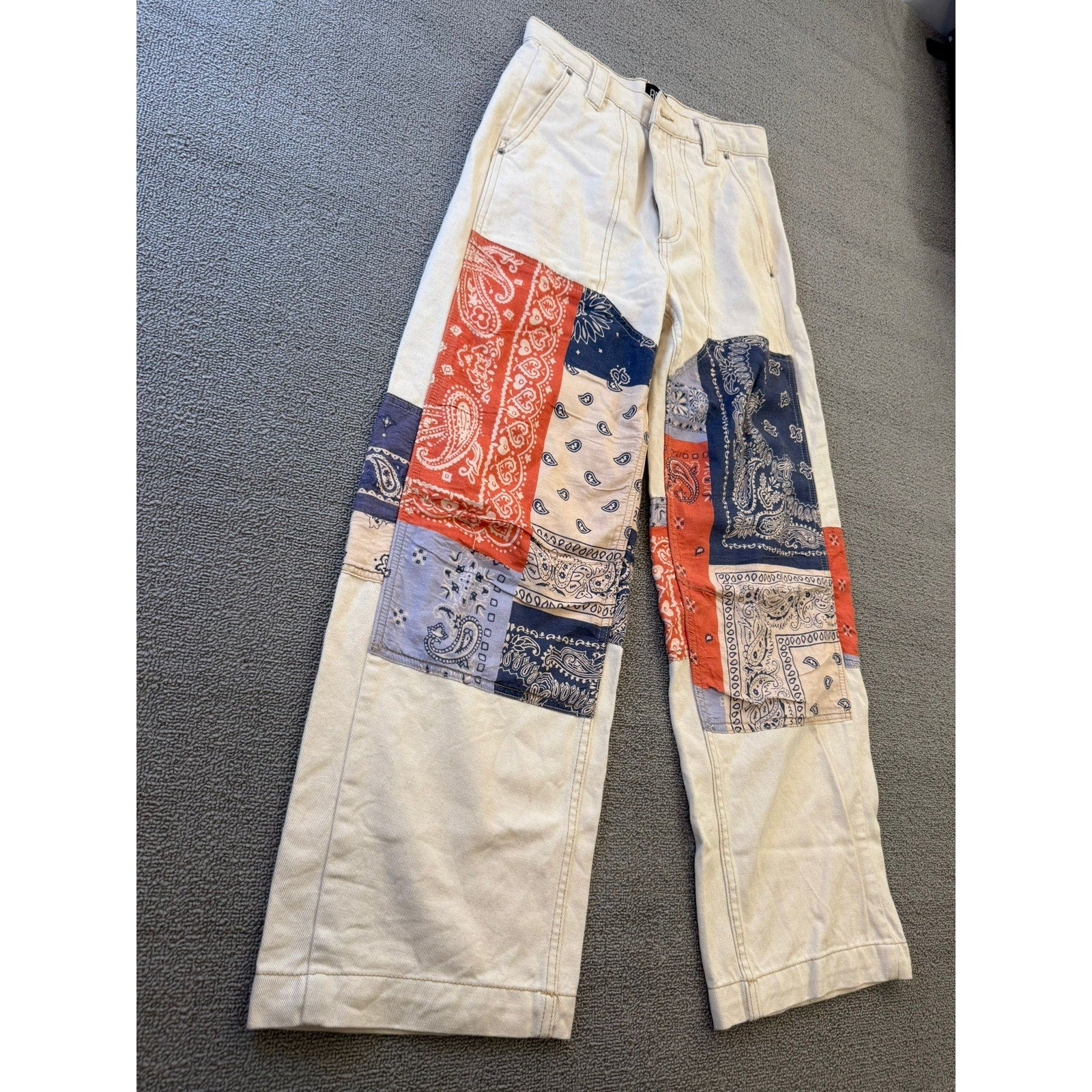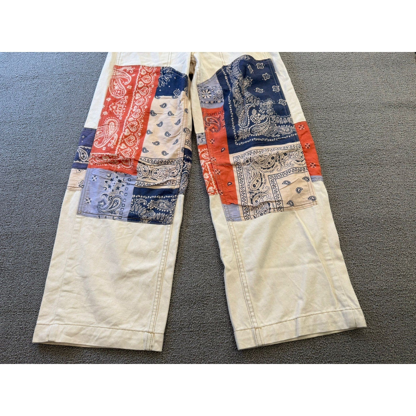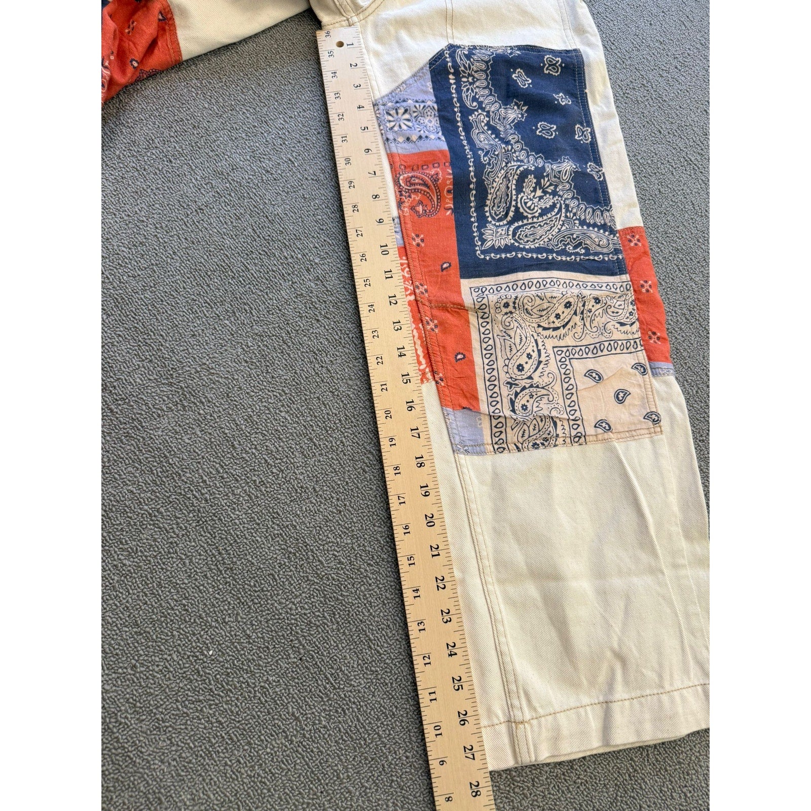BDG Urban Outfitters Women's Size 26 White Denim Patchwork Bandana Wide Leg Jean