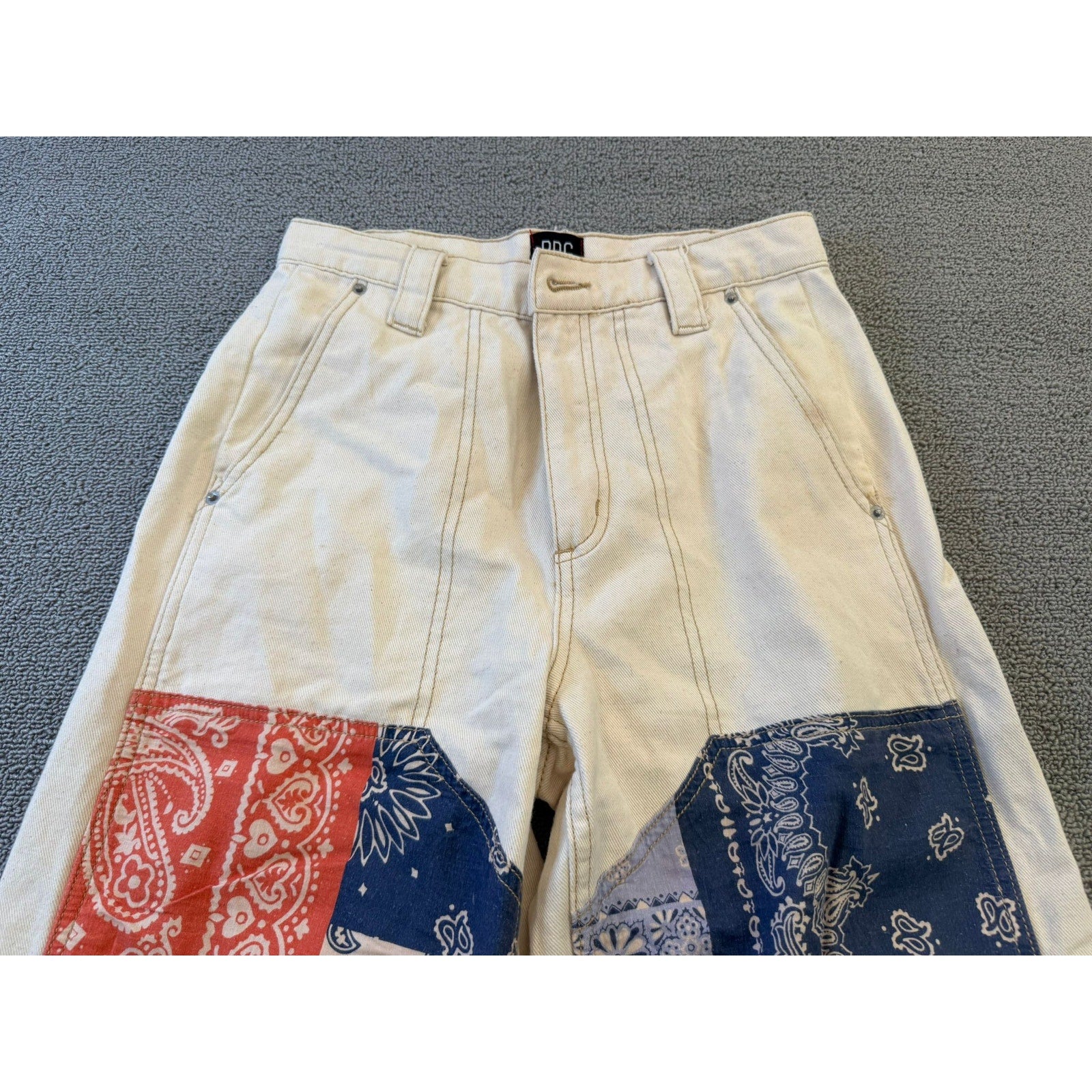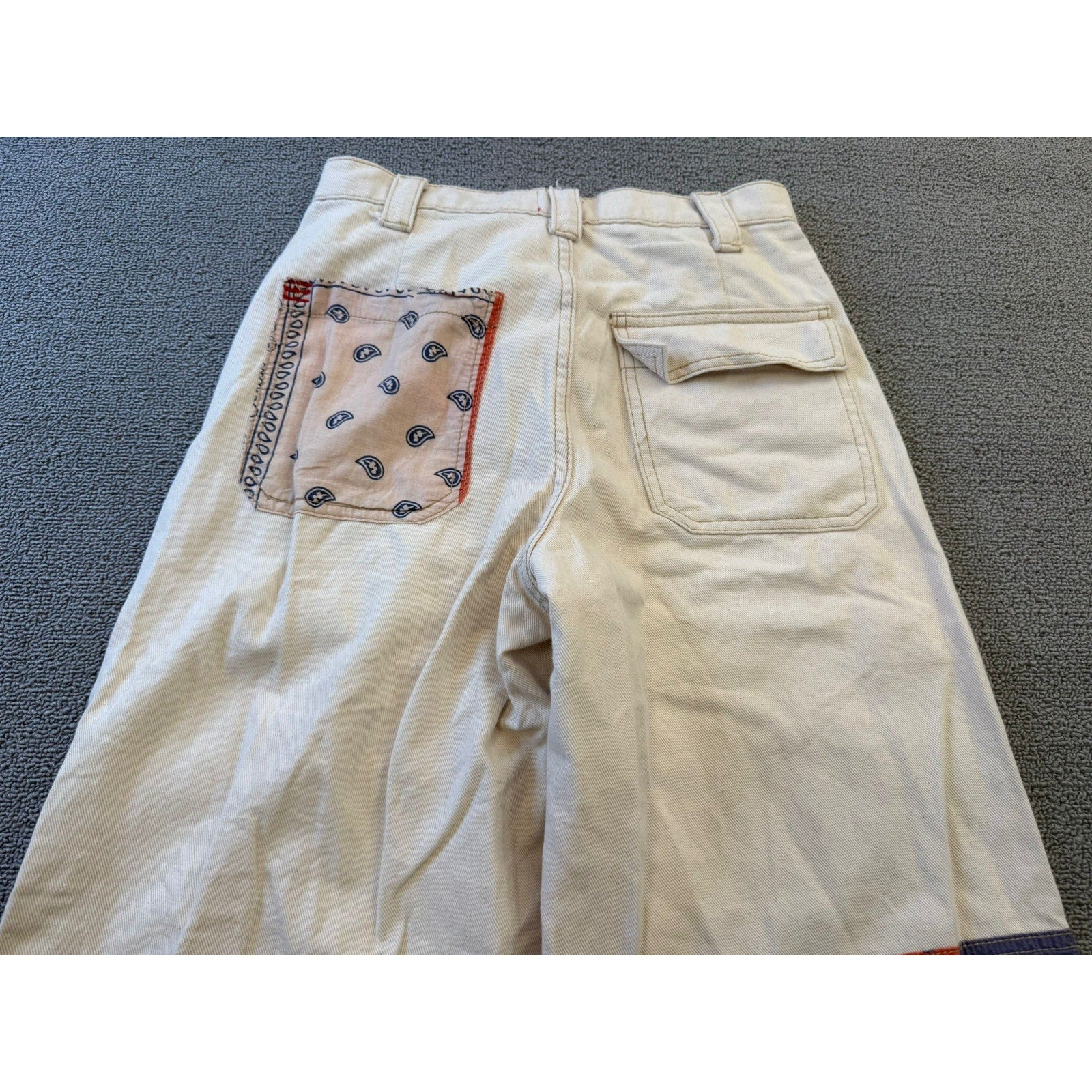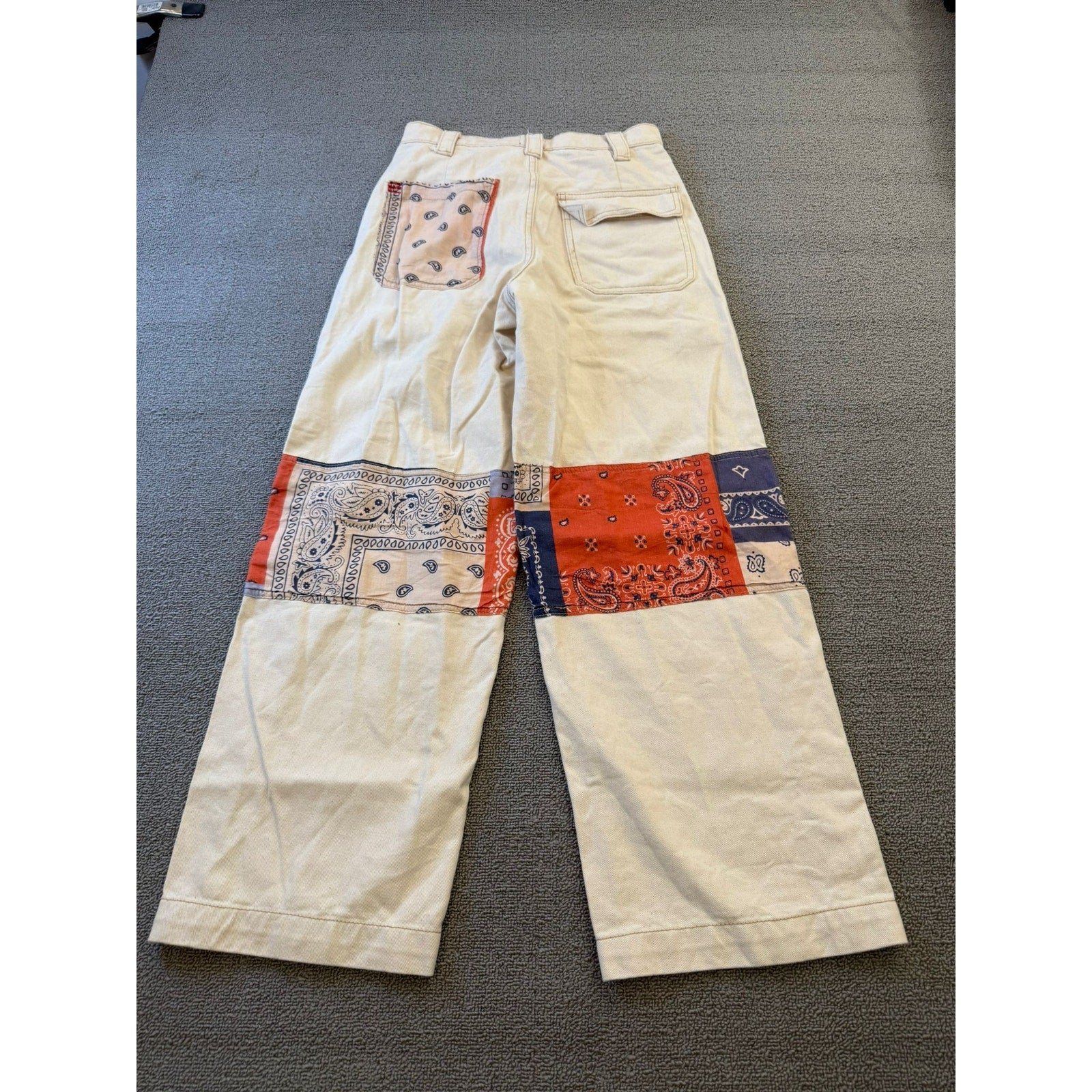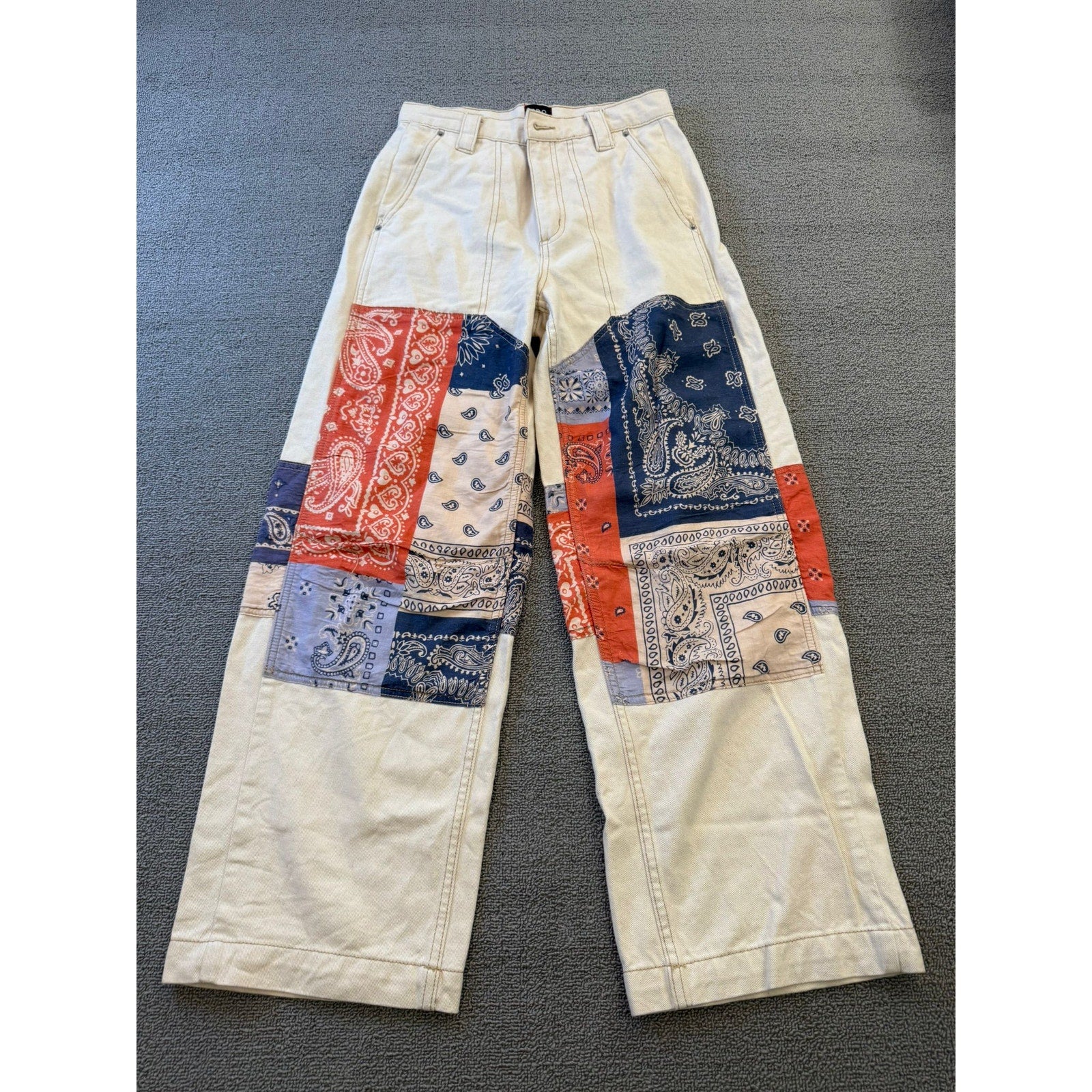 BDG Urban Outfitters Women's Size 26 White Denim Patchwork Bandana Wide Leg Jean