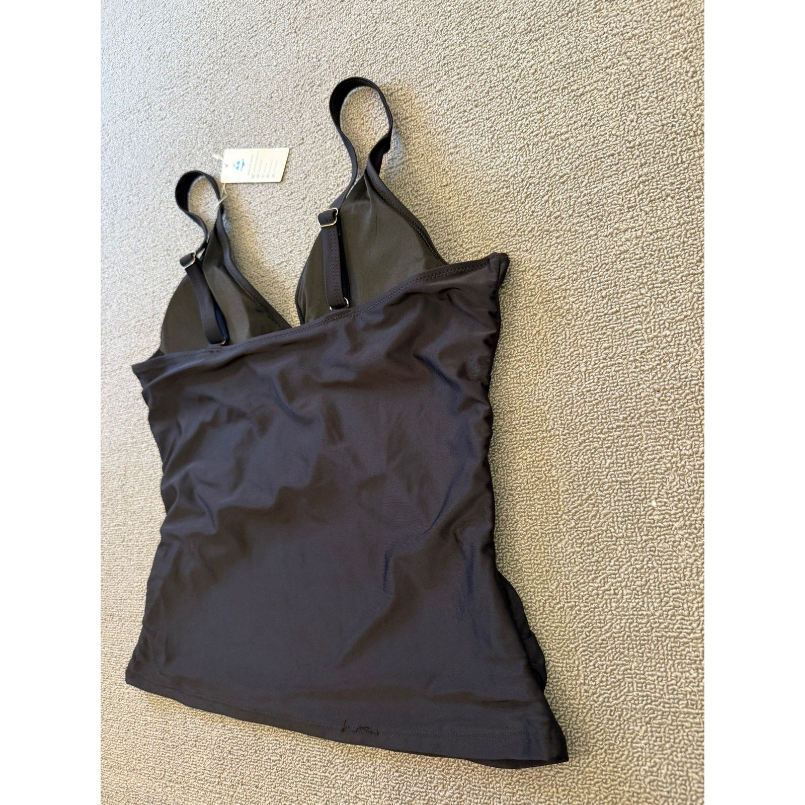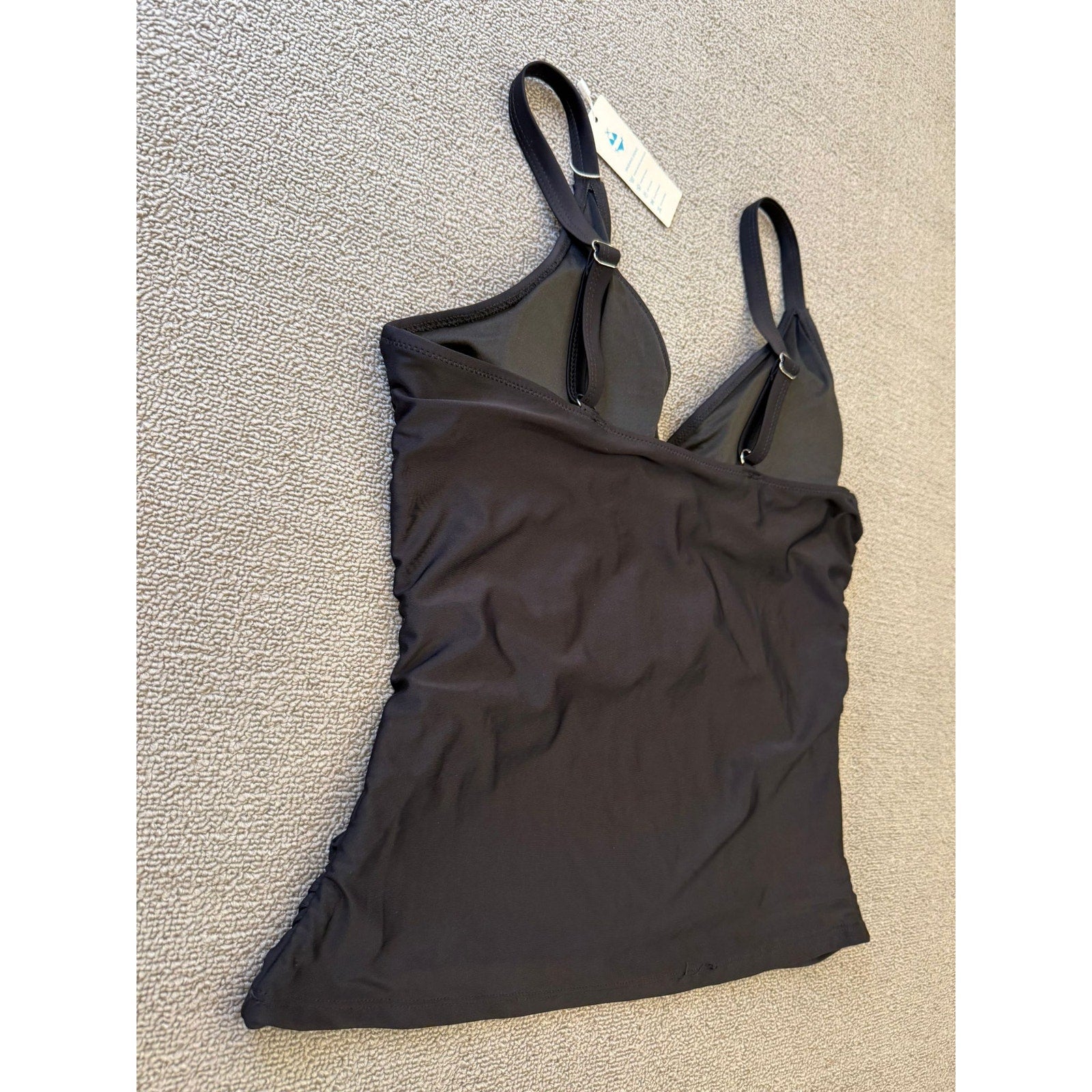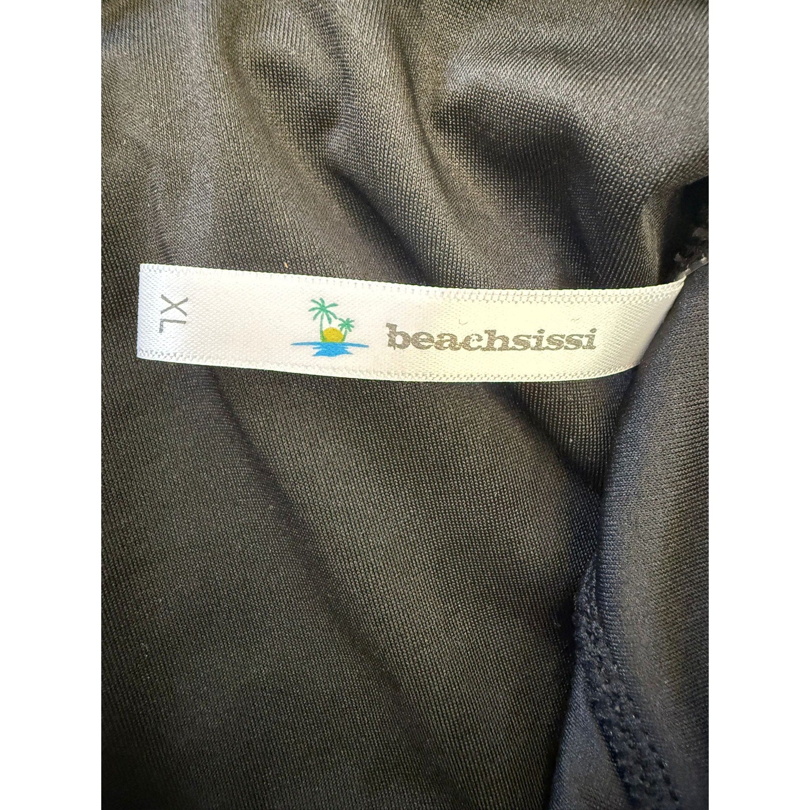 Black tankini top by Beachsissi in size XL, featuring a ruched front with subtle twist detail and tummy control panel for flattering fit—sleek and practical for pool or beachwear.
