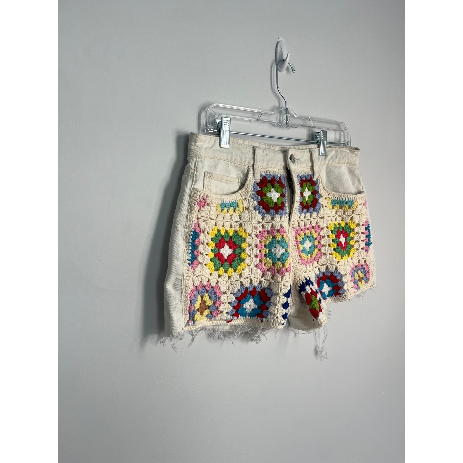 BlankNYC Crochet Patch Shorts Women 28 Colorful Knit Festival Boho