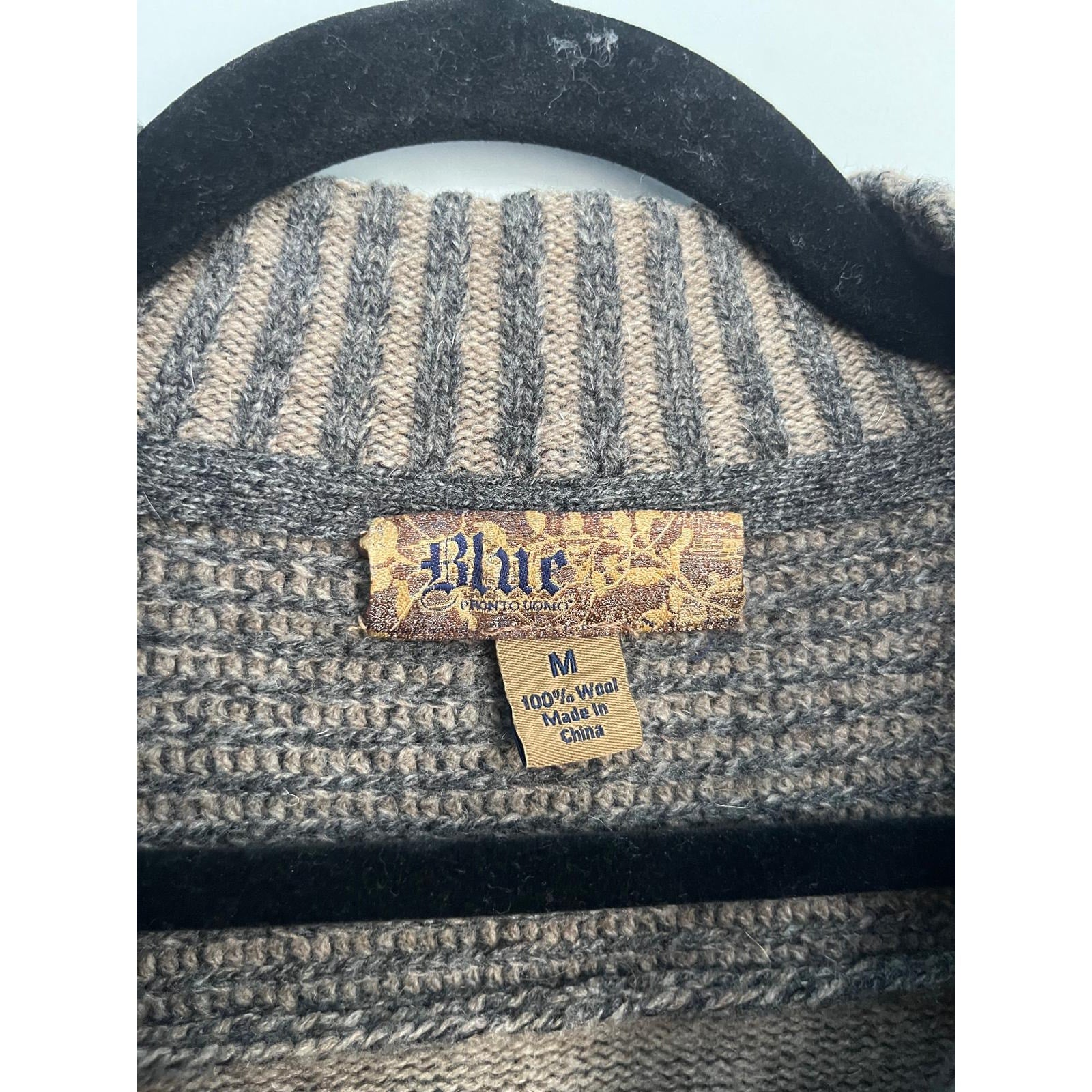Blue by Pronto Uomo Wool Sweater Men M Gray Zip Neck Ribbed Trim Pullover