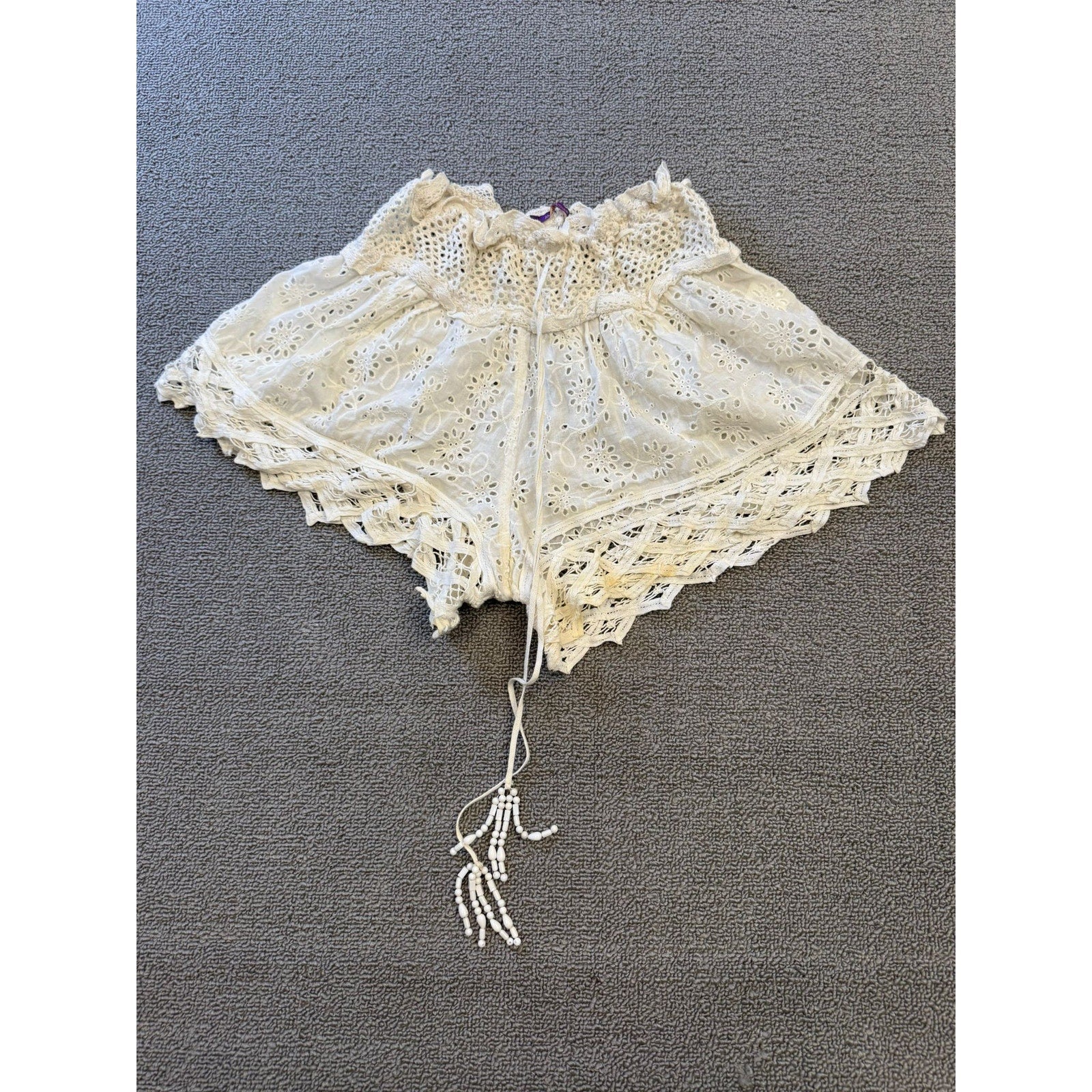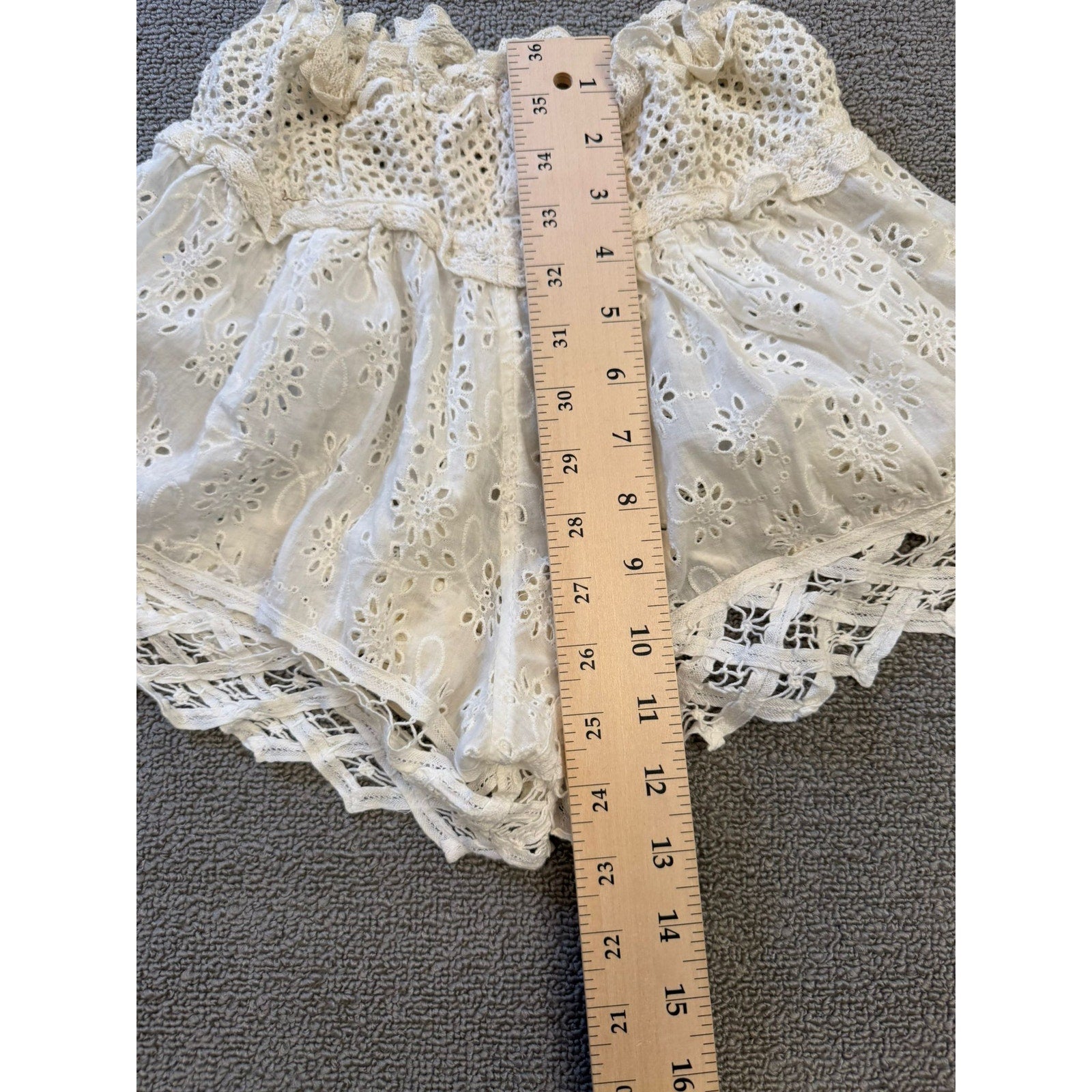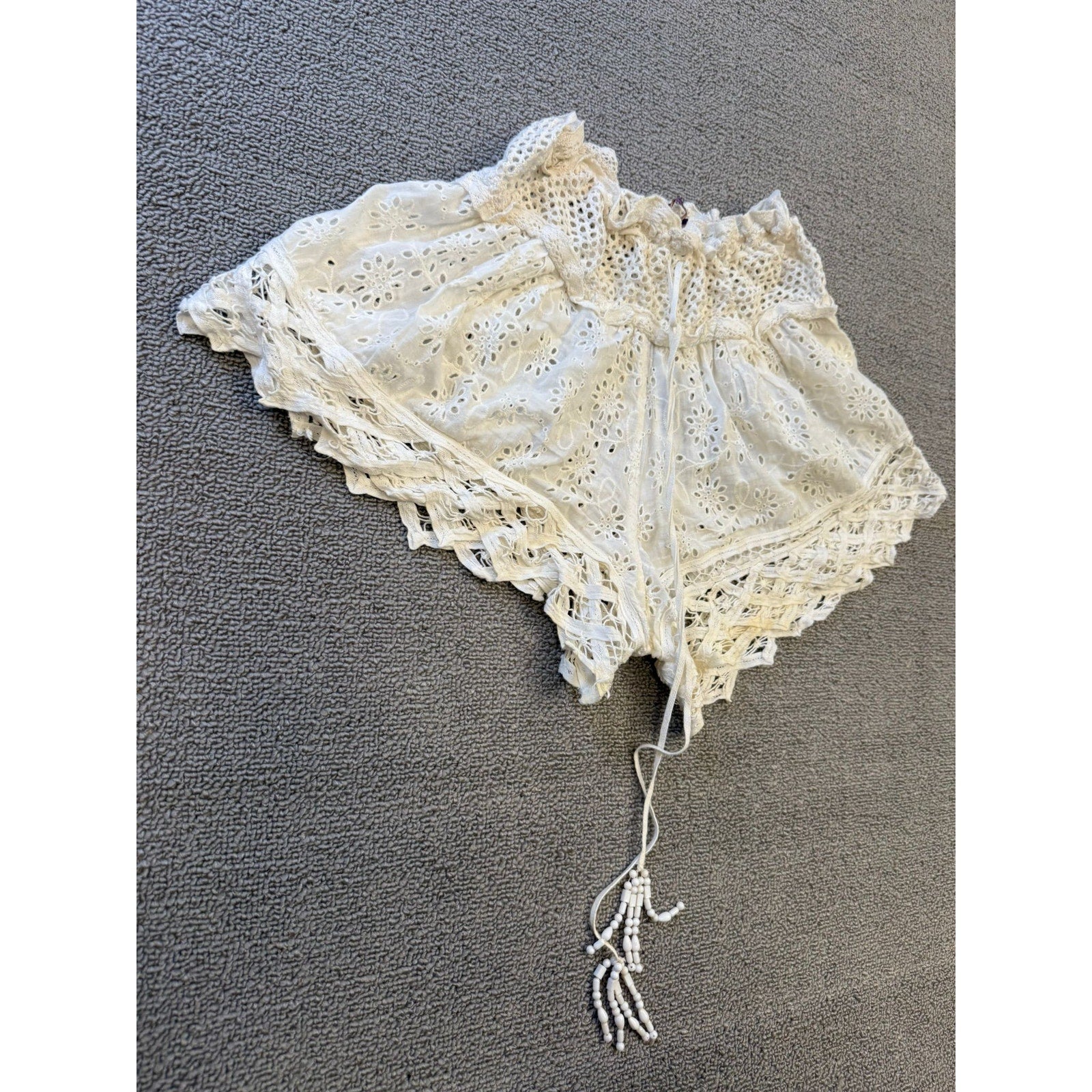 Boho Crochet Lace Eyelet Shorts Women XS White Summer Beachwear