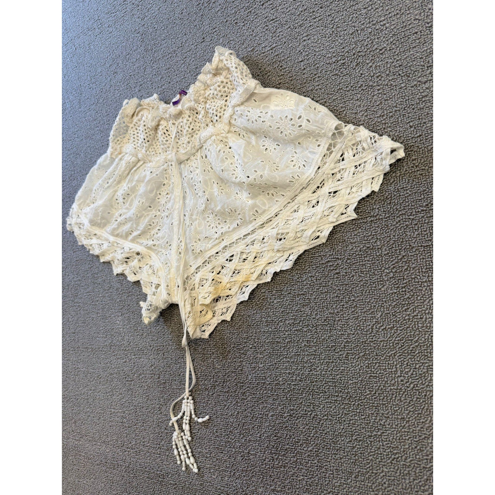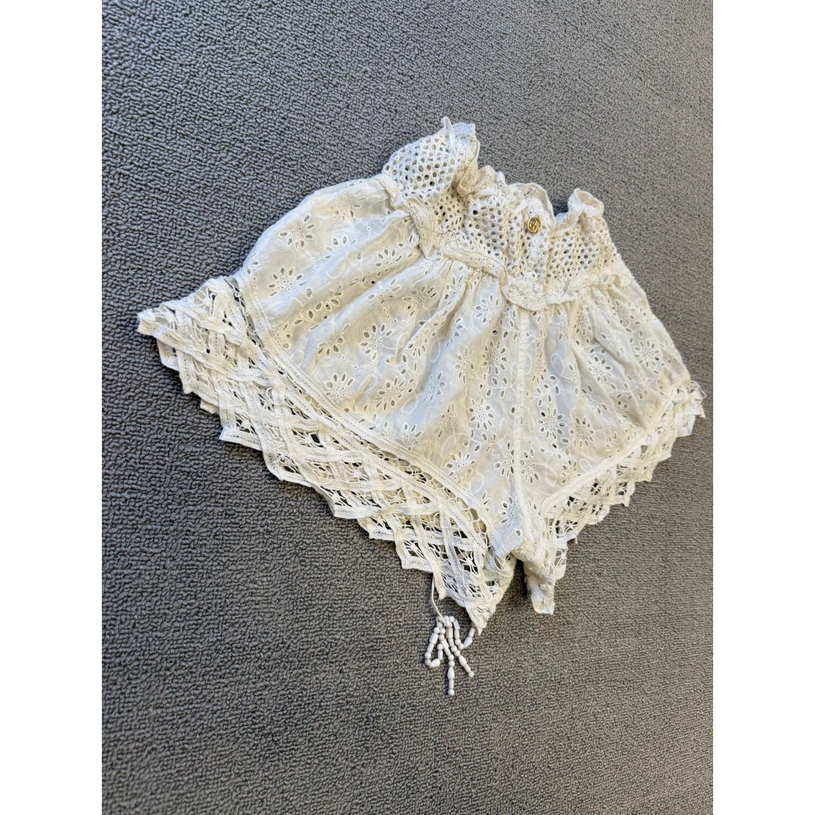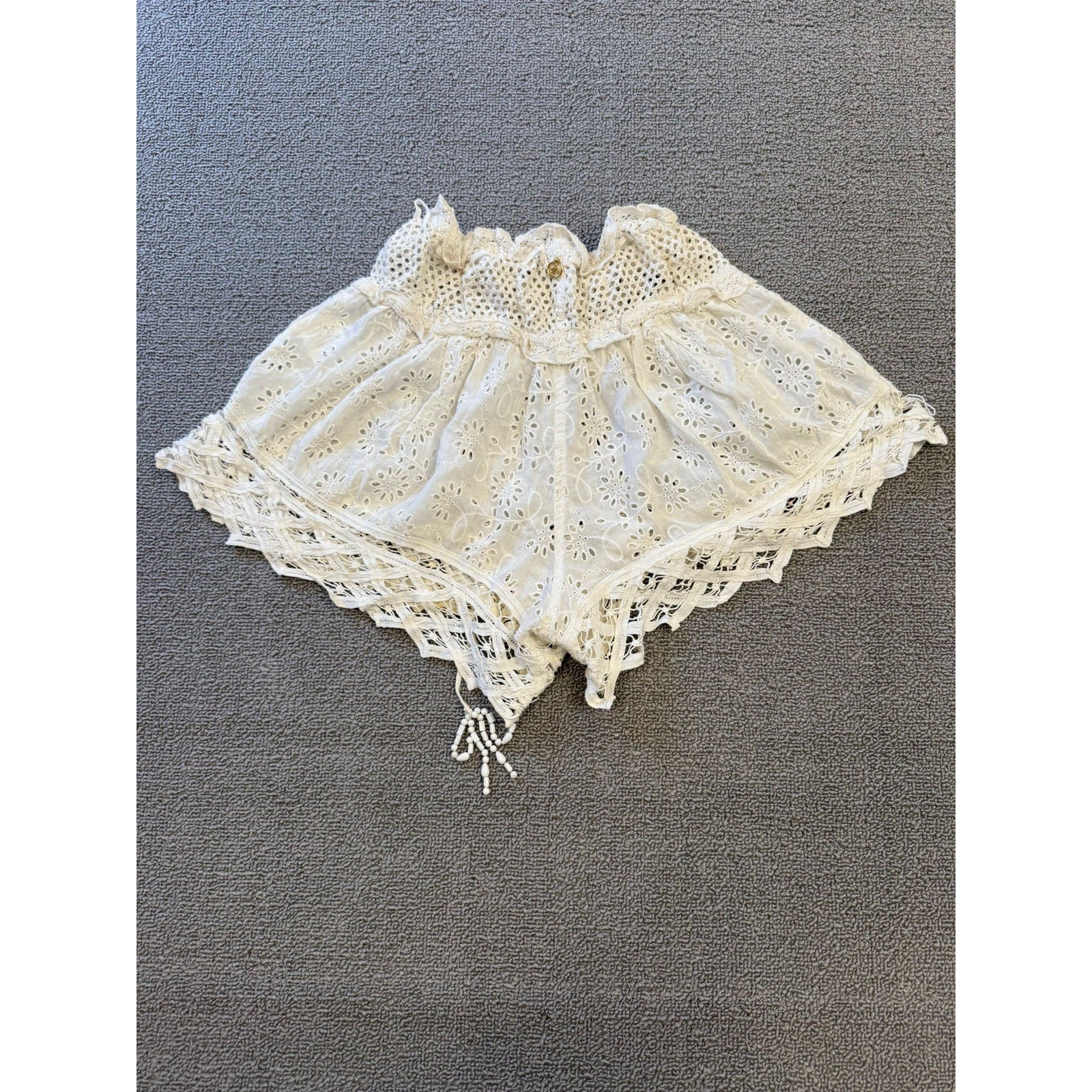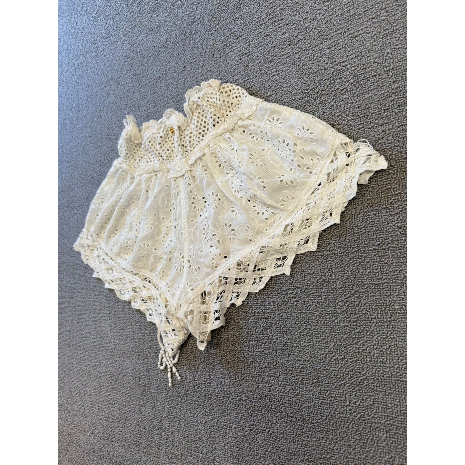 Boho Crochet Lace Eyelet Shorts Women XS White Summer Beachwear