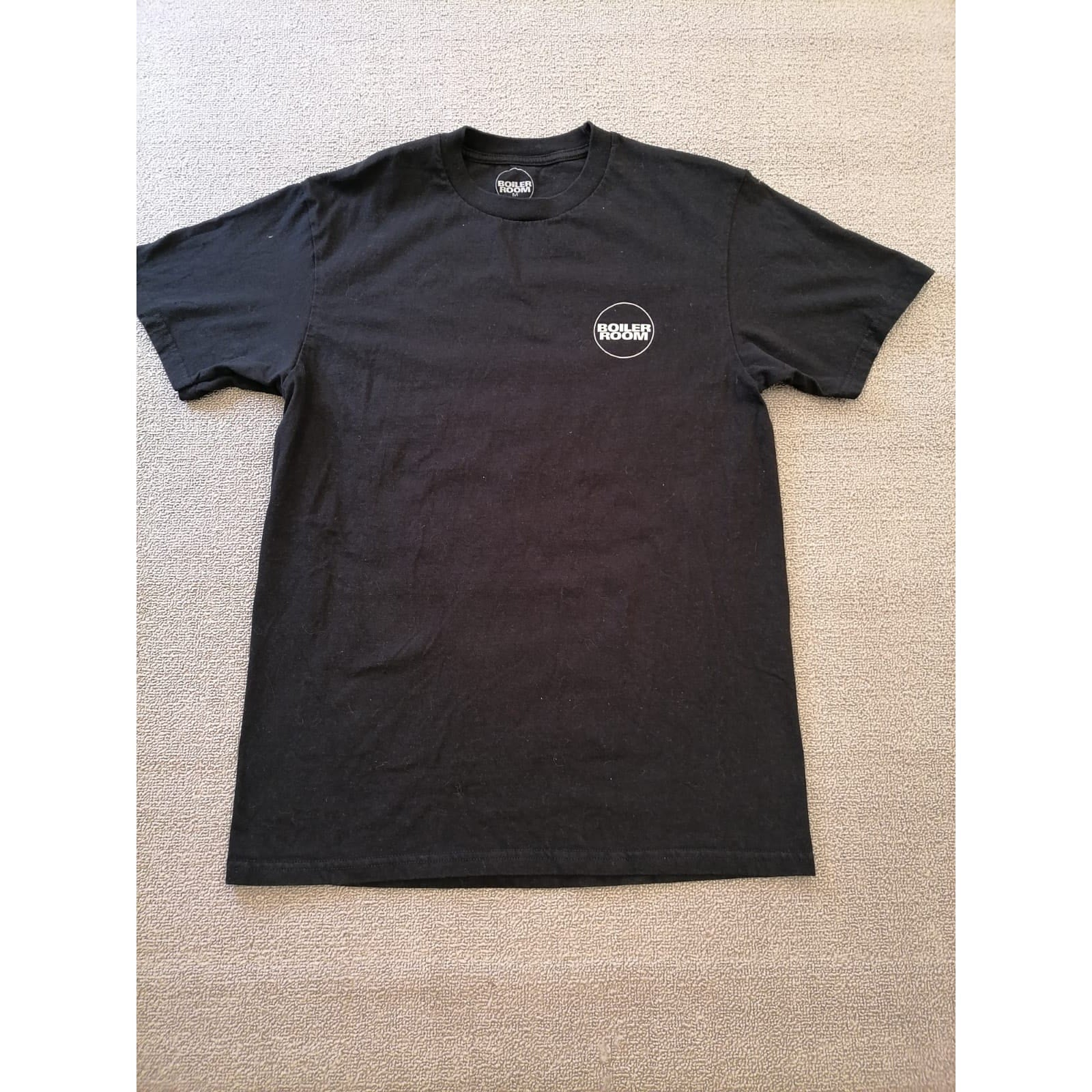 Minimalist black tee featuring the Boiler Room logo printed inside and on the chest—reflecting the iconic music and club culture platform. Classic crewneck silhouette with short sleeves and medium fit.