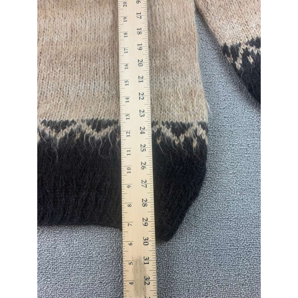 Bolivian Handknits Sweater Women M Beige Alpaca Wool Hand Knit Yoke Crewneck