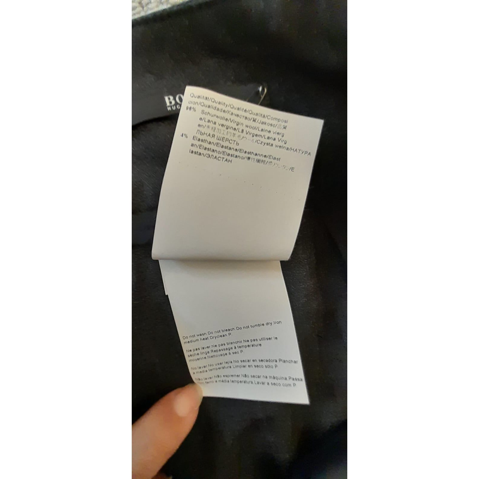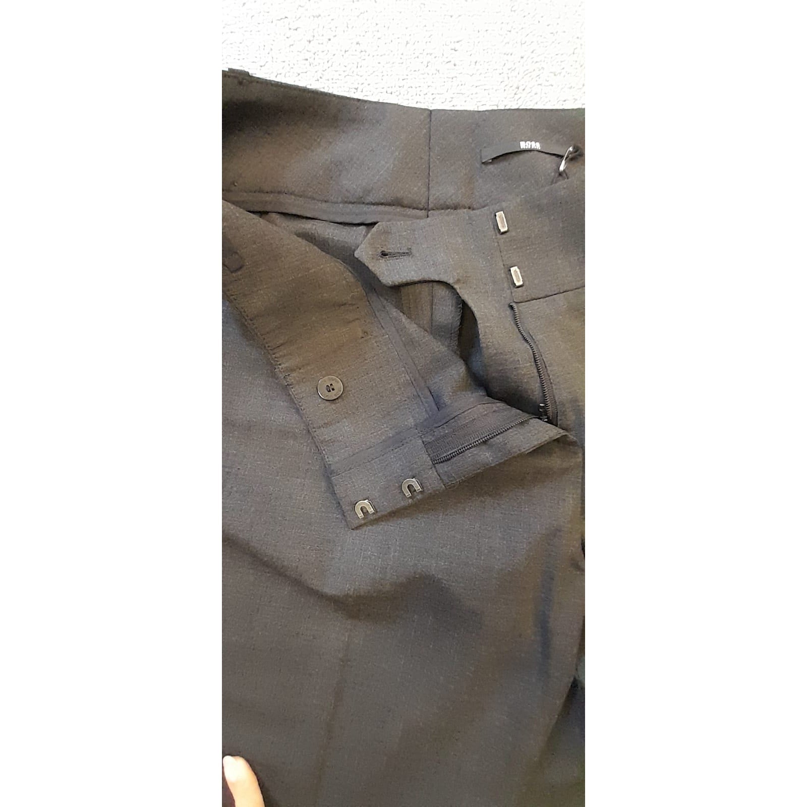 Elegant Hugo Boss tailored trousers in classic black, featuring a flared or bootcut silhouette with clean center creases and a structured waistband. Crafted from stretch-performance suiting fabric, these pants have front French-style pockets and back welt pockets, perfect for office or formal occasions.