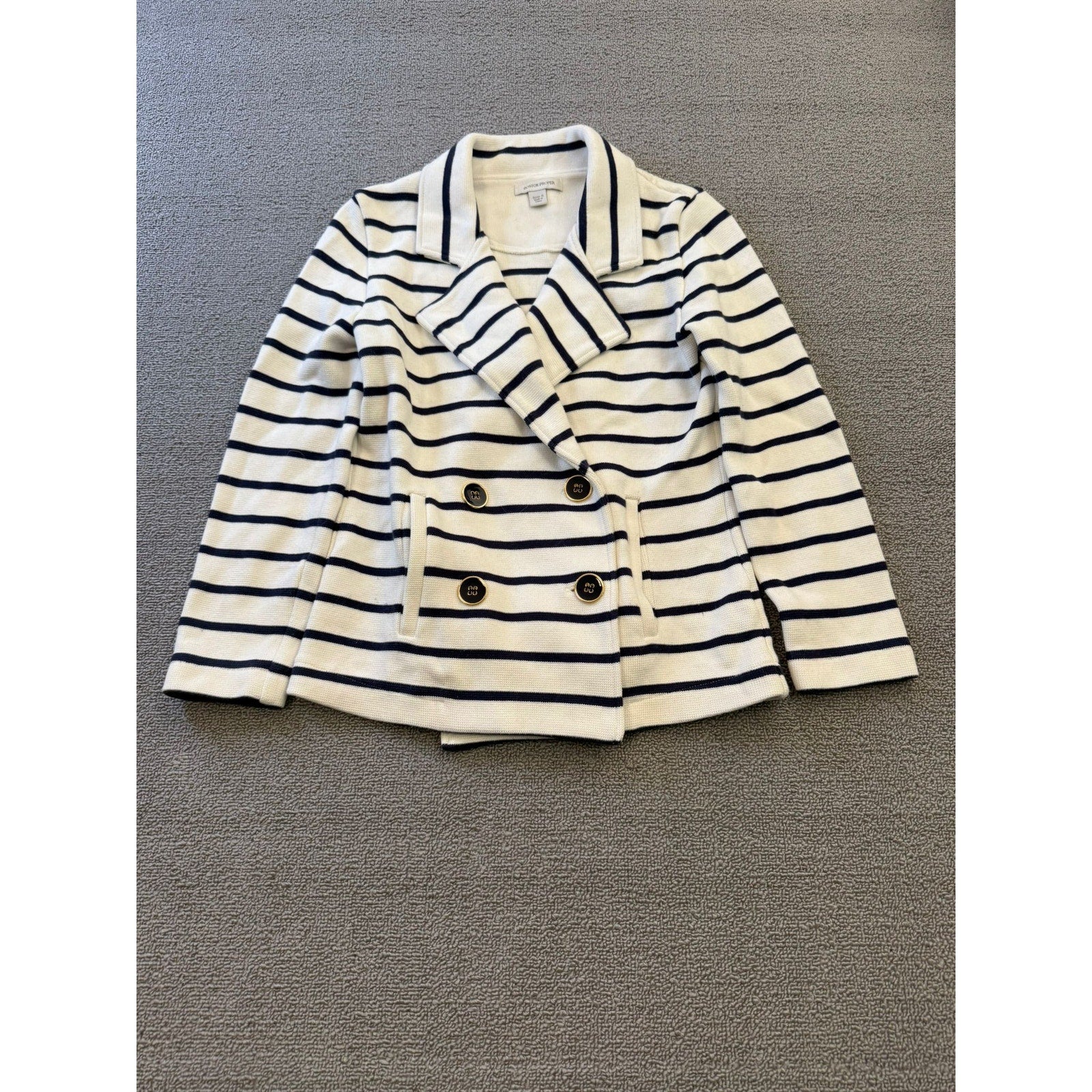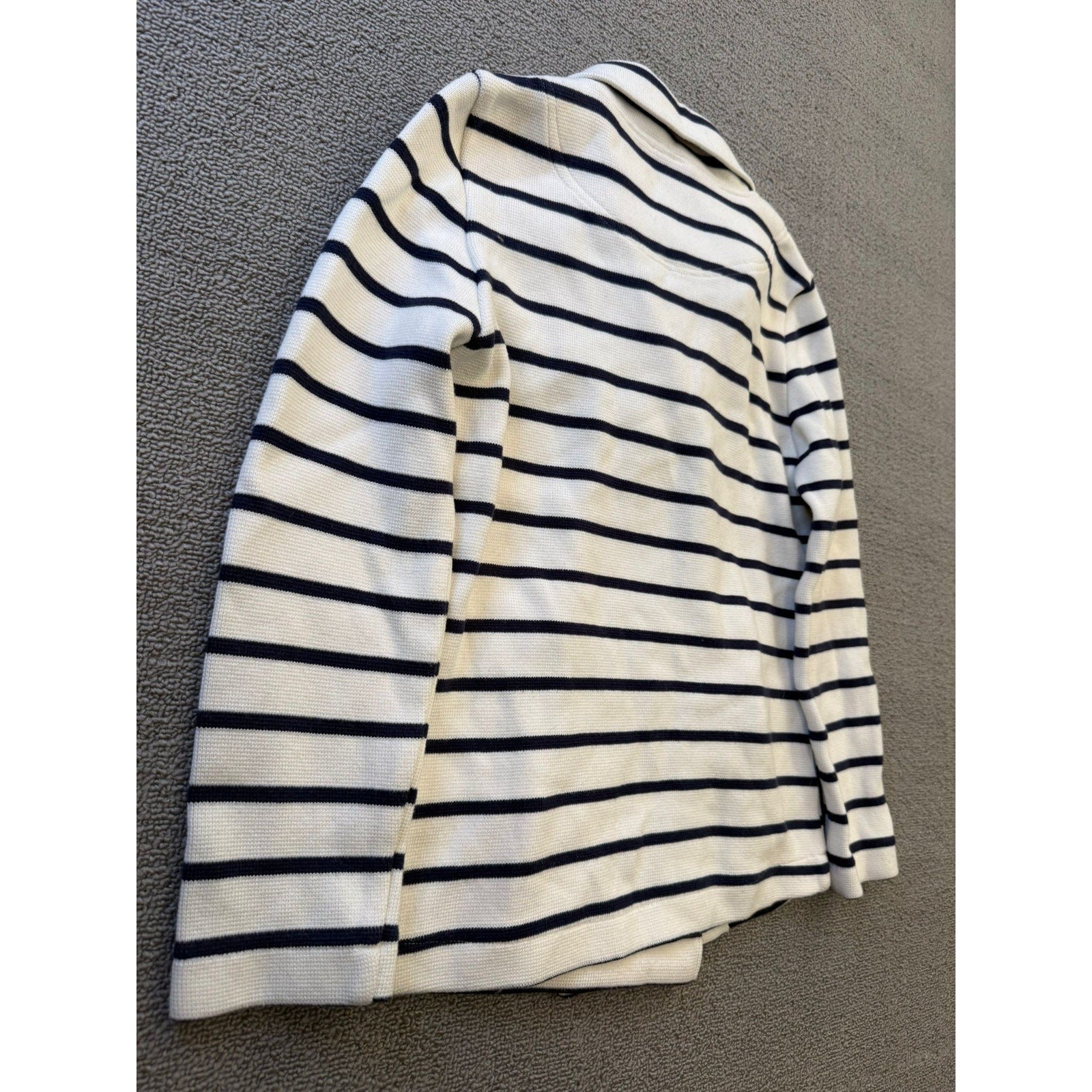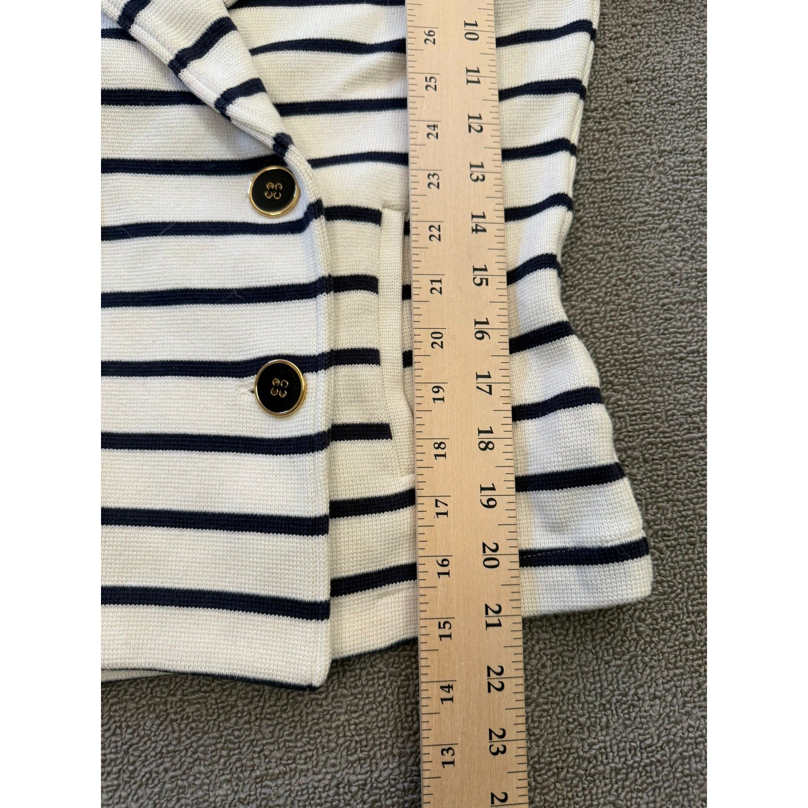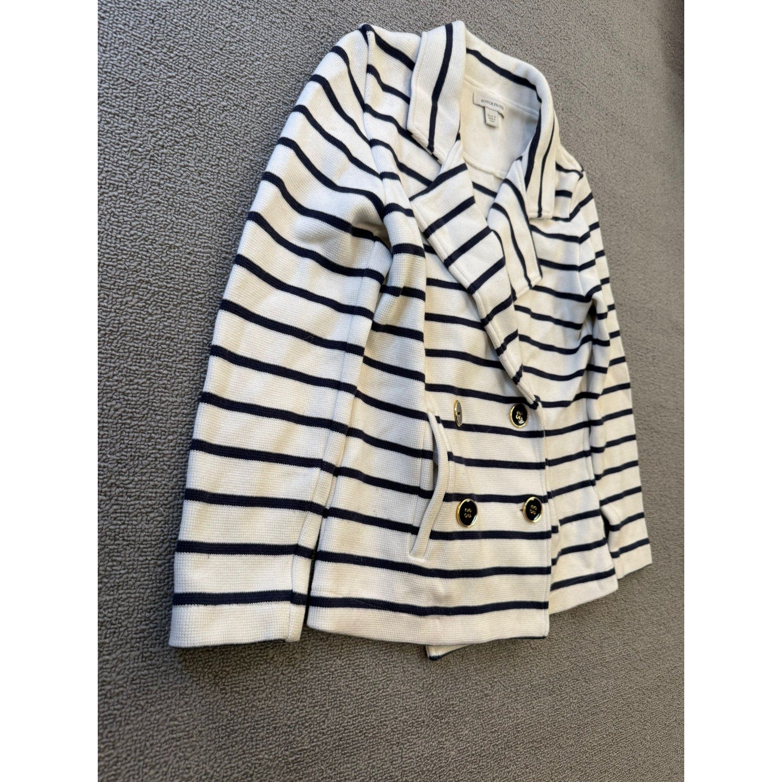 Boston Proper Women's Small White Black Striped Double Breasted Sweater Jacket