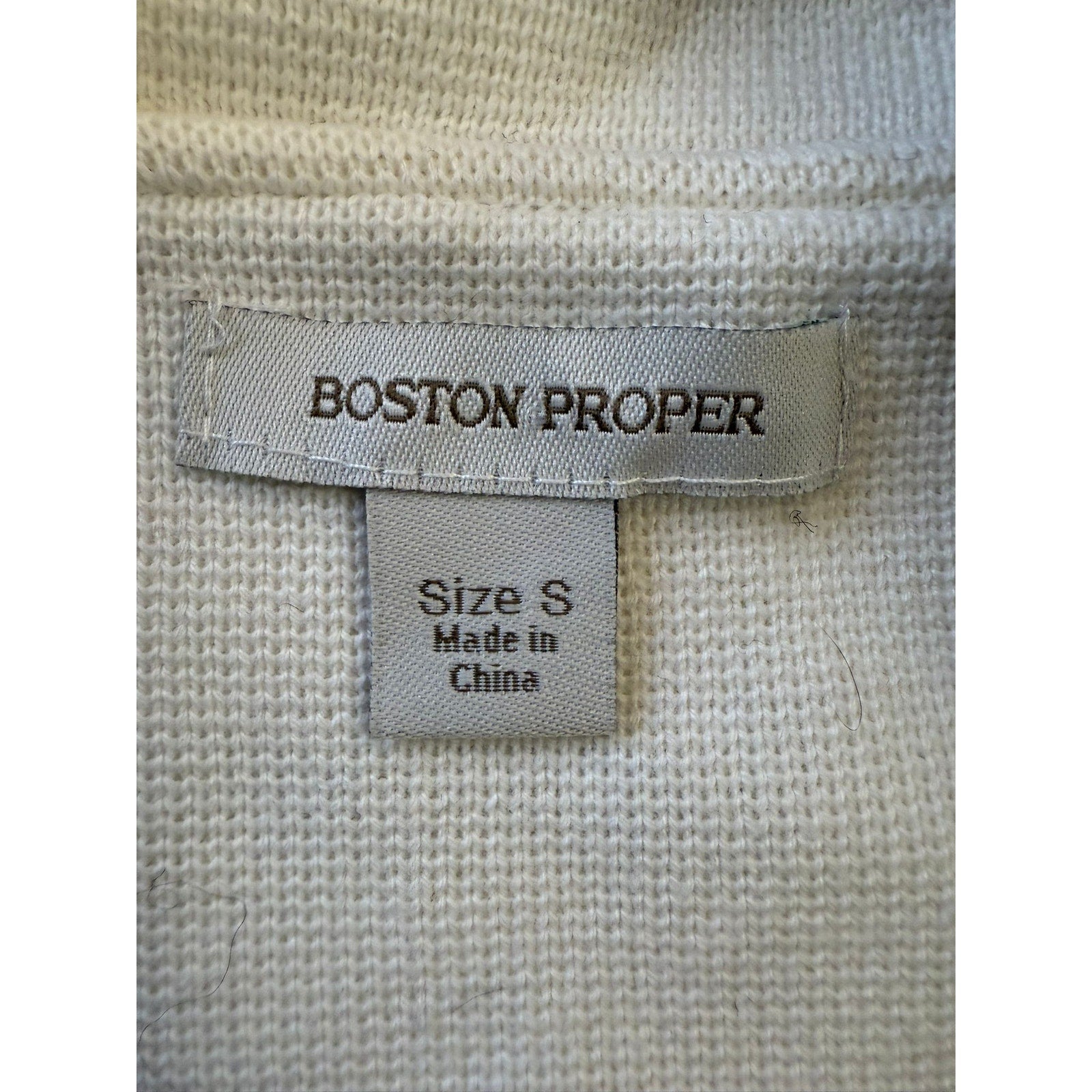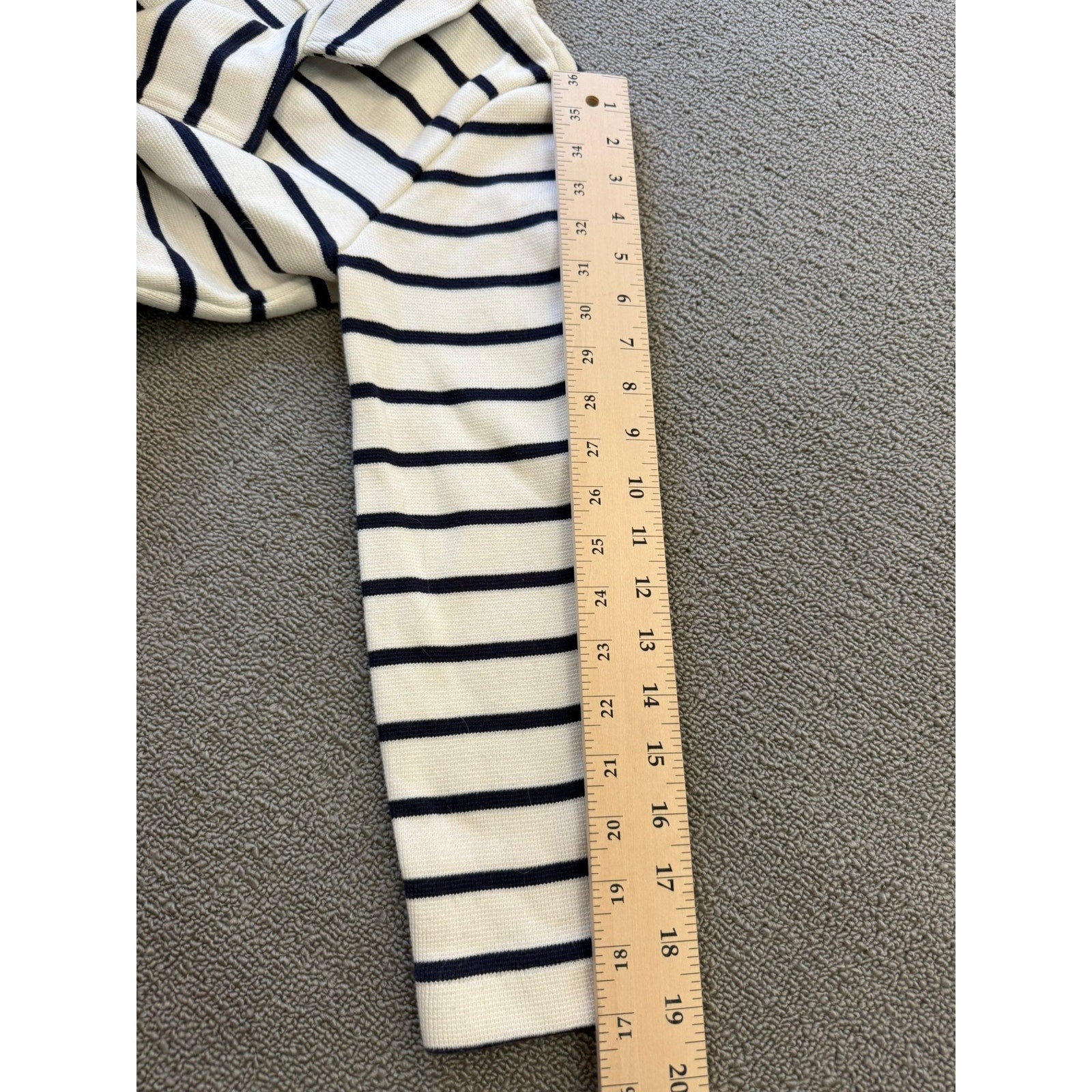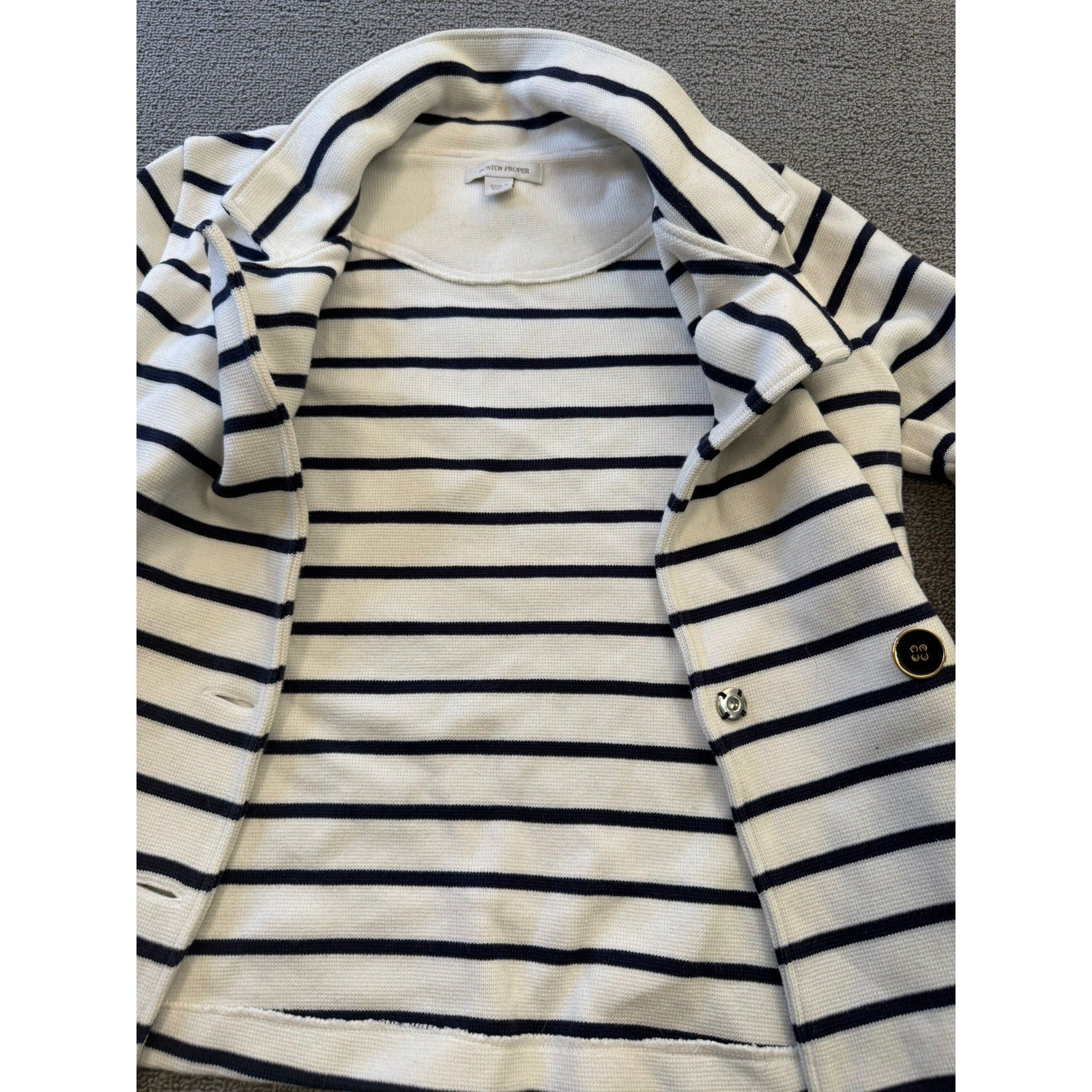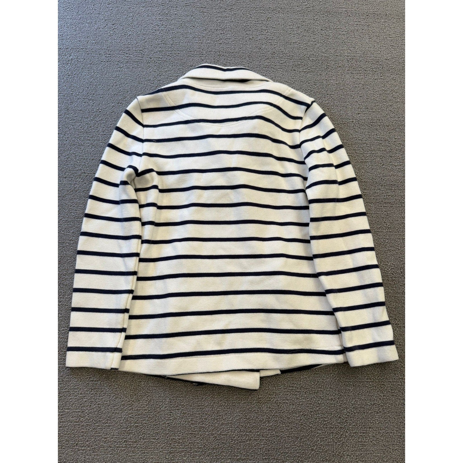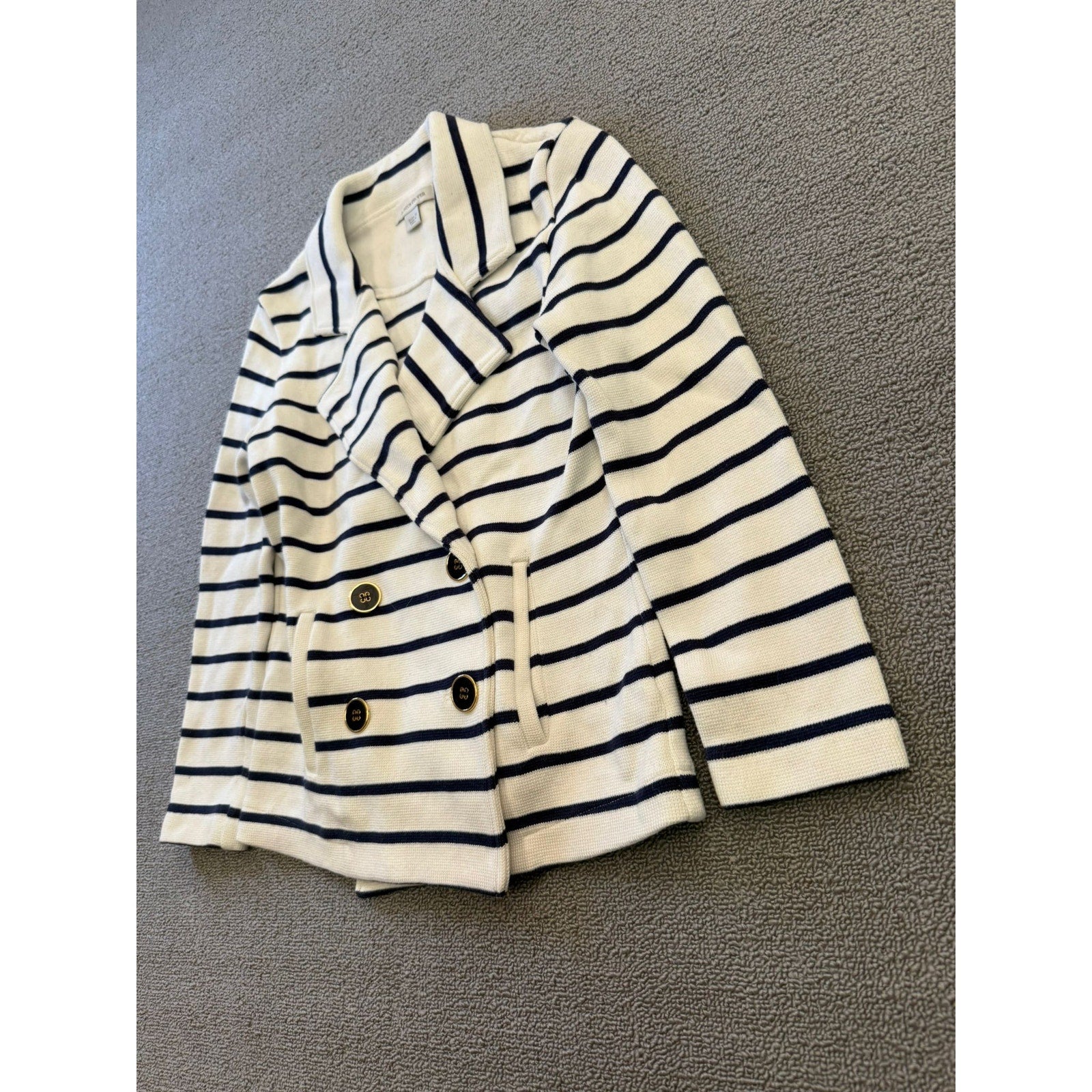 Boston Proper Women's Small White Black Striped Double Breasted Sweater Jacket