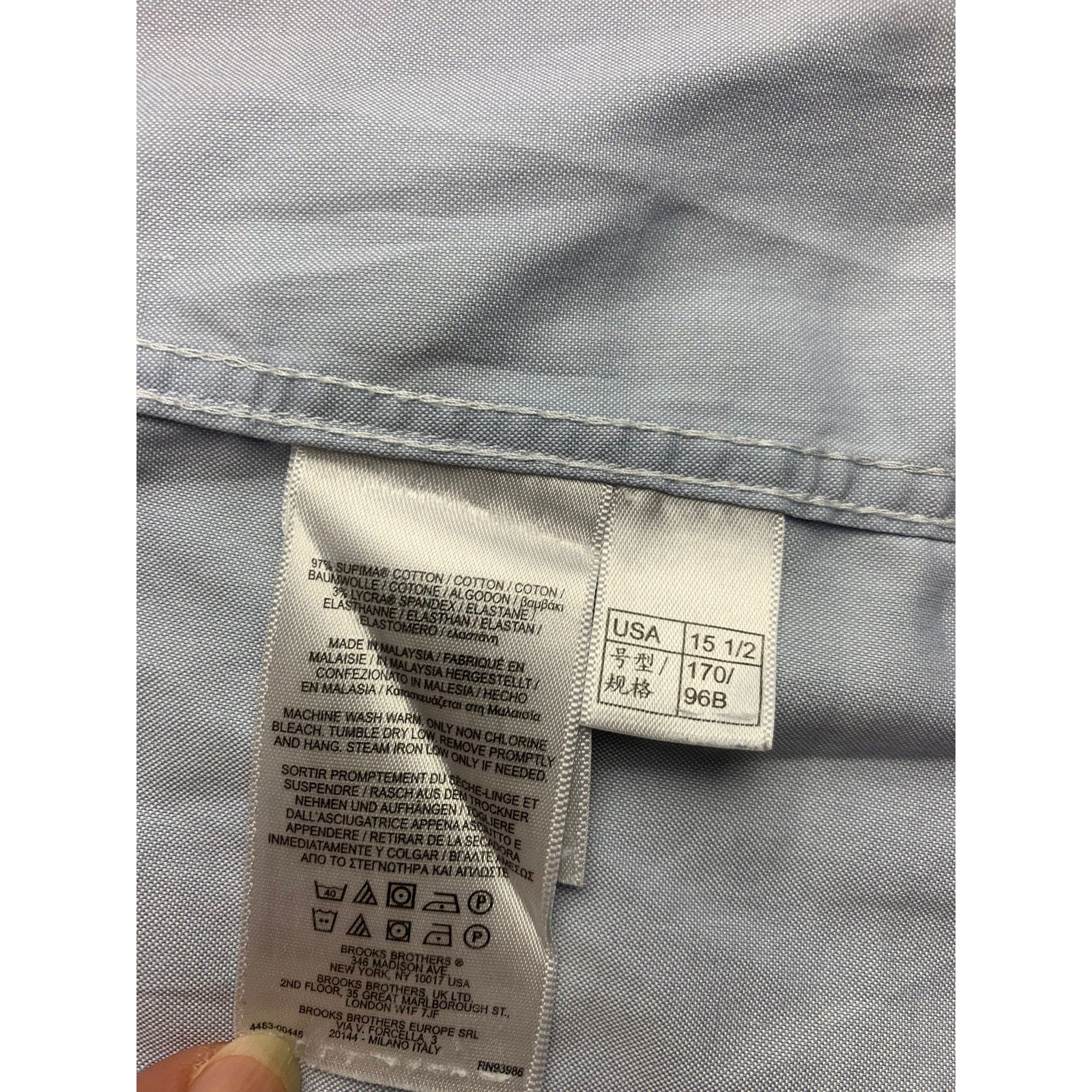 Brooks Brothers Shirt Men's 15 1/2 Regent Blue Cotton Long Sleeve Non Iron