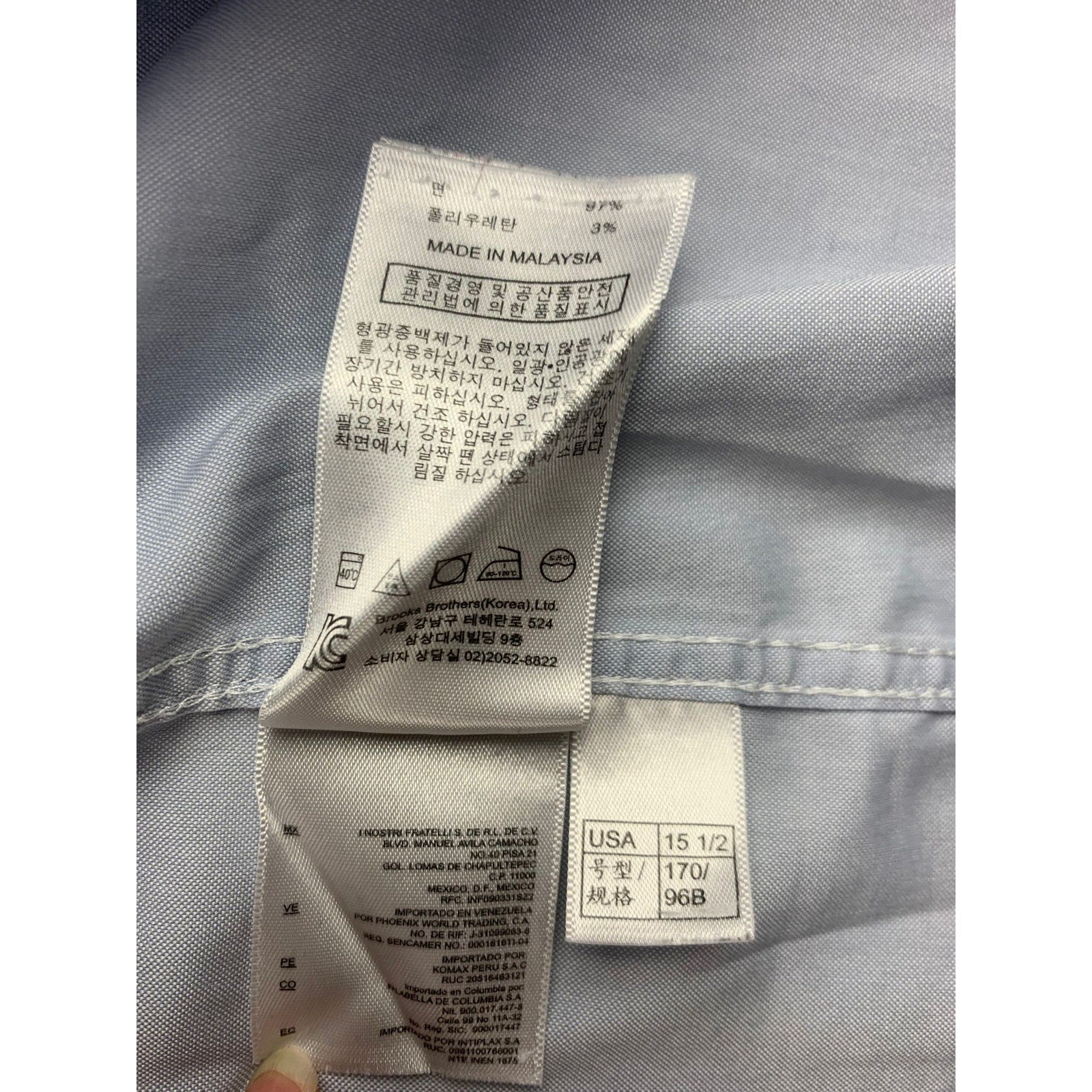 Classic Brooks Brothers Regent-fit non-iron dress shirt in light blue. Spread collar, single chest pocket, and curved hem; easy office-to-evening staple with a smooth hand. Fabric is 97% Supima cotton 3% Lycra for comfort and stretch.
