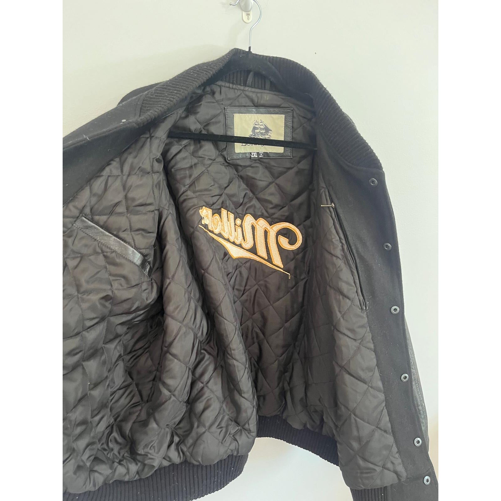 Burk's Bay Miller Varsity Jacket Men 2XL Black Wool Leather Bomber Coat