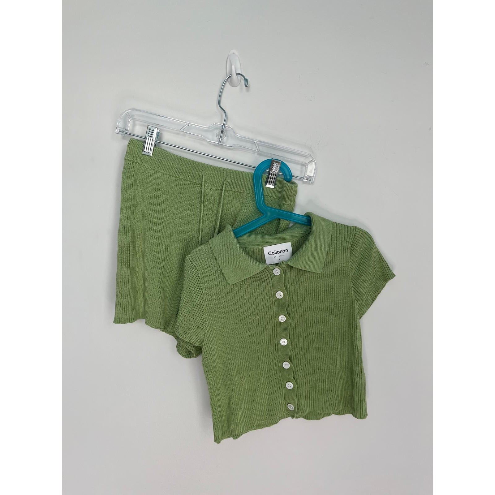 Callahan Knitwear Two Piece Set Women S Ribbed Green Button Top Shorts