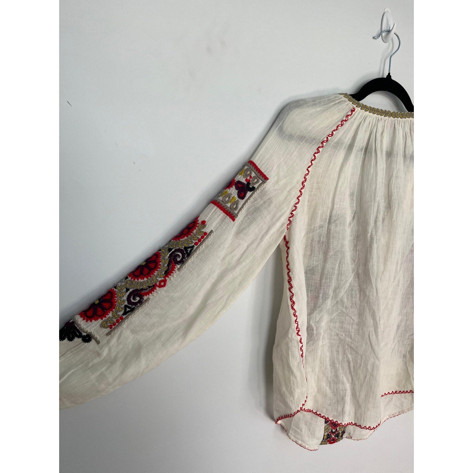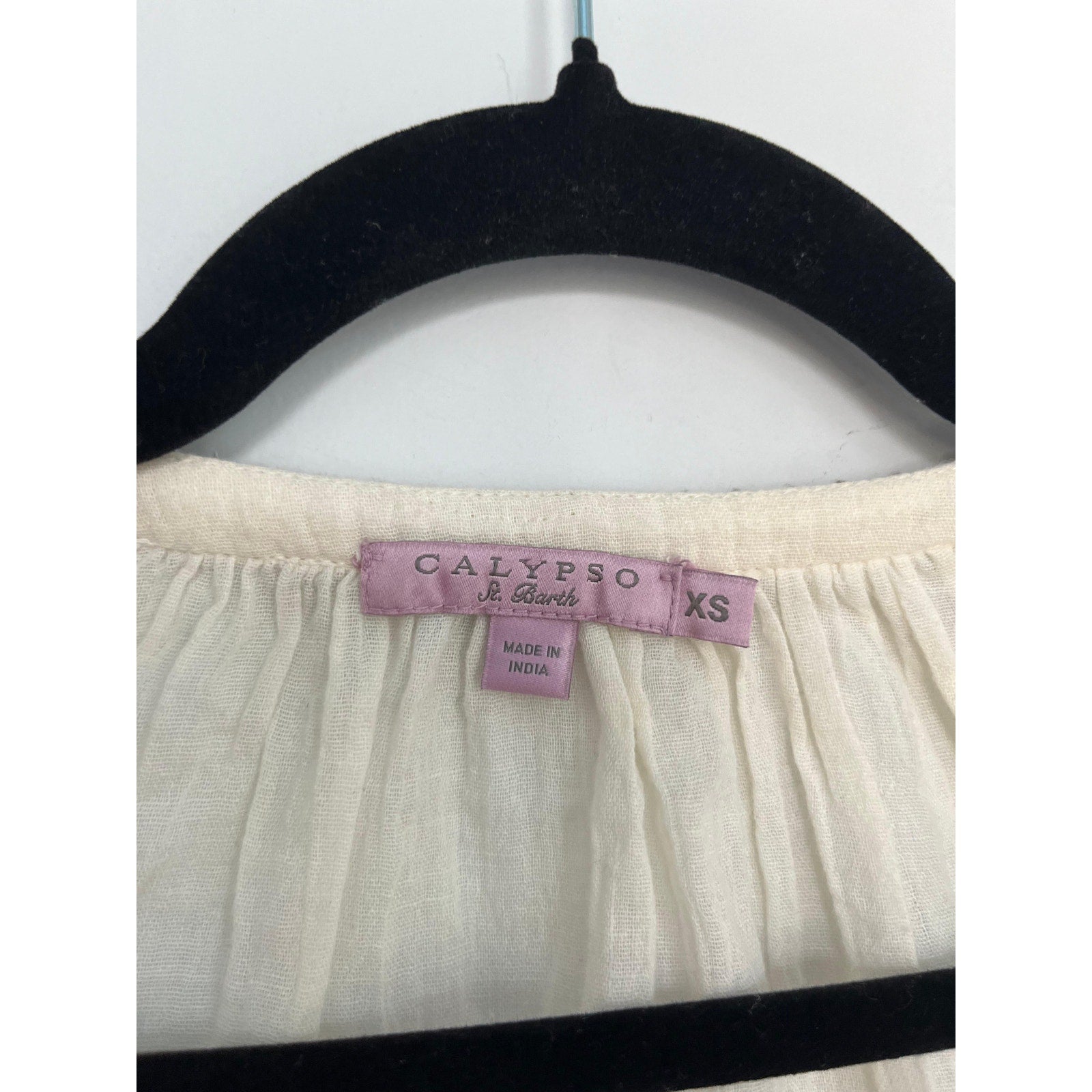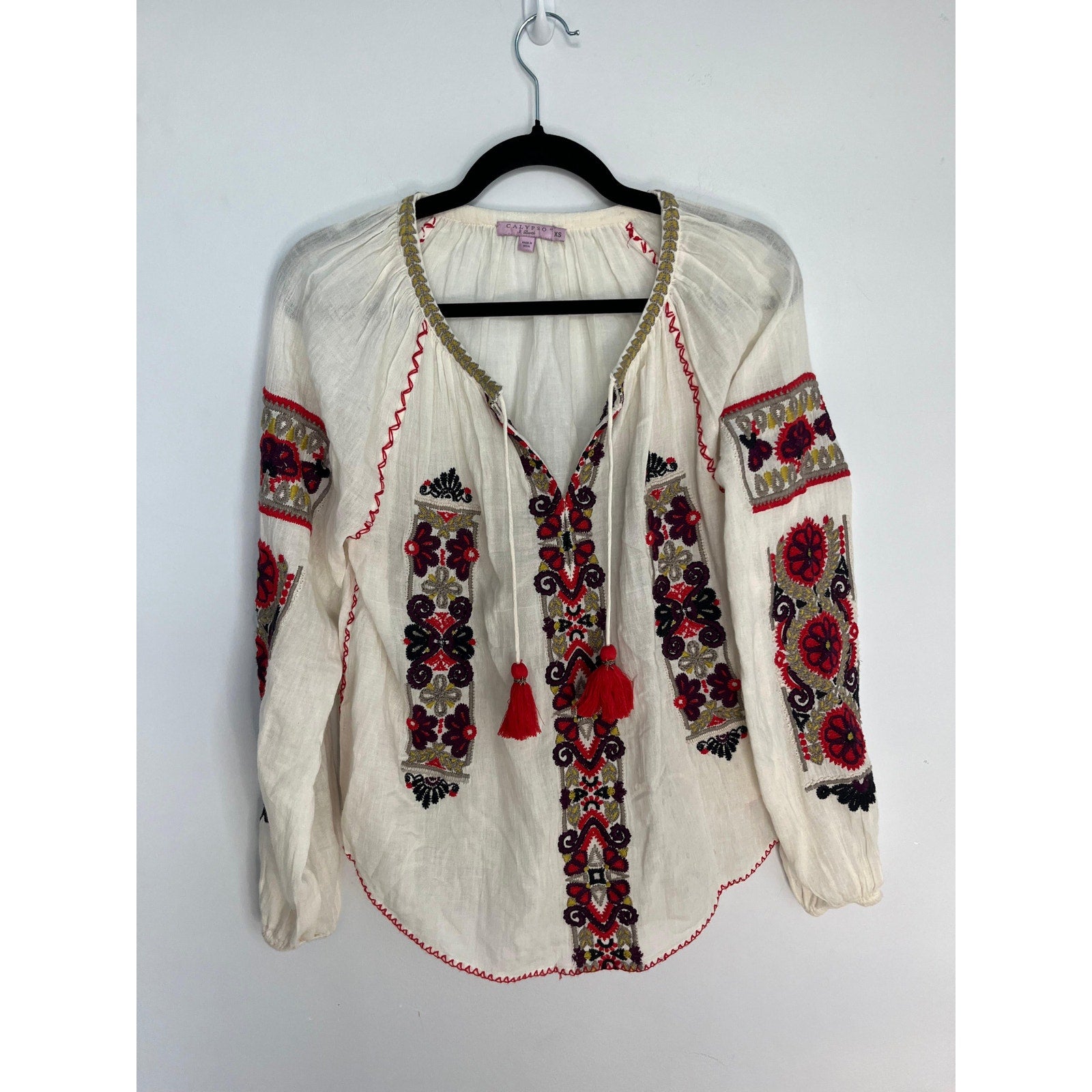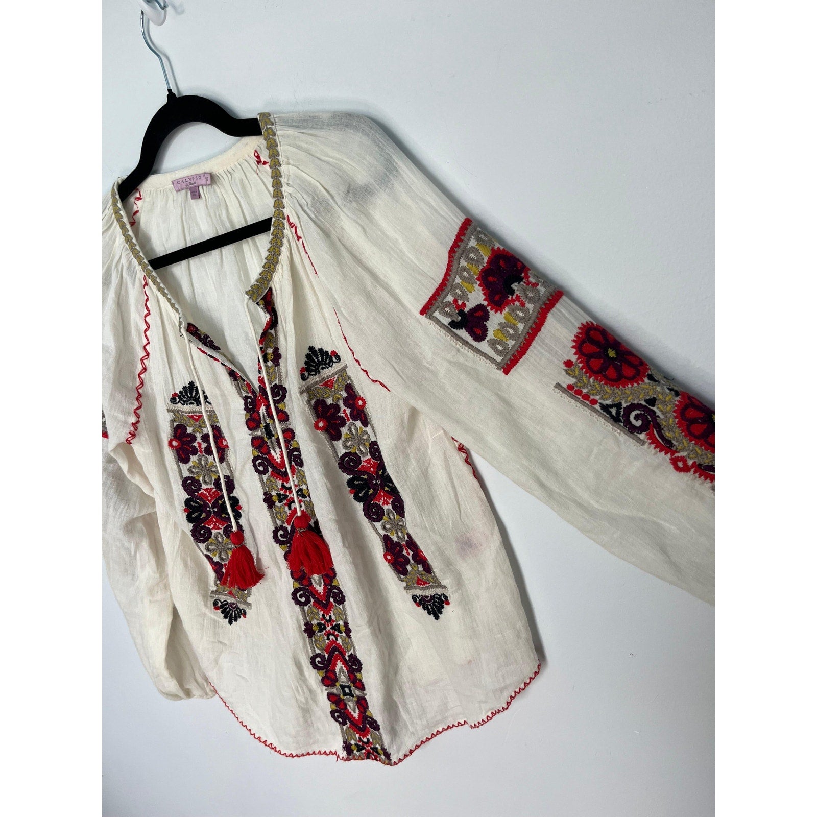 Calypso St Barth Embroidered Boho Blouse Women XS Cream Red Peasant Top