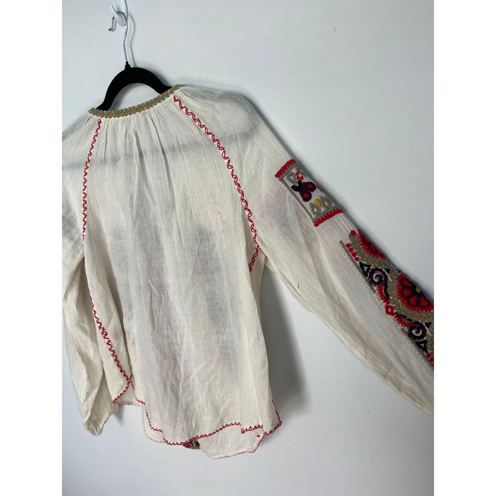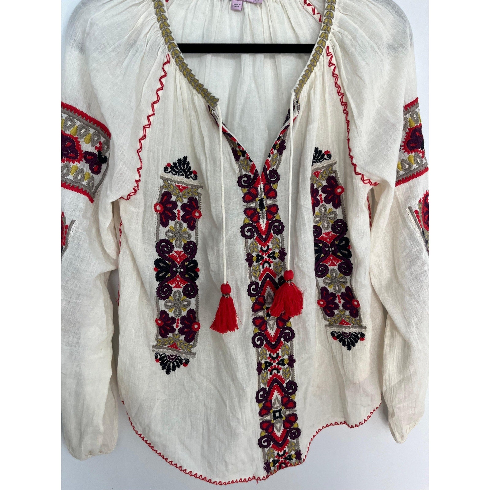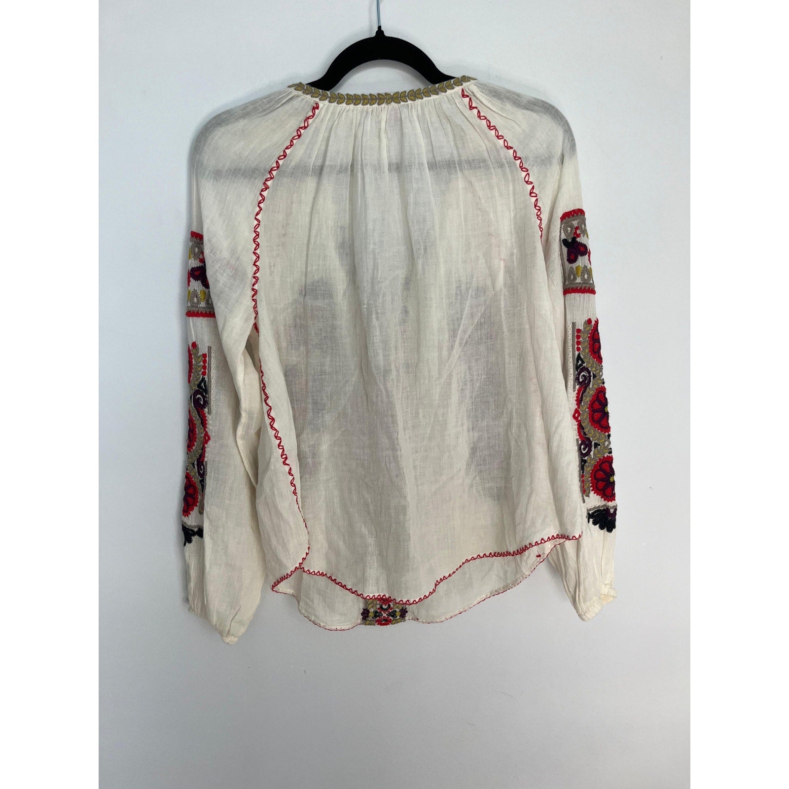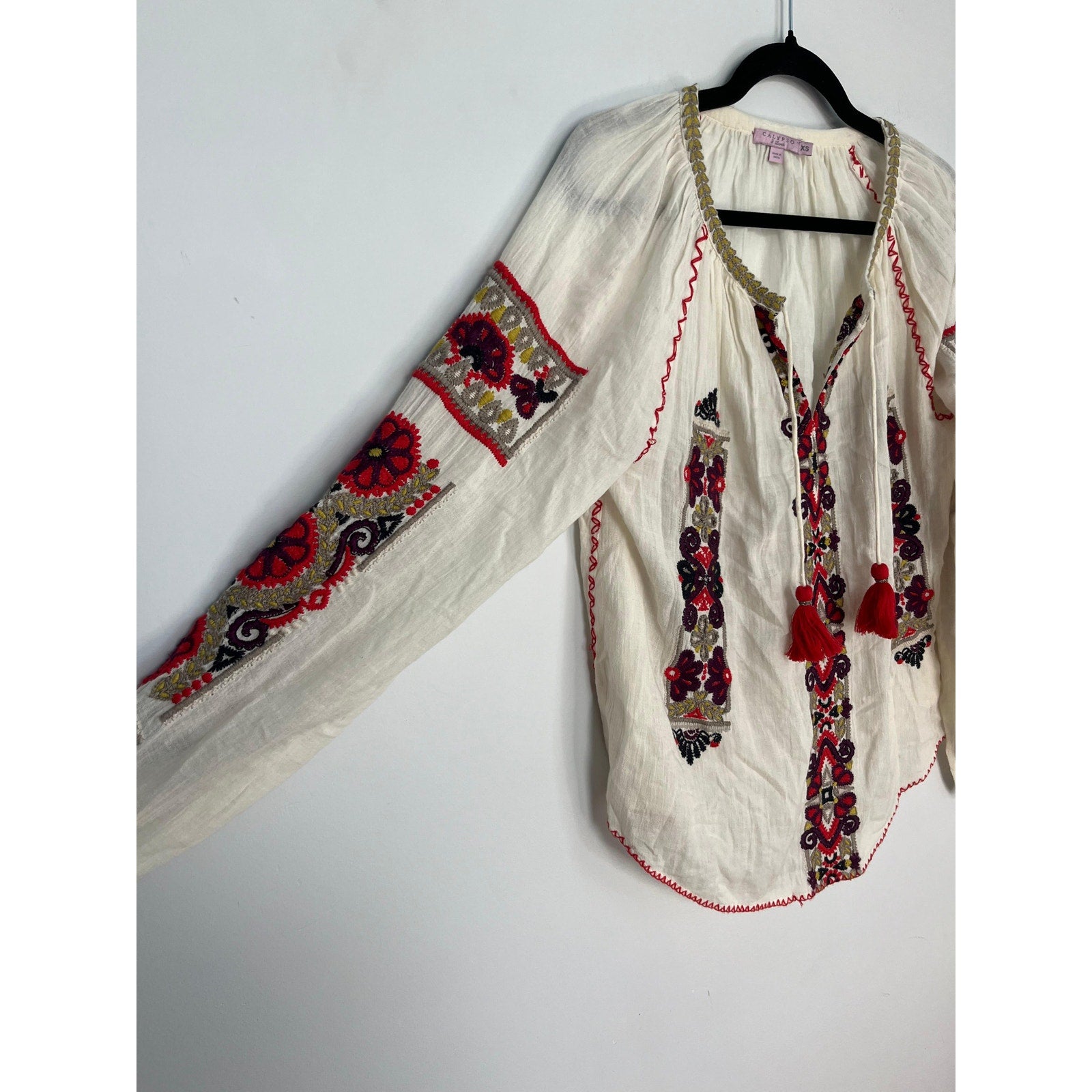 Calypso St Barth Embroidered Boho Blouse Women XS Cream Red Peasant Top