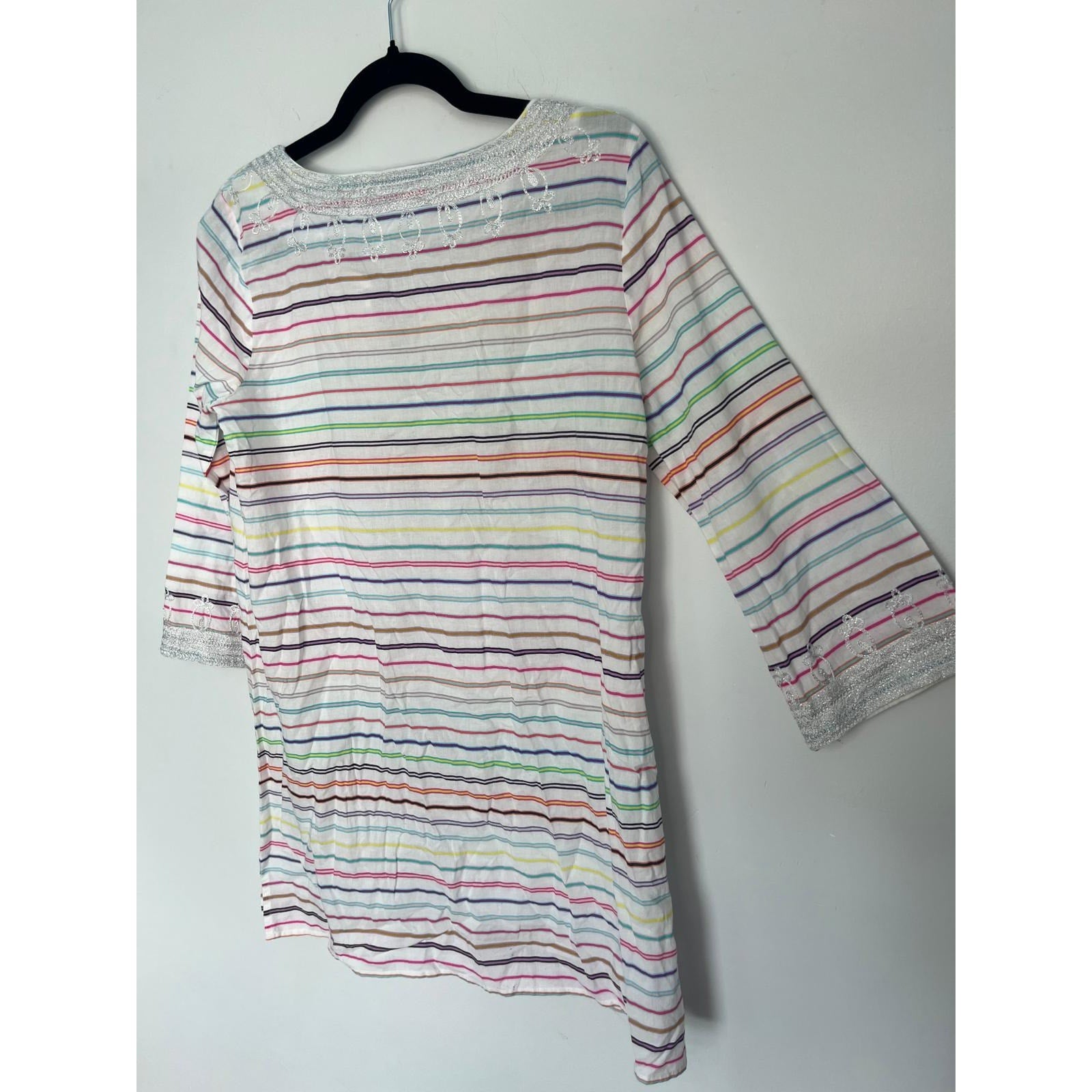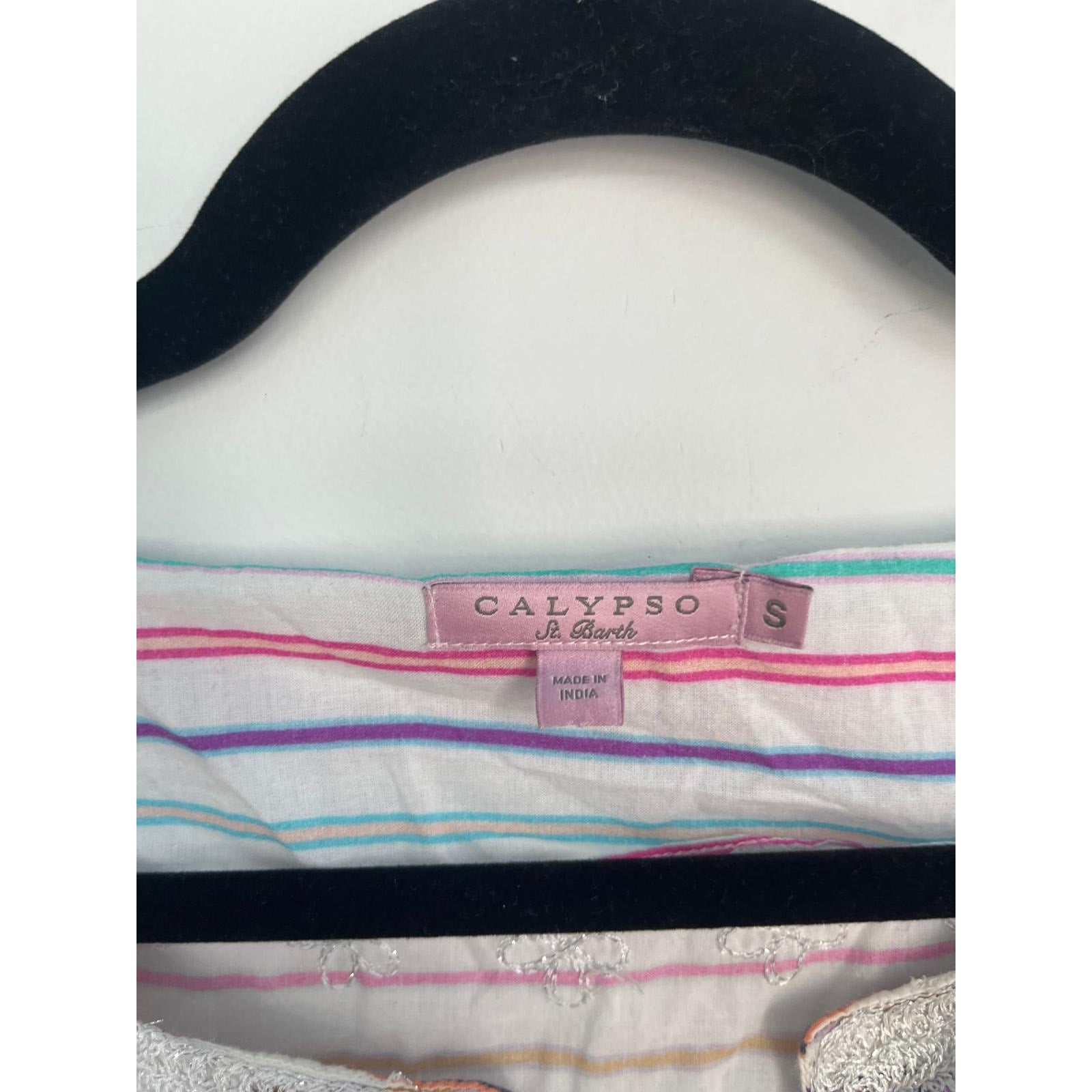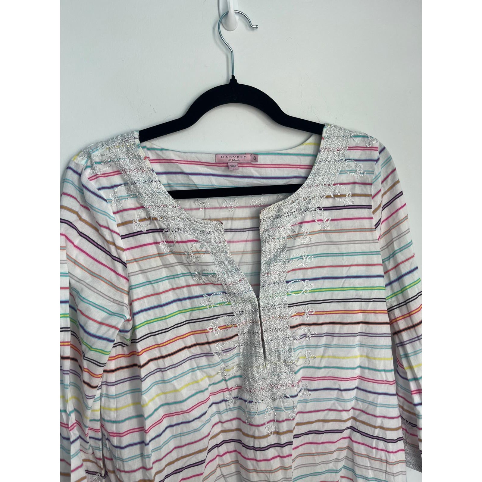 Calypso St Barth Tunic Top Women Small Striped Metallic Embroidered Boho